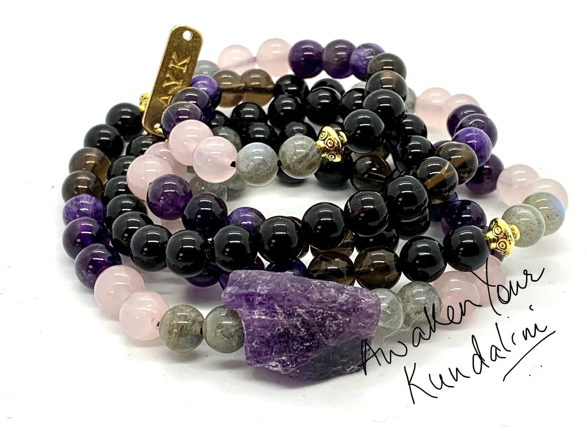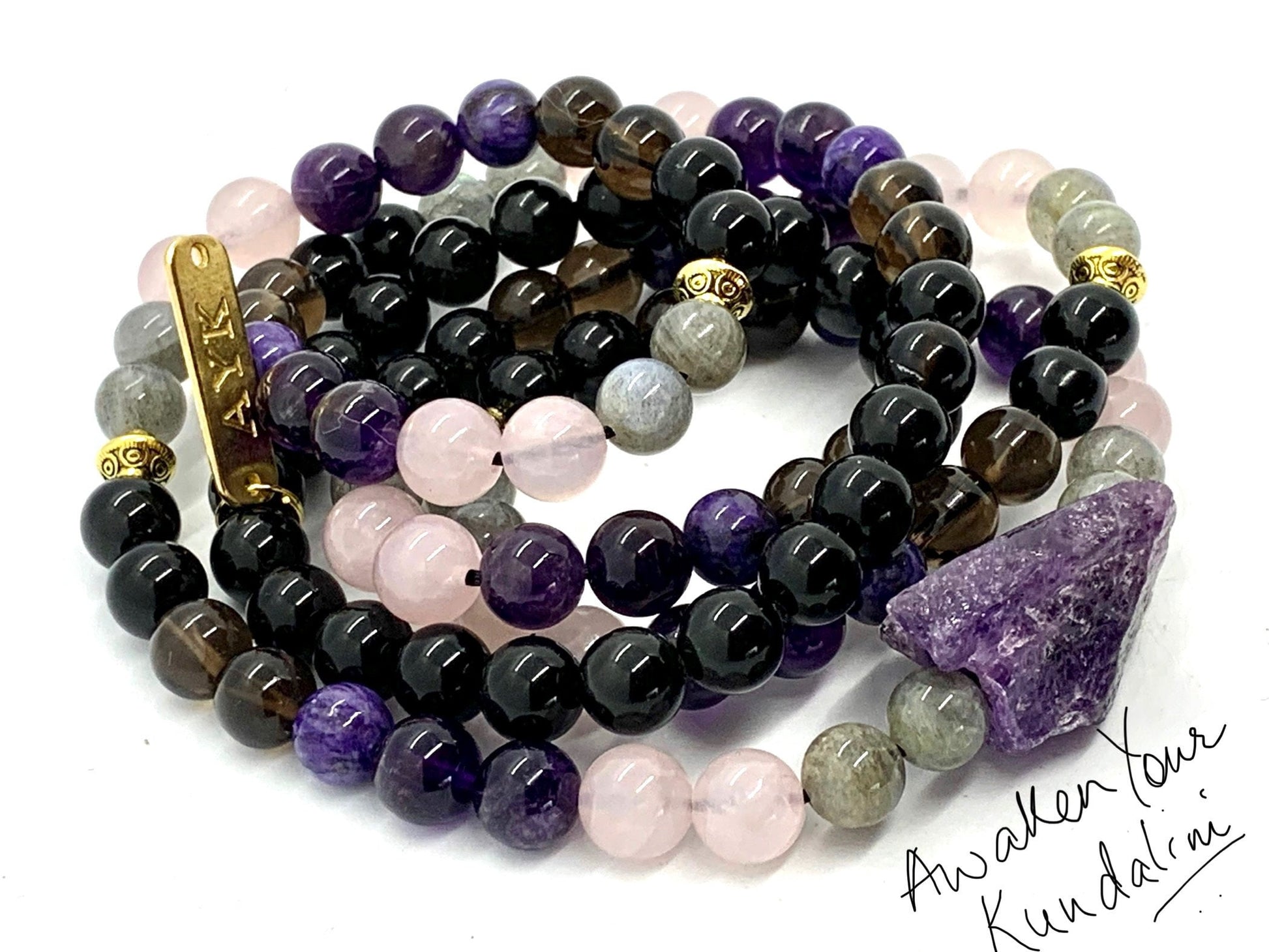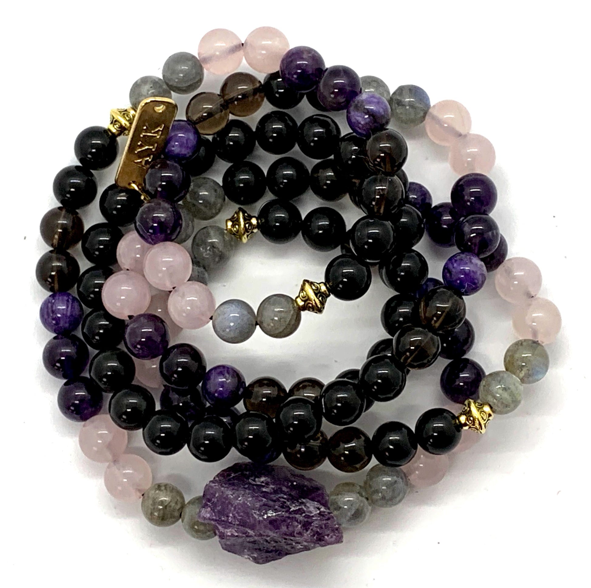 Material: Natural gemstones (Amethyst, Smoky Quartz, Charoite, Labradorite, Rose Quartz, Obsidian)