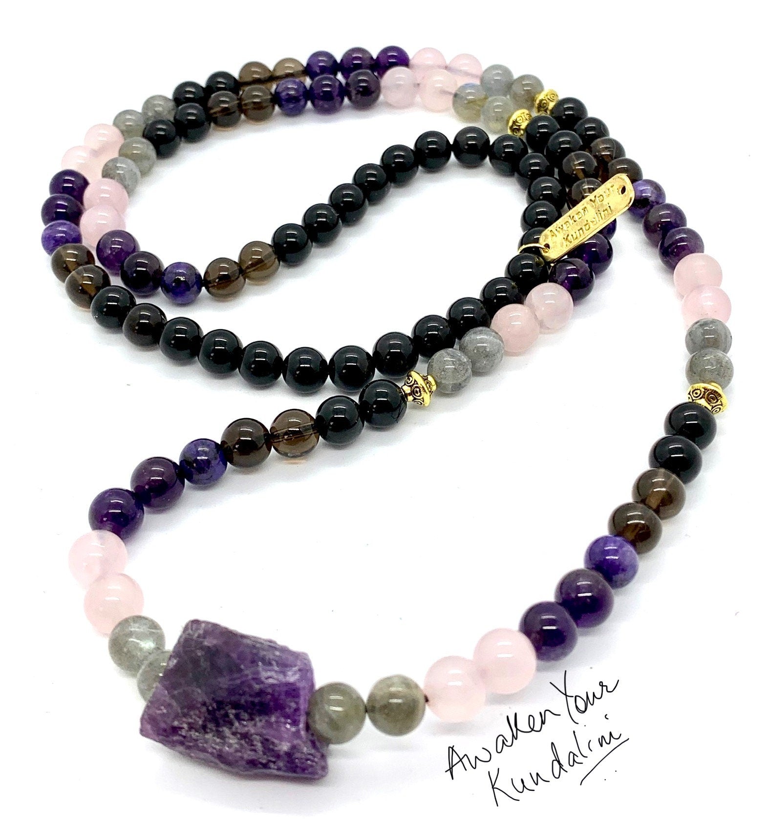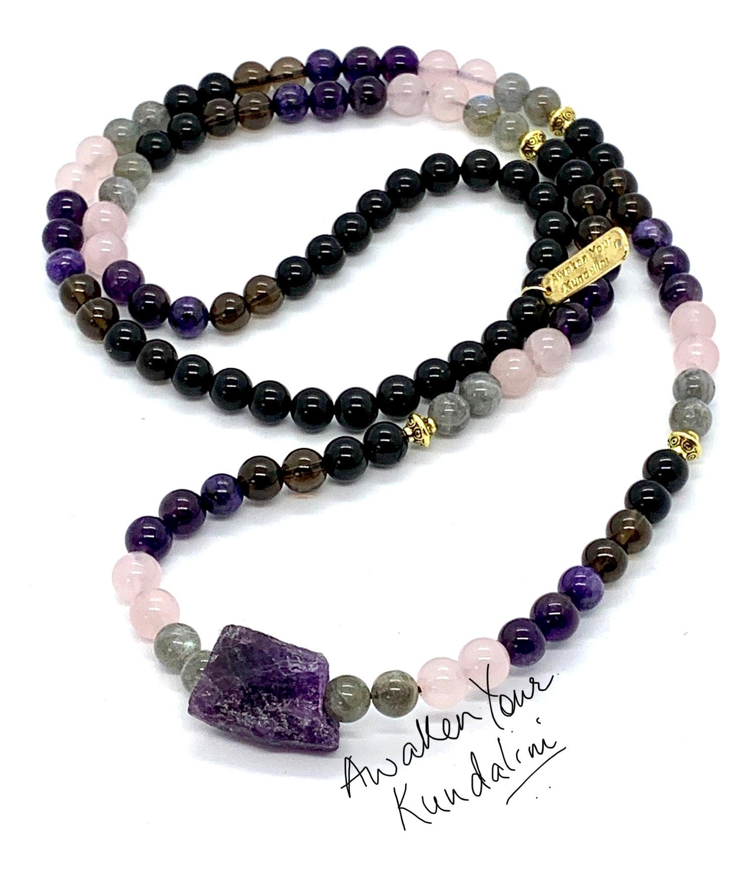 This unique mala has been mindfully created after years of research and stone pairing. The gemstones were ethically sourced from different parts of the world and chosen for how they blend and amplify each other’s qualities. Together, they form a high-energy mala necklace that radiates peace, serenity, and protective energy — a true companion for evenings of rest, meditation, and renewal.