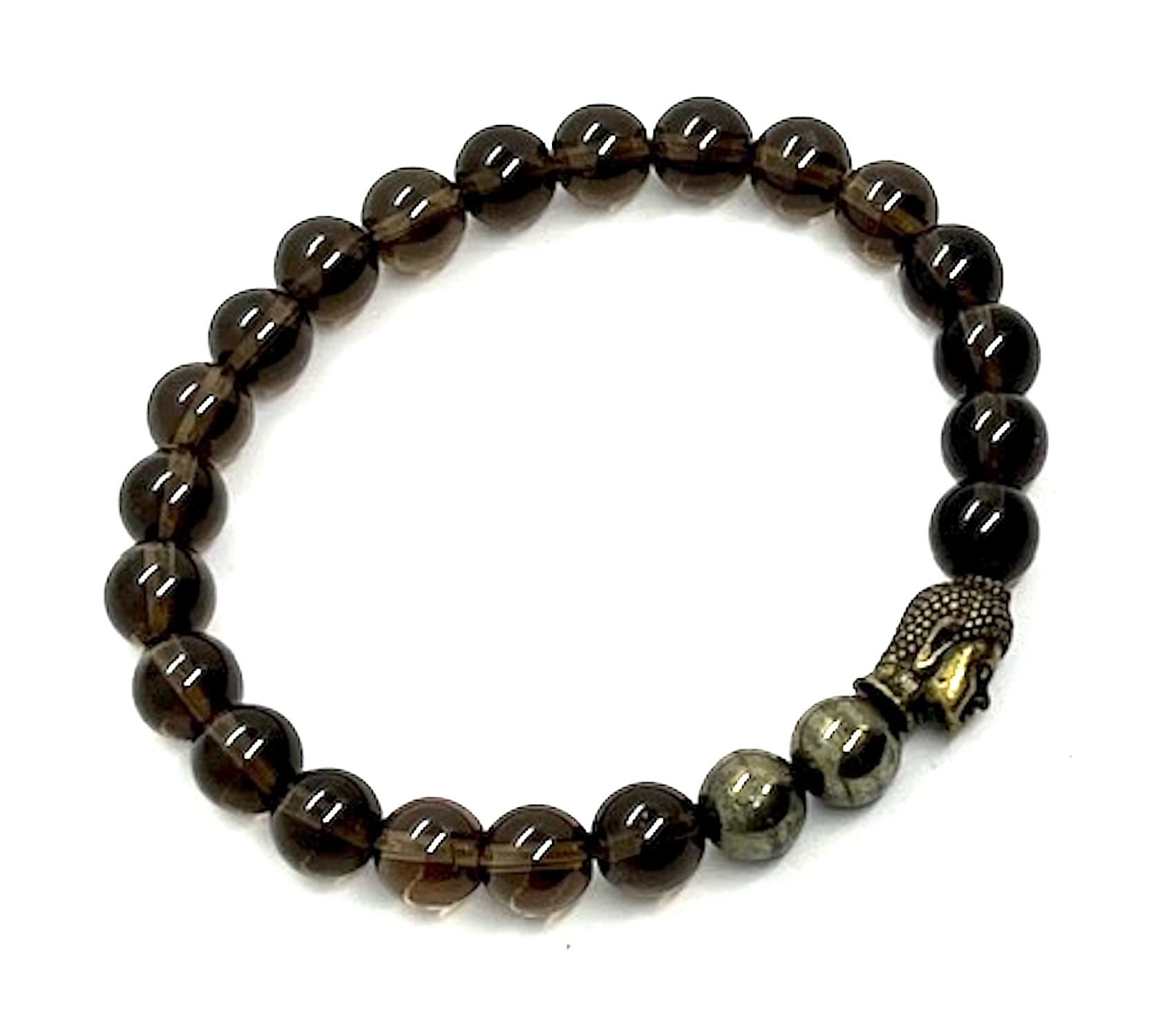 - Unisex Design: Crafted with 8mm beads on a durable elastic cord, this bracelet is designed to comfortably fit most wrists, making it a perfect accessory for men and women alike. The sleek zinc alloy Buddha spacer adds a touch of spiritual symbolism. #SmokyQuartzBracelet #PyriteJewelry #MalaBracelet #MeditationJewelry #YogaJewelry #BohoJewelry #ChakraJewelry #RootChakraJewelry #SolarPlexusJewelry #GroundingJewelry #ManifestationJewelry #UnisexJewelry #GiftForHer #GiftForHim