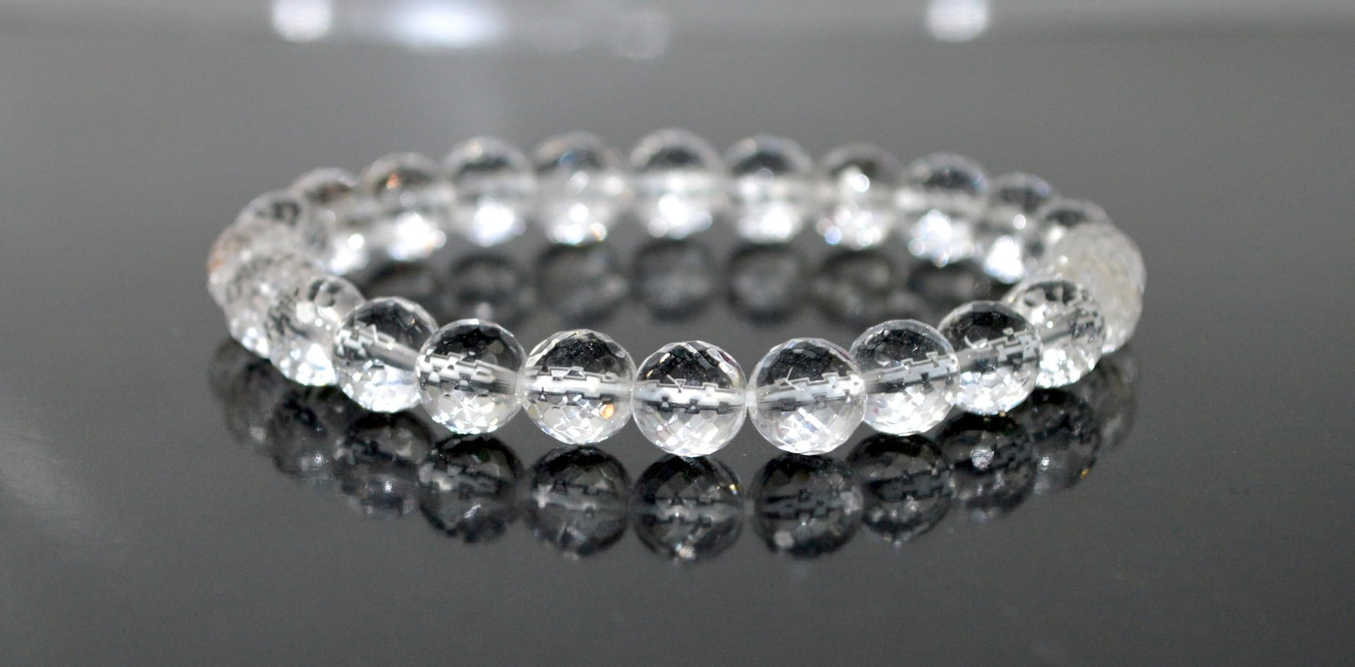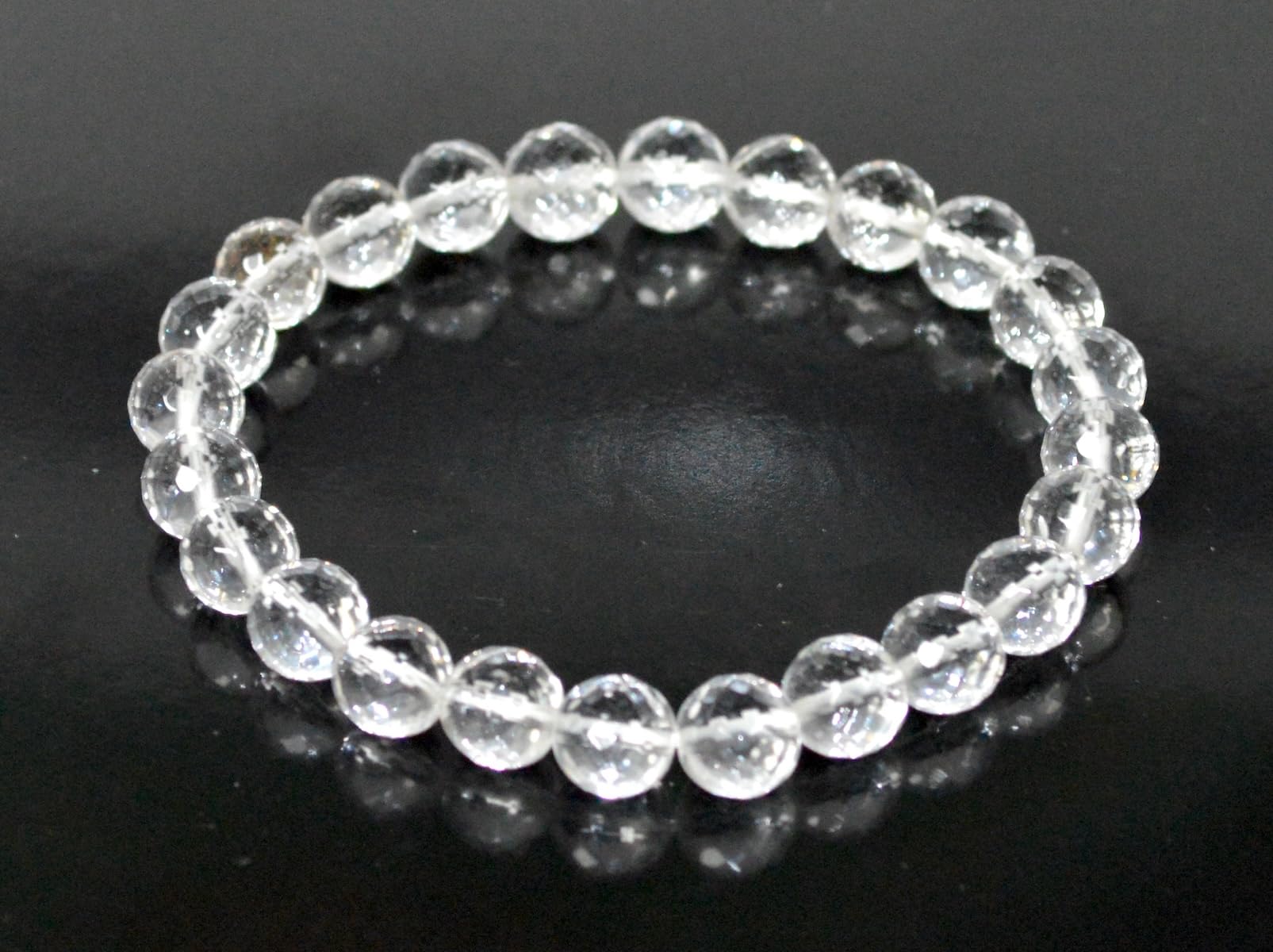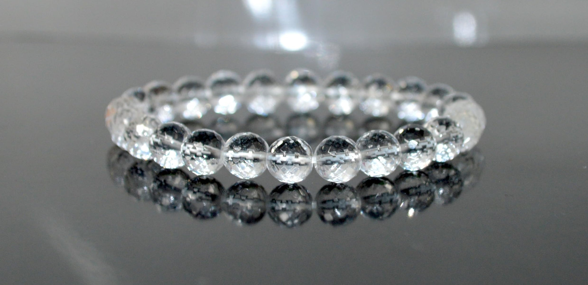 - This Stretch Bracelet is the epitome of elegance & spiritual charm. Crafted from high-quality crystal quartz with a brilliant diamond cut finish, this bracelet radiates clarity & beauty. Available in two bead sizes, 6mm and 8mm, & stretchable to fit wrist sizes from 6 to 9 inches, it's a versatile accessory that suits any occasion. Associated with the Crown Chakra, it complements your inner balance and energy flow.
