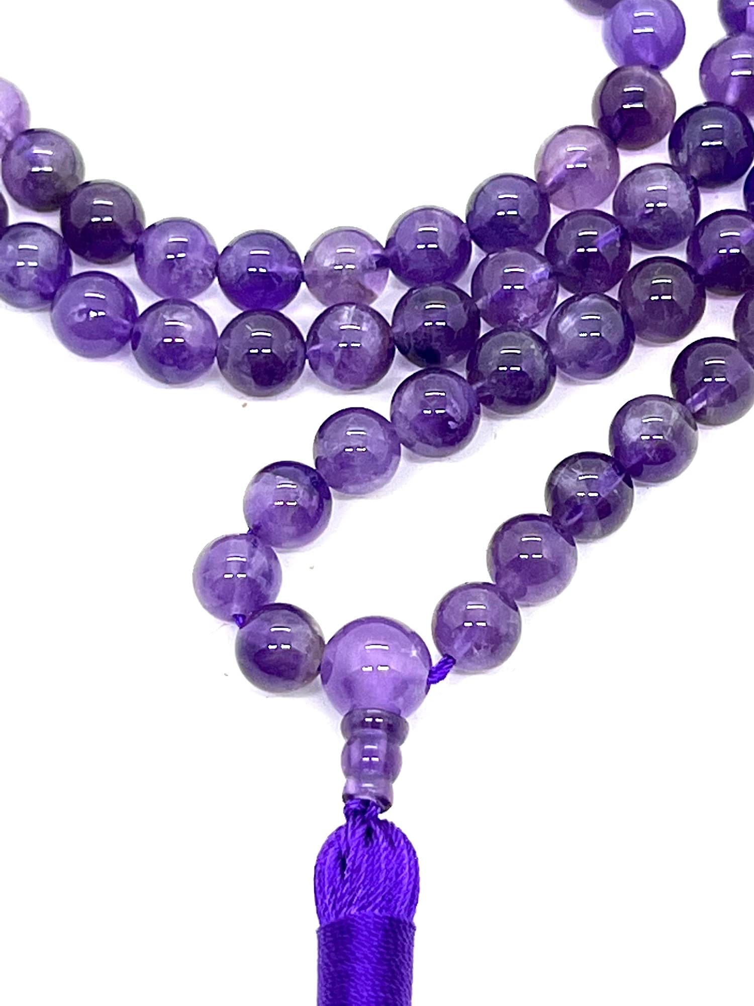 - #AmethystMalaNecklace #PiscesJewelry #FebruaryBirthstone #MarchBirthstone #AquariusGemstone #ThirdEyeChakra #CrownChakra #GemstoneBracelet #SpiritualJewelry #ClassicElegance #MeditationJewelry
