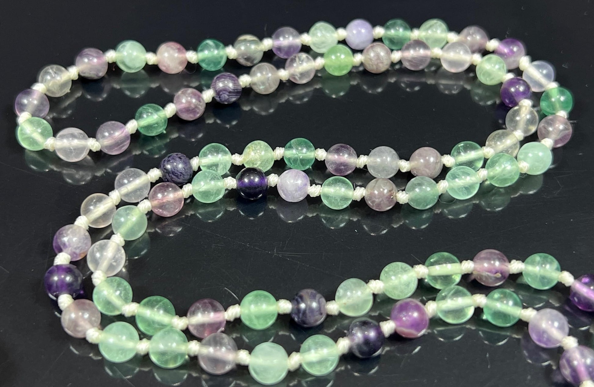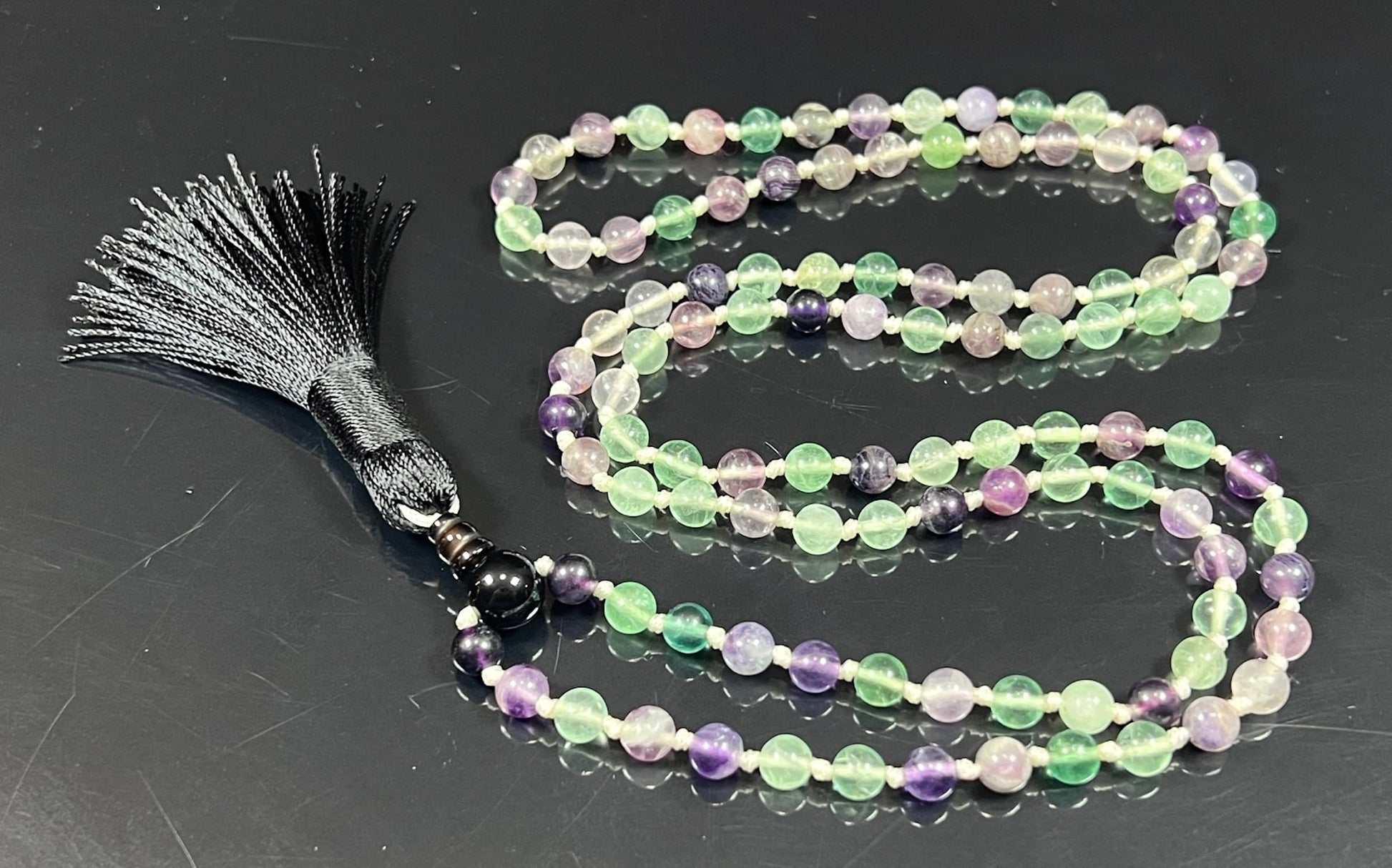 - This listing highlights the craftsmanship, spiritual significance, and versatile appeal of the hand-knotted Rainbow Fluorite mala beads necklace, catering to customers who value both aesthetics and mindfulness in their jewelry.