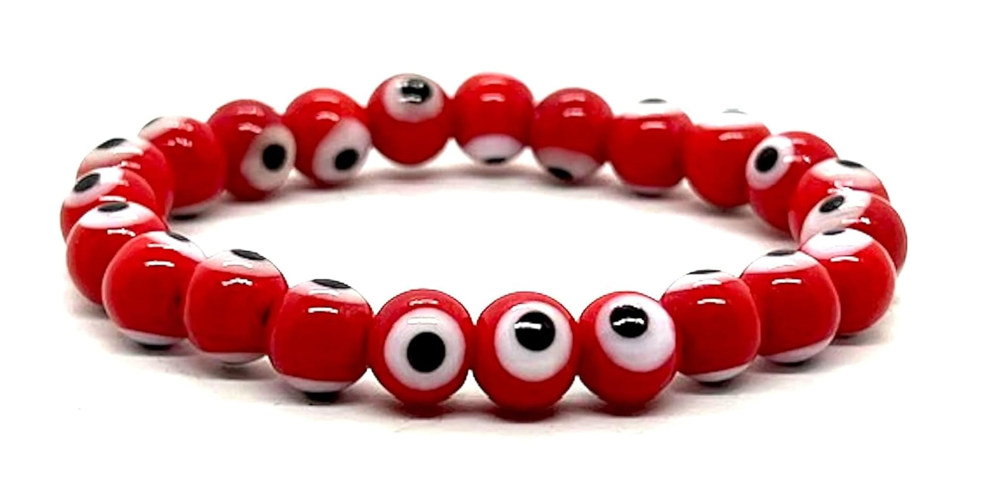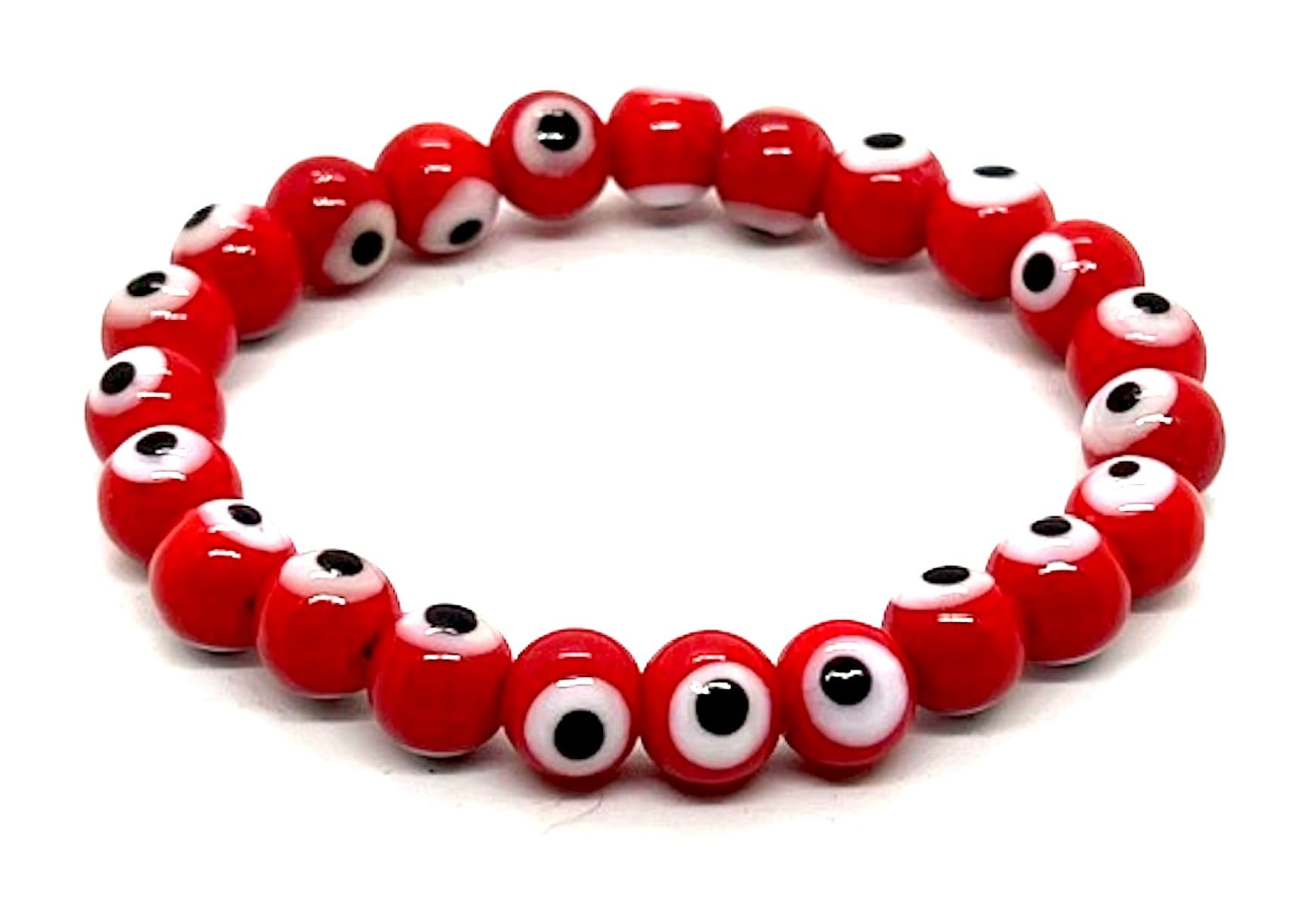 - Product Specifications: Material: Genuine Red Beads (8mm), Evil Eye Charm. Size: Approximately 7 nch circumference (one size fits most). Style: Stretch Bracelet. #RedEvilEyeBracelet #AriesBirthstone #SagittariusBirthstone #EnergyJewelry #ProtectionJewelry #LuckyJewelry #NazarBoncukBracelet #TurkishEyeBracelet #BohoBracelet #StackingBracelet