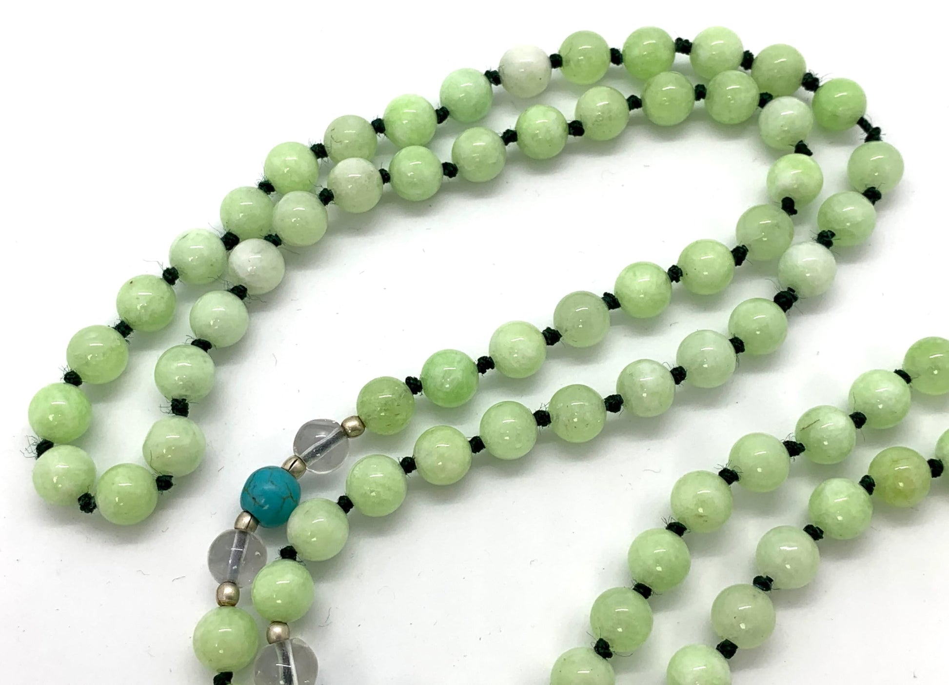 - #FluorescentGreenJadeMalaNecklace #7ChakraMala #LibraBirthstone #HandKnottedJewelry #SpiritualJewelry #MeditationMala #108BeadsMala #AstrologicalSign #HolisticJewelry #ChakraAlignment