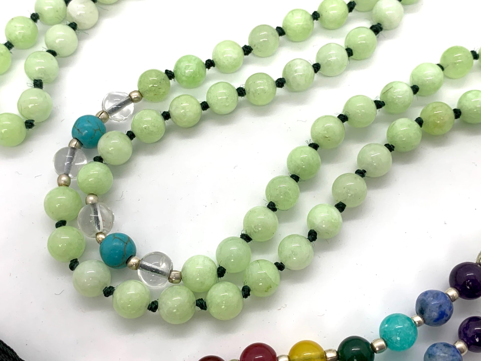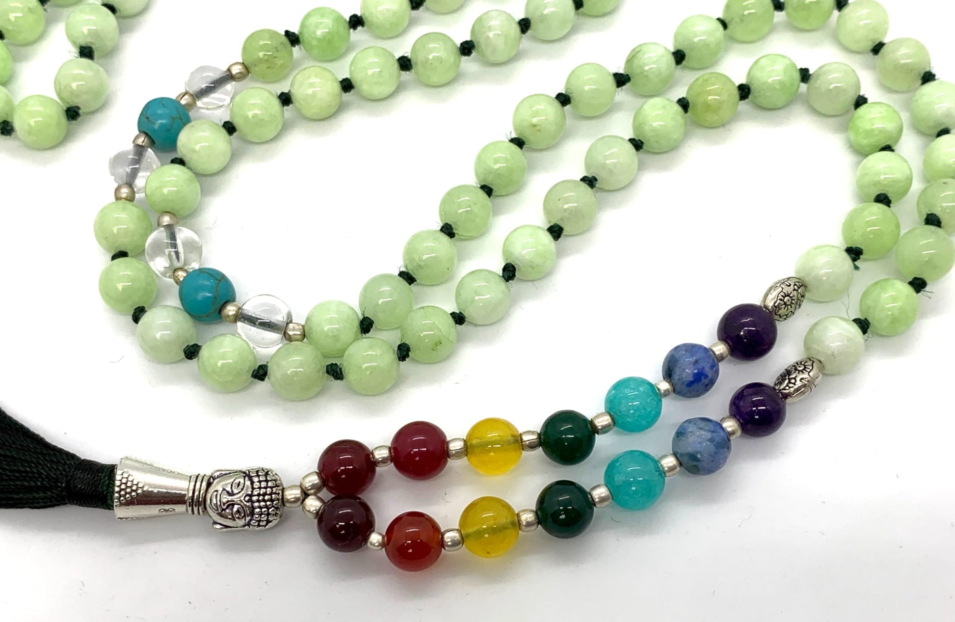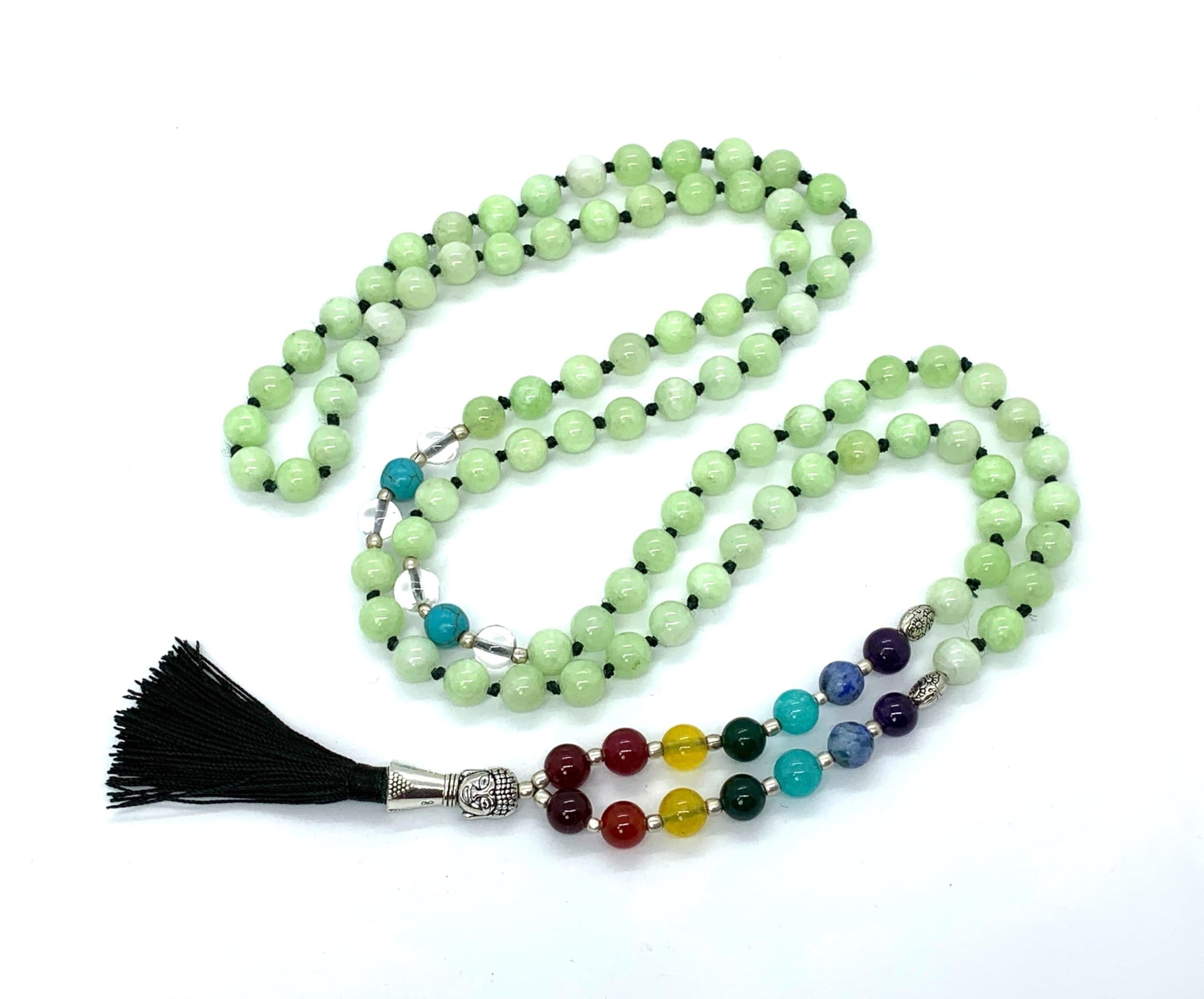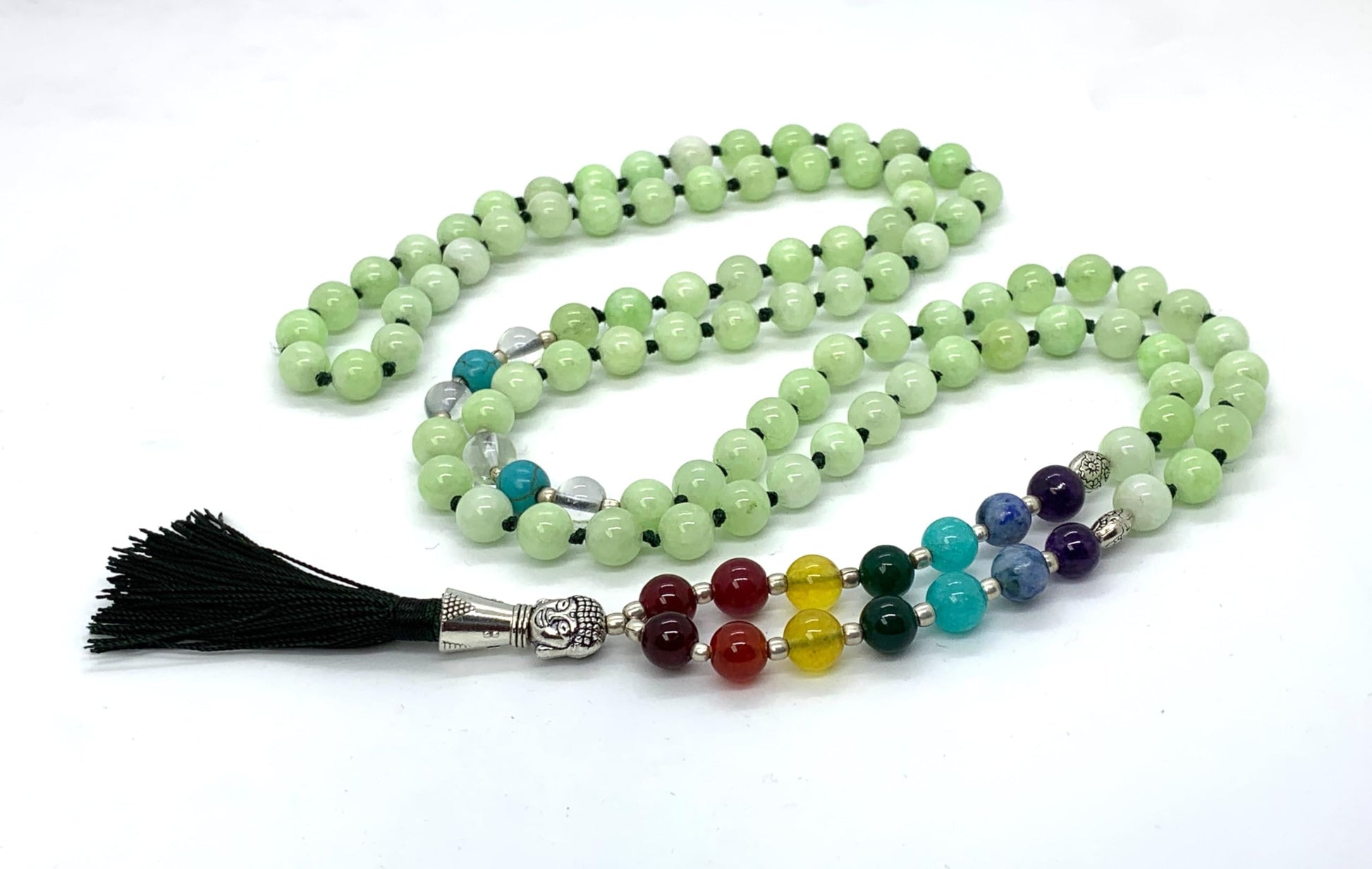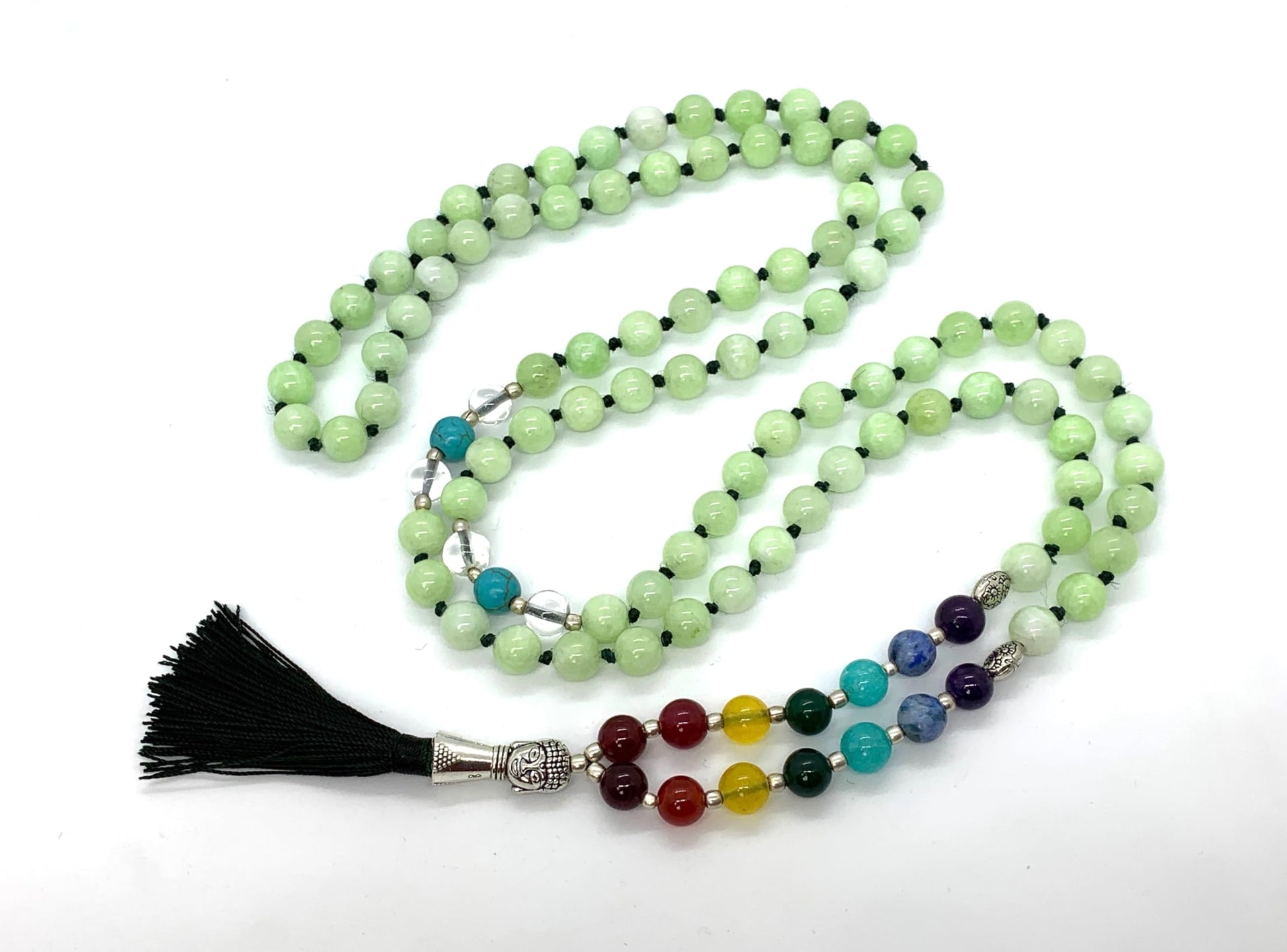 - 7 Chakra Mala: This mala is aligned with the 7 chakras, symbolizing a holistic connection to energy centers within the body. Libra Birthstone: Green jade is traditionally associated with the Libra sun sign, adding a personalized and meaningful touch for those born under this astrological sign.
