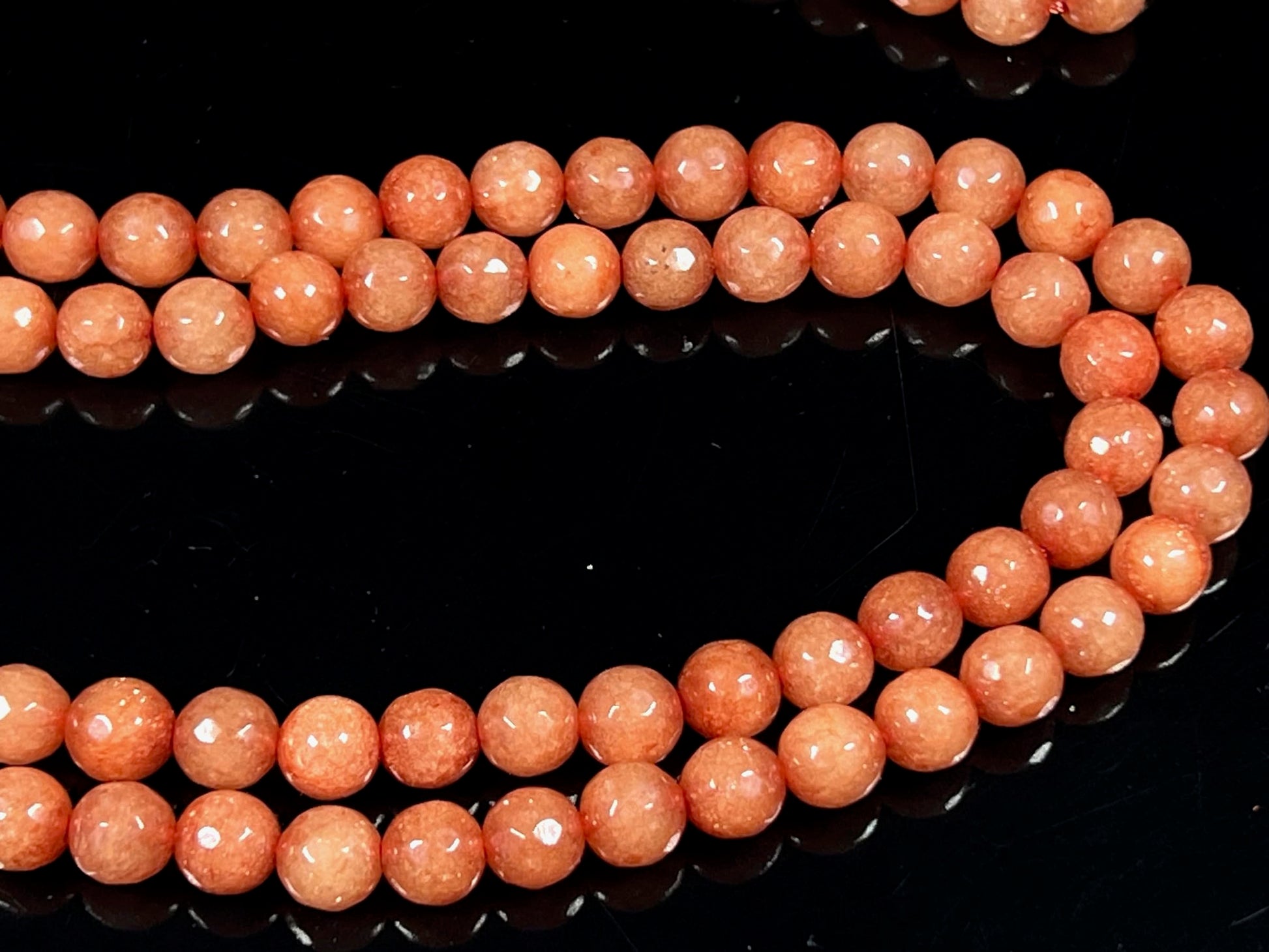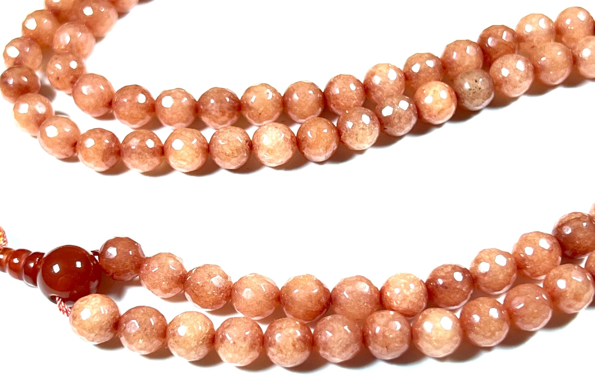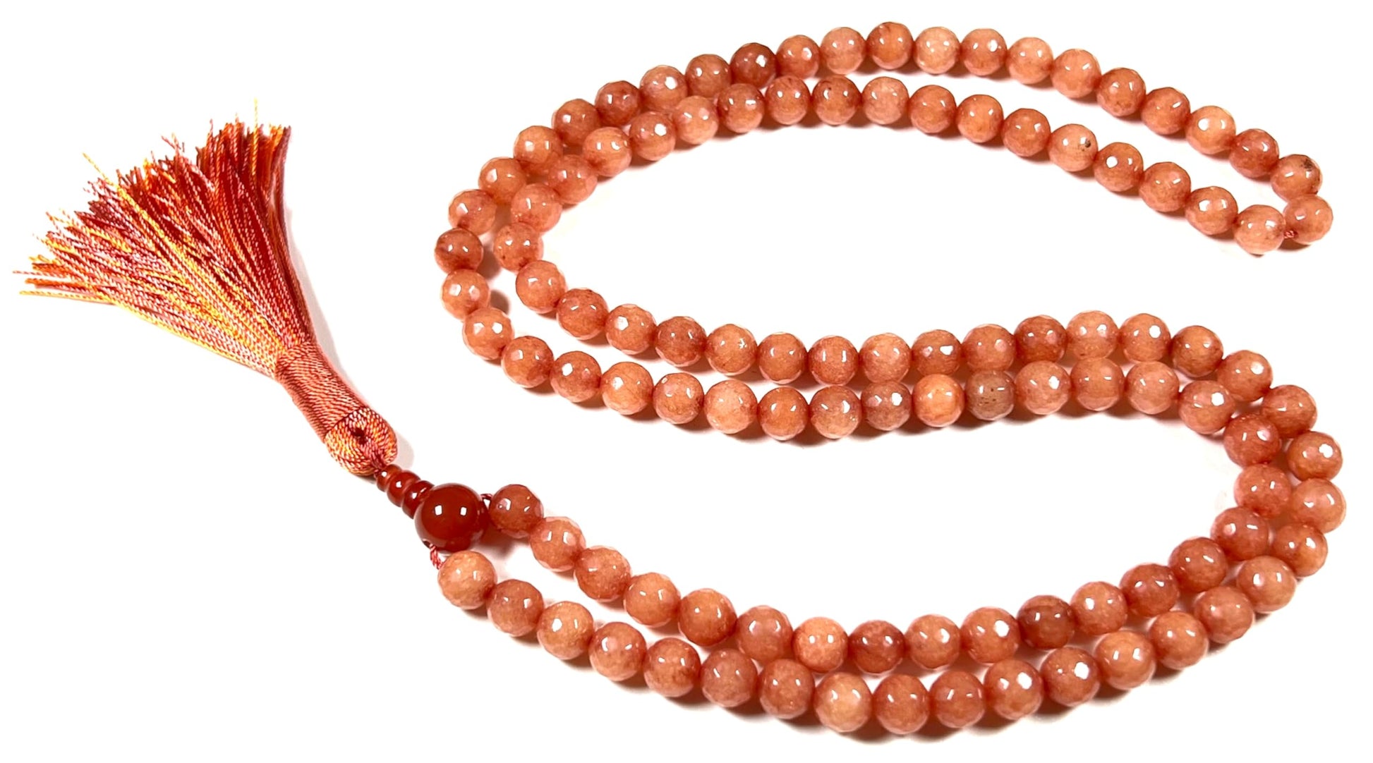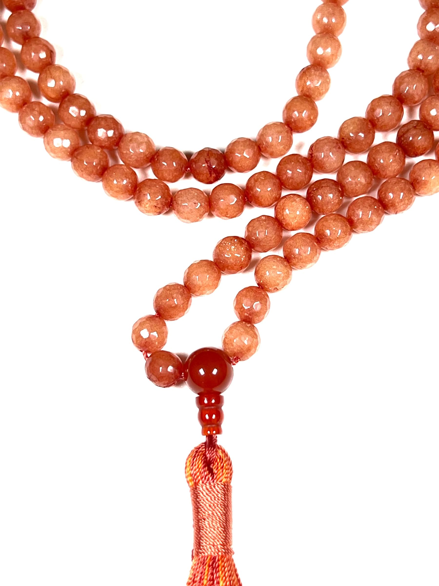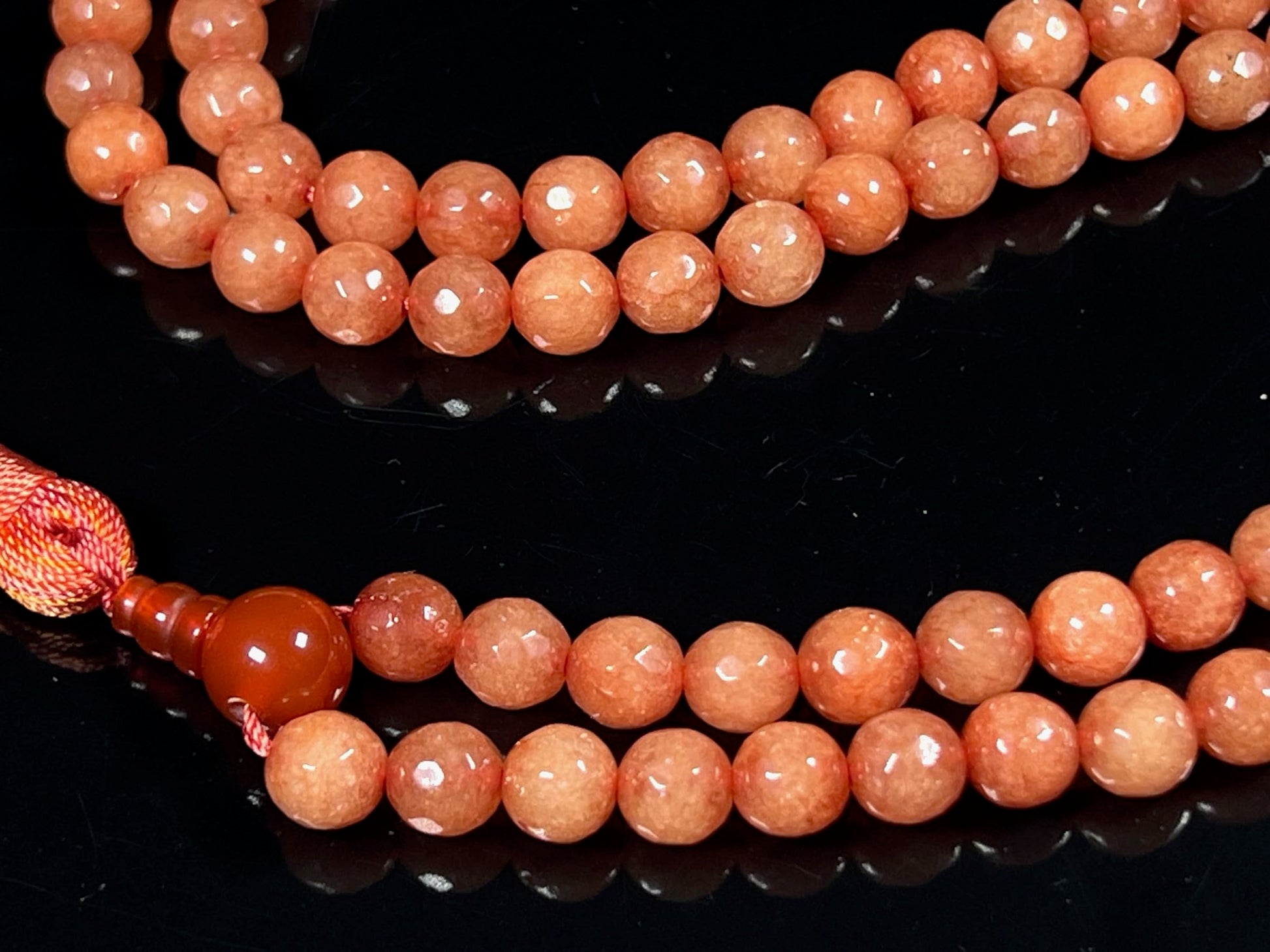 Faceted Orange Jade Mala Beads Necklace – 8mm, 108 Beads – Birthstone & Chakra Energy Beads for Spiritual Practices & Meditation