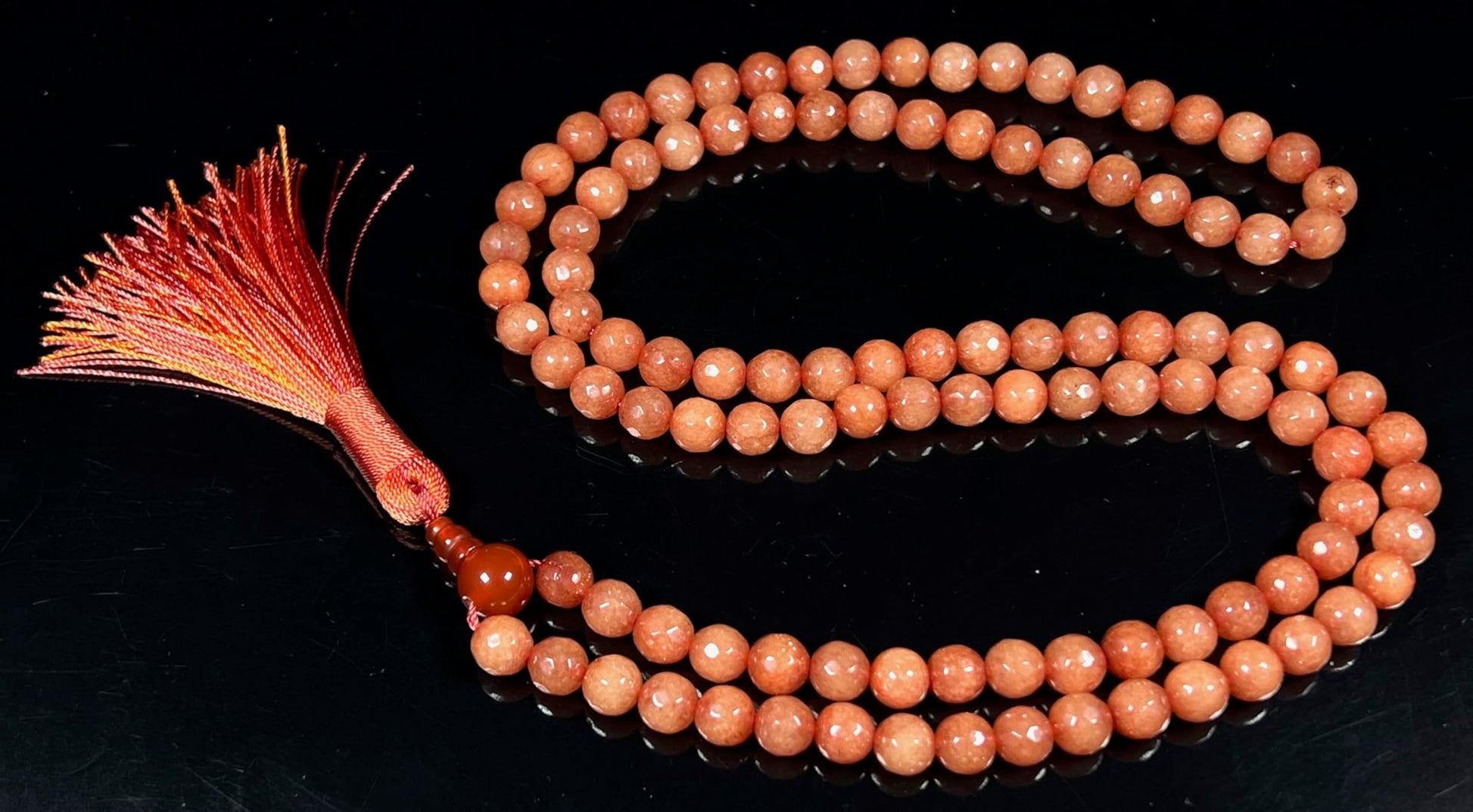- #OrangeJade #MalaBeads #MeditationJewelry #SpiritualJewelry #EnergyBeads #HandmadeJewelry #FacetedGemstones #ChakraJewelry #YogaMala #BohemianStyle