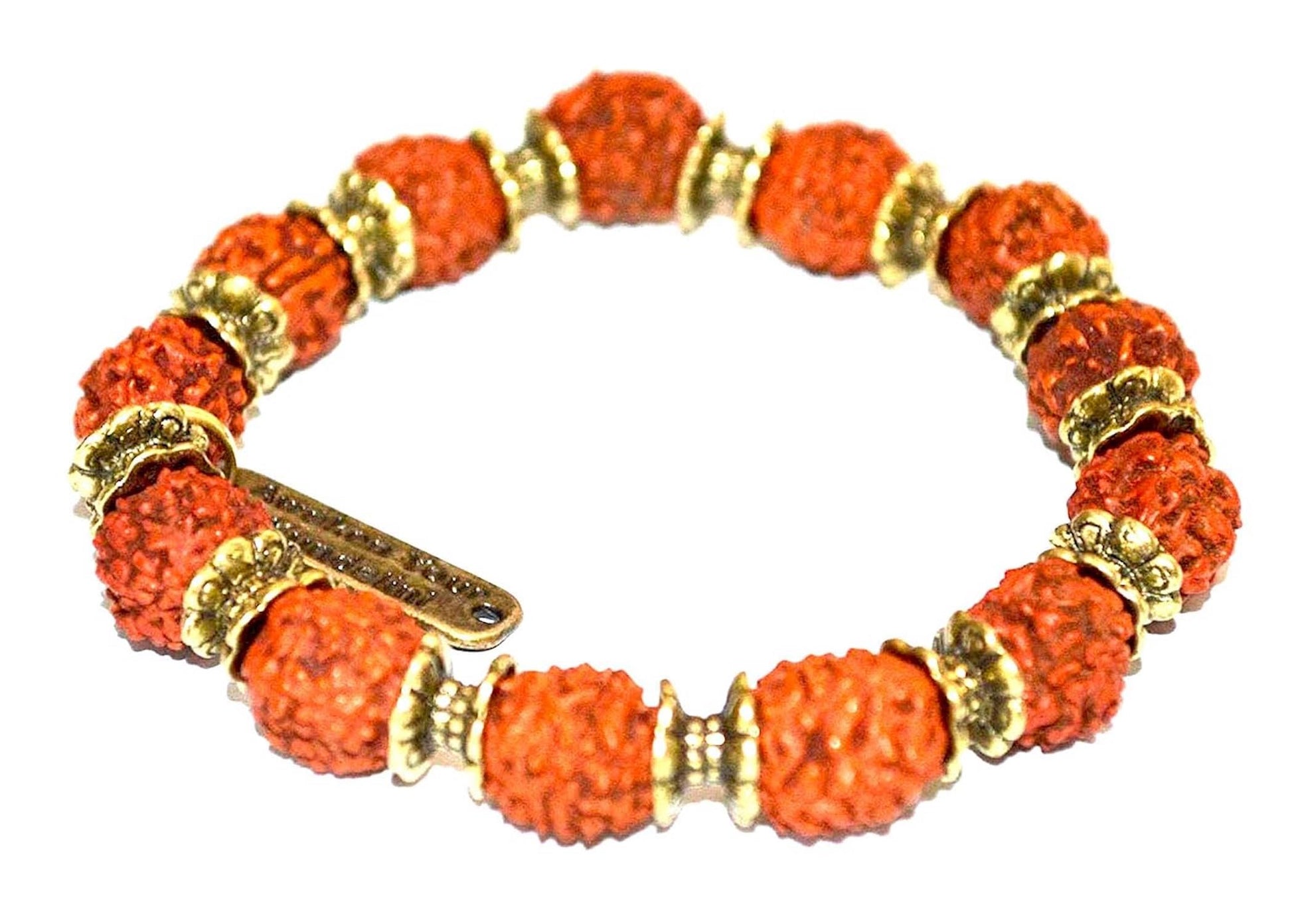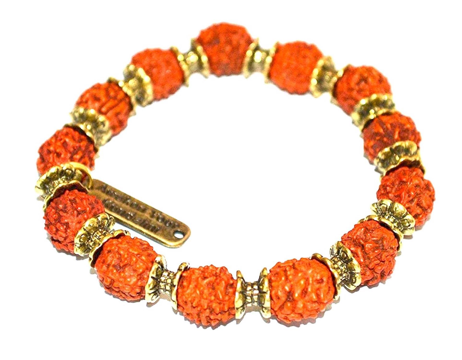 - Product Specifications: Material: Genuine 5 Mukhi Rudraksha Beads (10mm), Brass Alloy Spacers Wrist Size: Stretchy design for a comfortable fit Style: Stretch Bracelet.