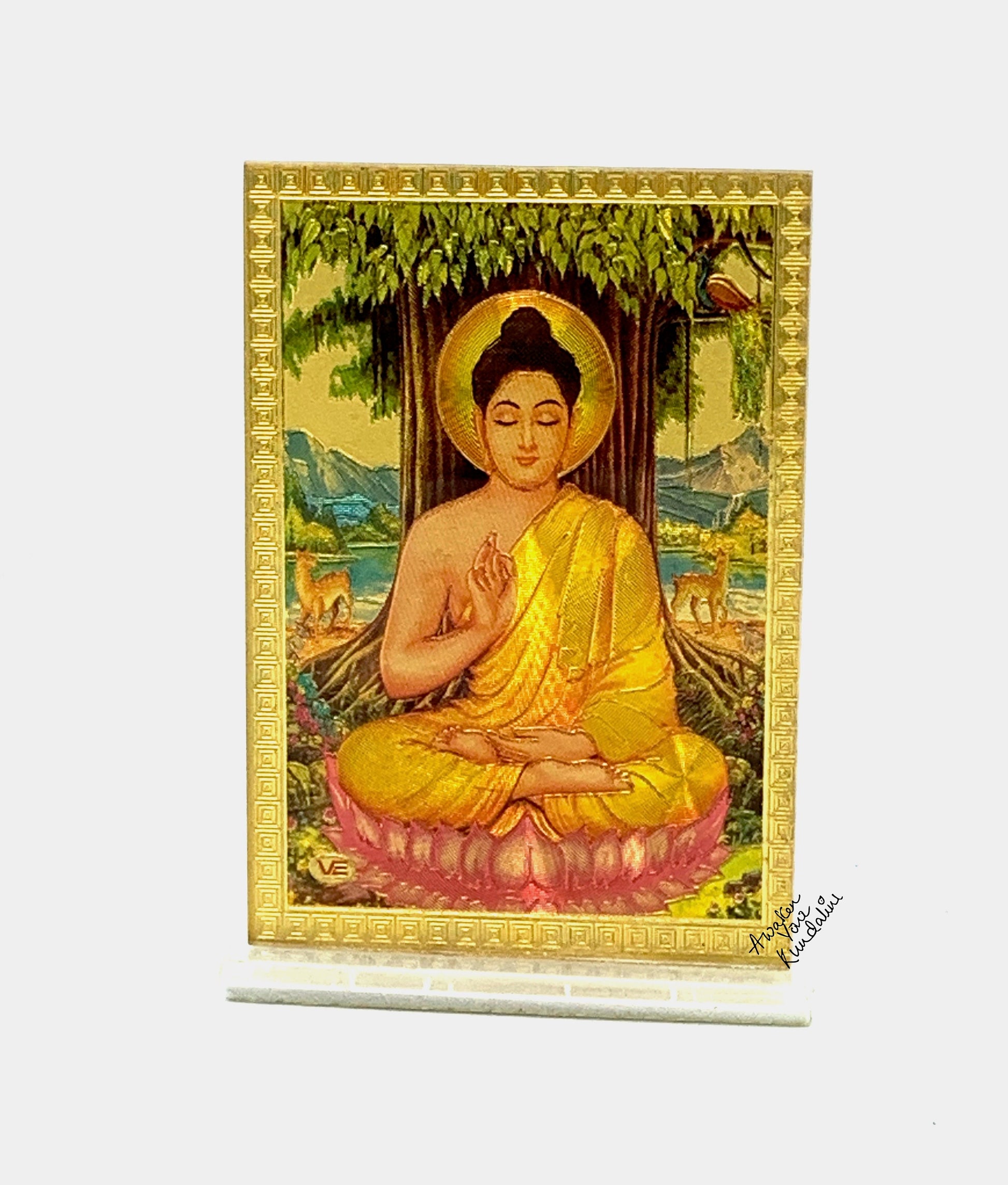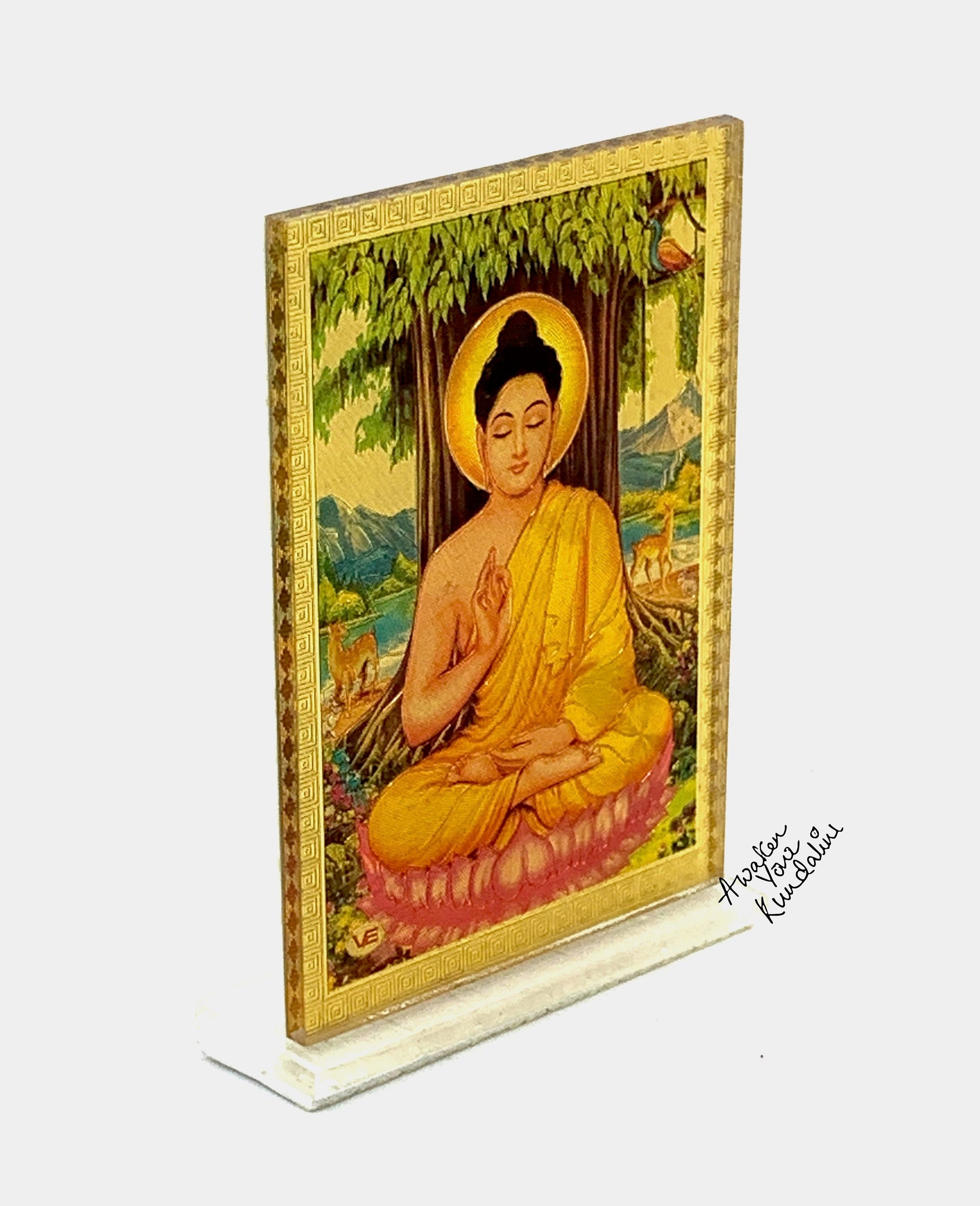 Gold Buddha Acrylic Photo Frame, gift item, wall art, Hindu Pooja, pooja gift article, gift article, return gift, diwali, Indian gifts, wedding gift, pooja return gift, housewarming gift, baby shower gift, God Idol, Minimal, Gold Om, Aum, Disc with Om, Gold Flower Disc, Yoga Lover, Symbolic, Spiritual, Buddhist Gift, Gold Om Charm, 14k,