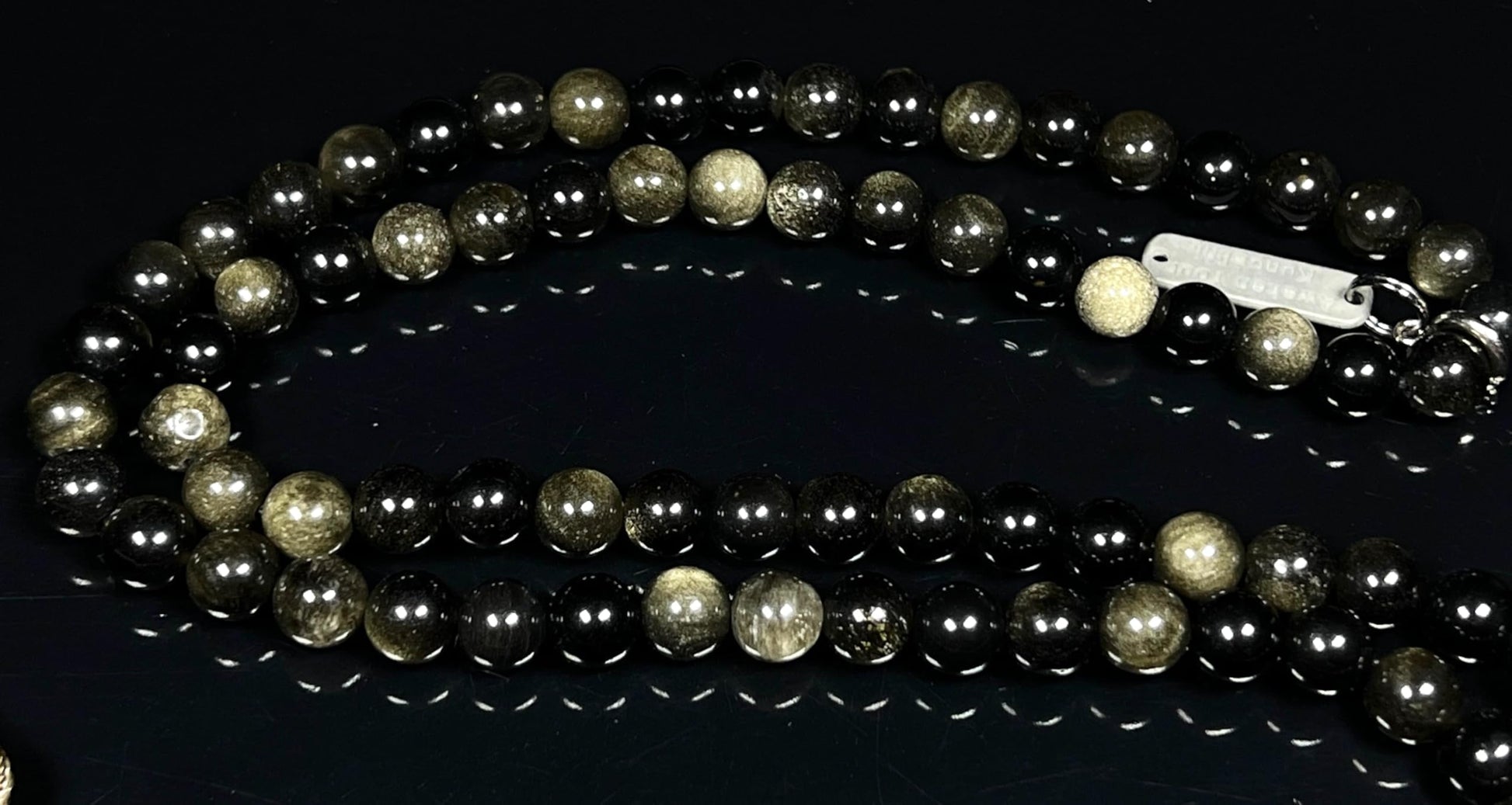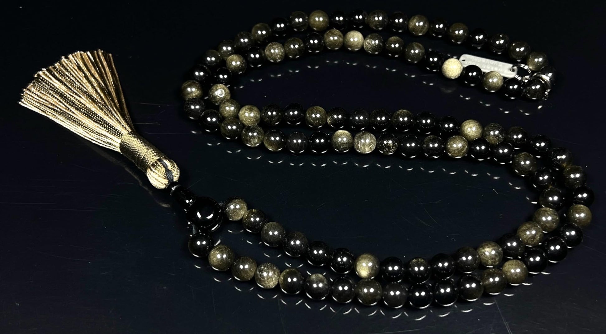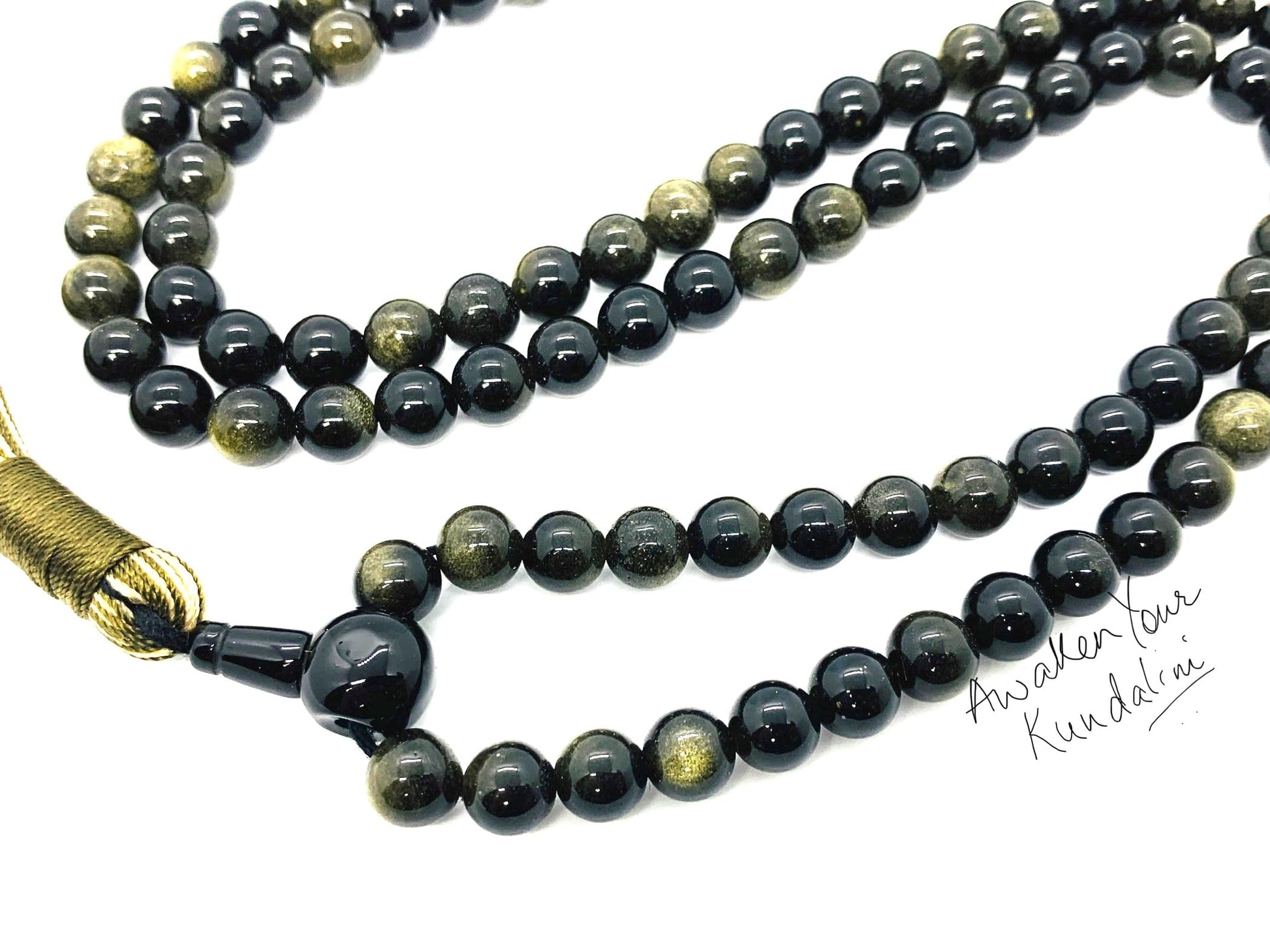 Attuned to both the Root Chakra (Muladhara) and the Solar Plexus Chakra (Manipura), this mala anchors your spirit to the Earth while igniting your inner fire of determination, willpower, and clarity. Golden Sheen Obsidian has long been used by spiritual seekers as a mirror of the soul — revealing what lies beneath the surface and empowering transformation through honesty and strength. Whether worn in meditation, prayer, or as a spiritual accessory, this mala necklace radiates both grounding and illumination.