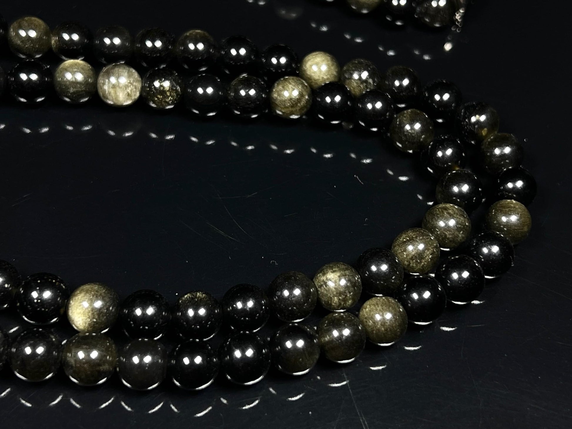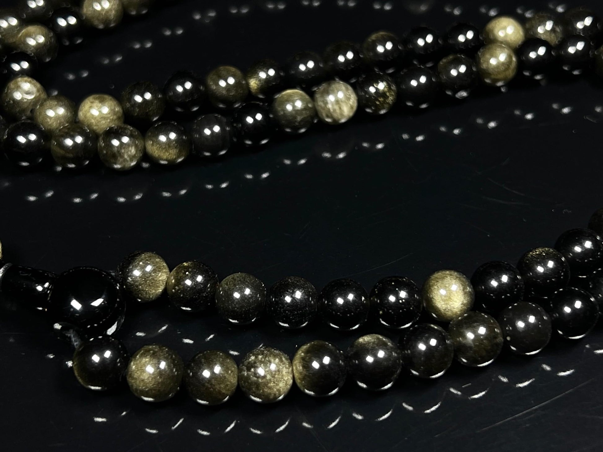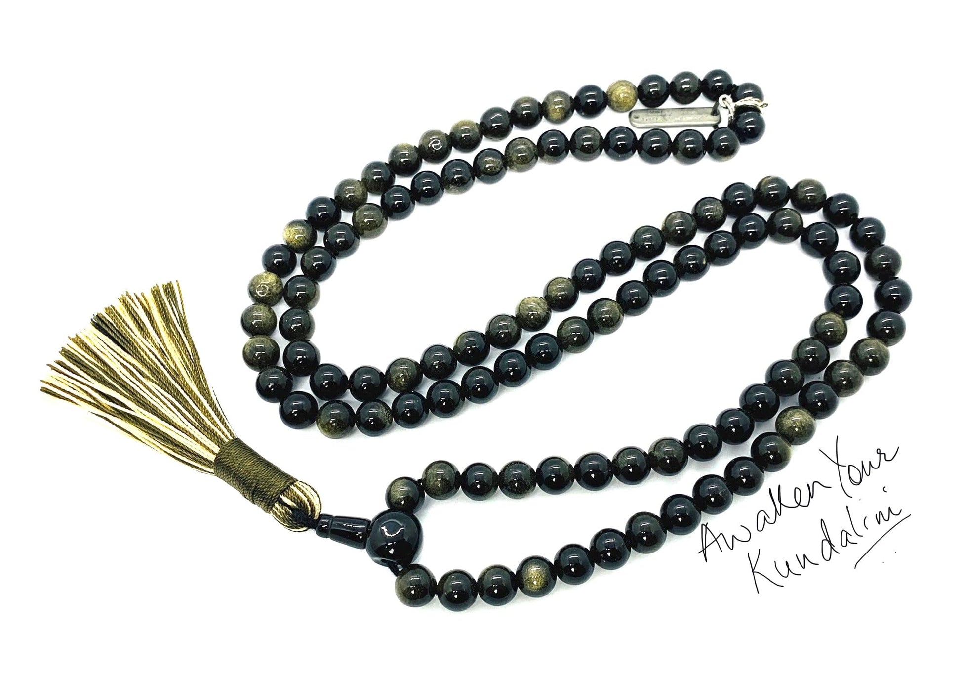 Golden Sheen Obsidian Mala Necklace | Root & Solar Plexus Chakra | CHAAYA Collection