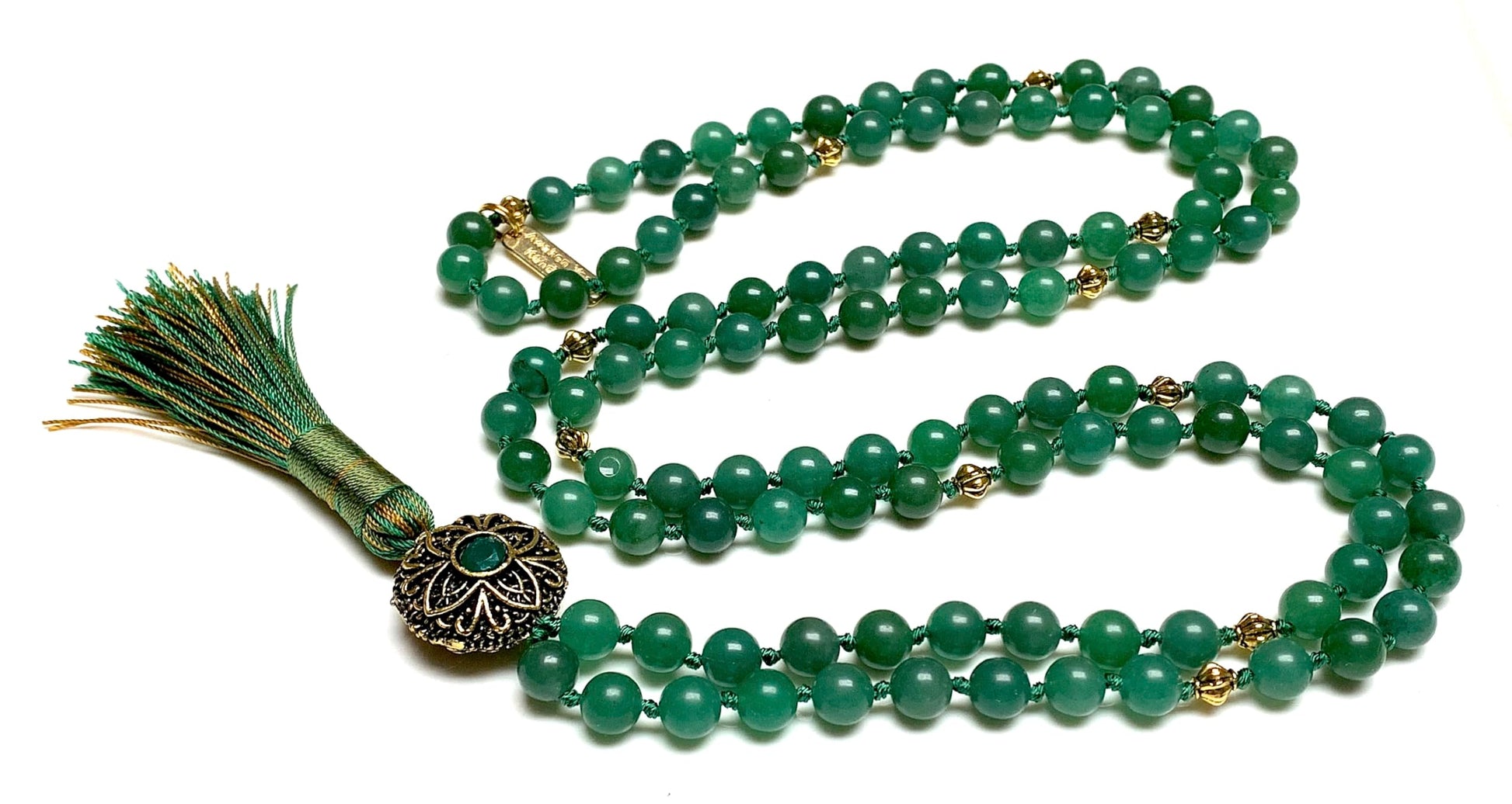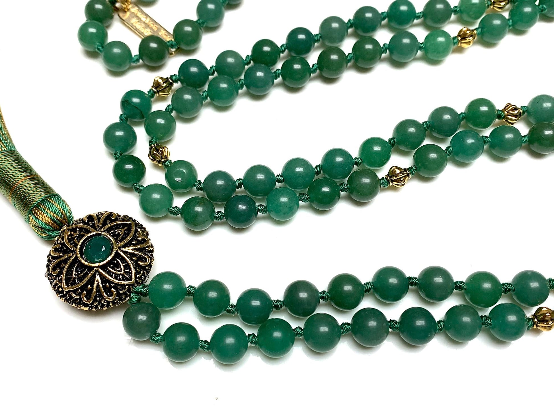 AERIS Green Aventurine Mala Necklace | 108 Hand-Knotted Beads for Creativity, Emotional Healing & Heart Chakra Balance | Taurus & Virgo Birthstone | Handmade in USA