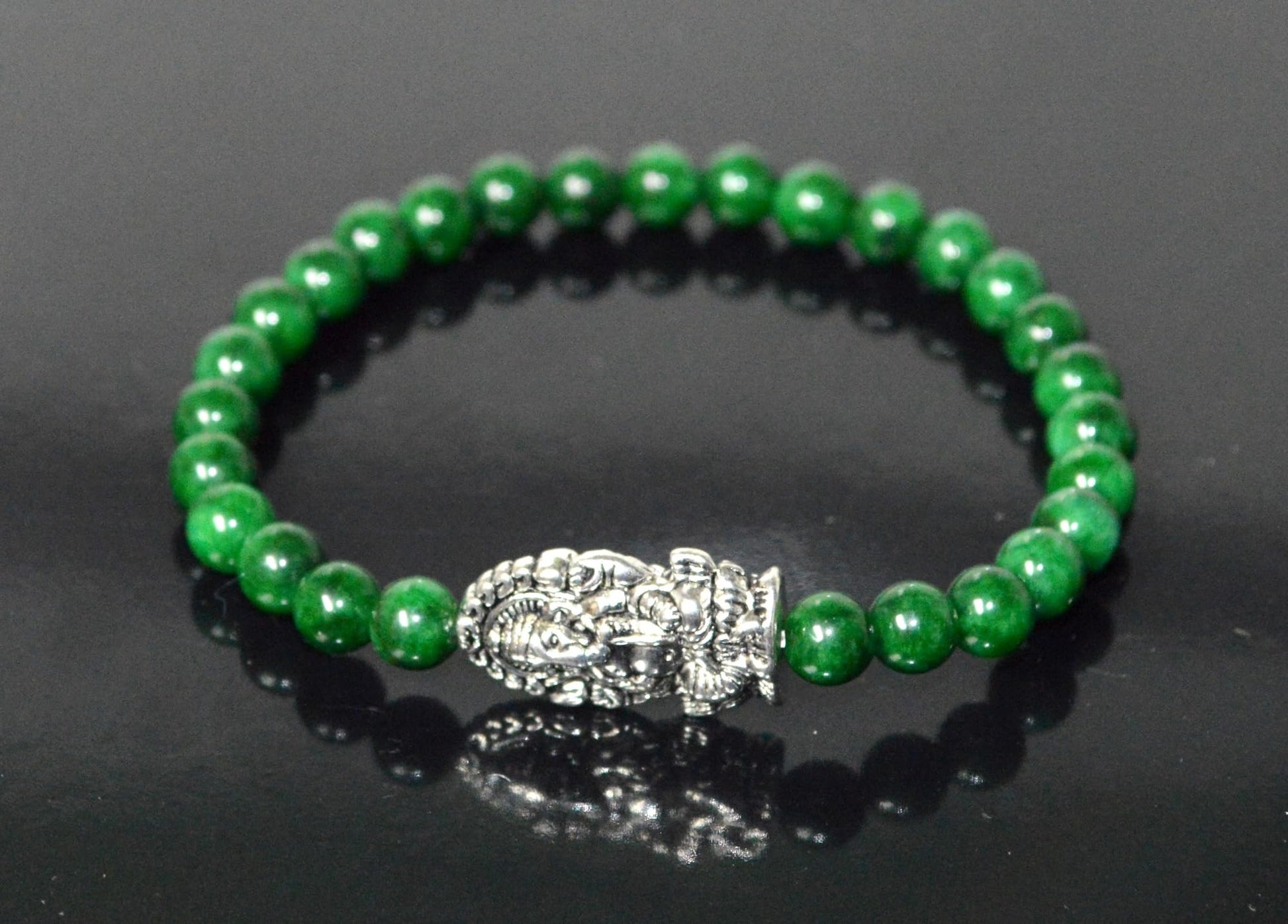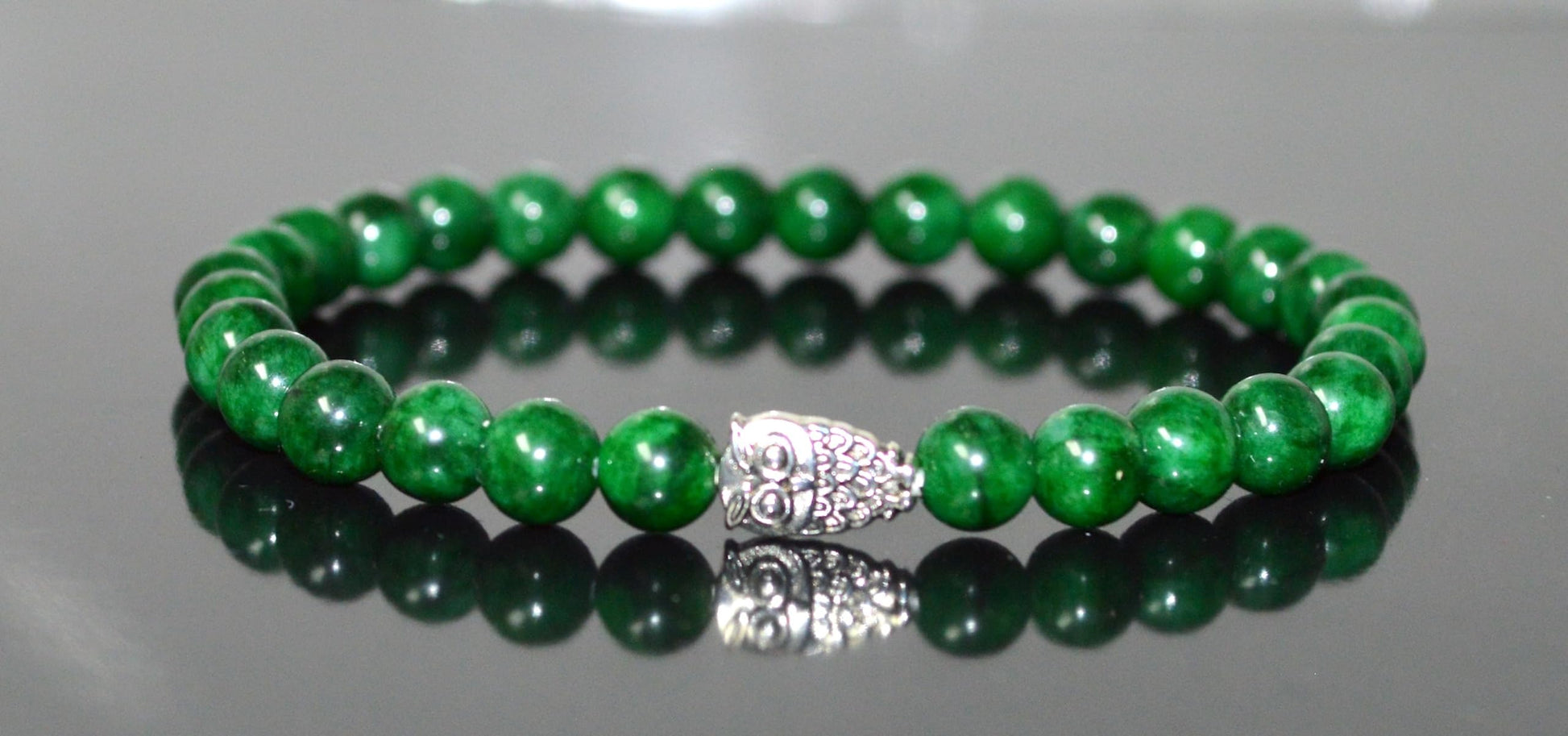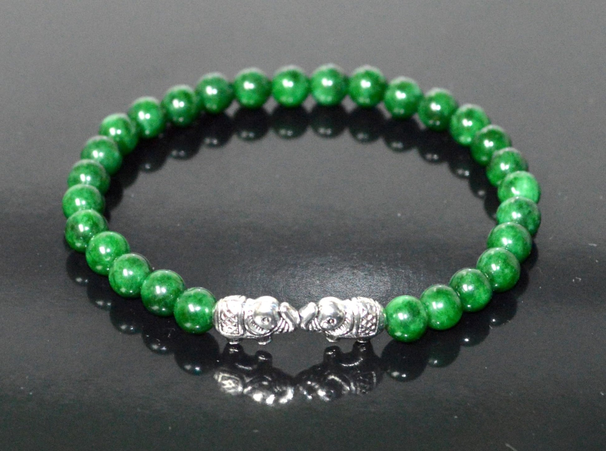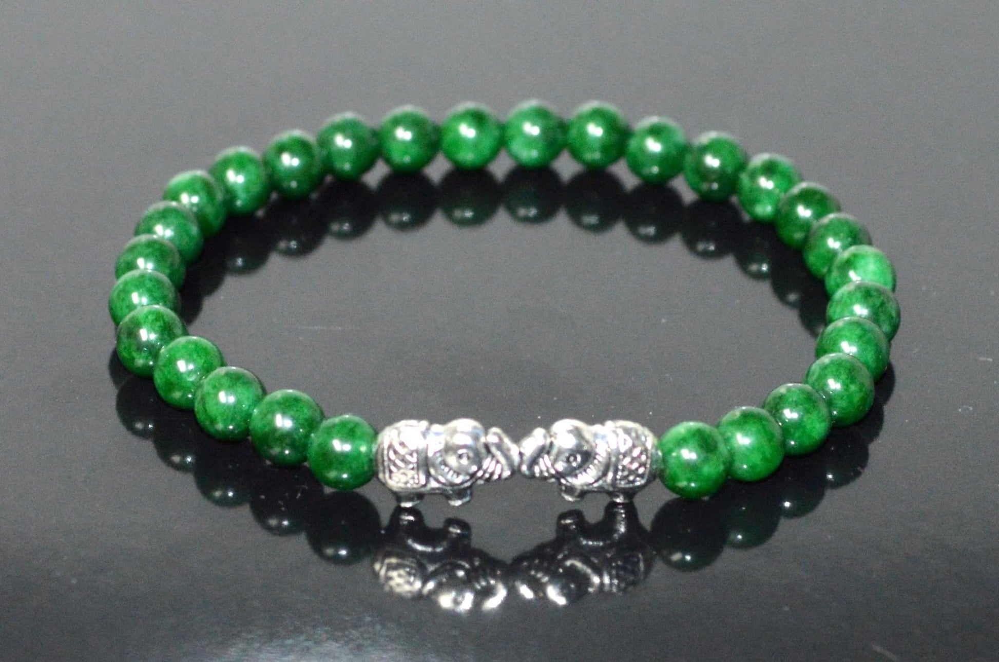 - #GreenJadeBracelet #MayBirthstone #HeartChakra #GaneshaJewelry #MotherMaryBracelet #ElephantCharm #OwlJewelry #SpiritualJewelry #StretchBracelet
