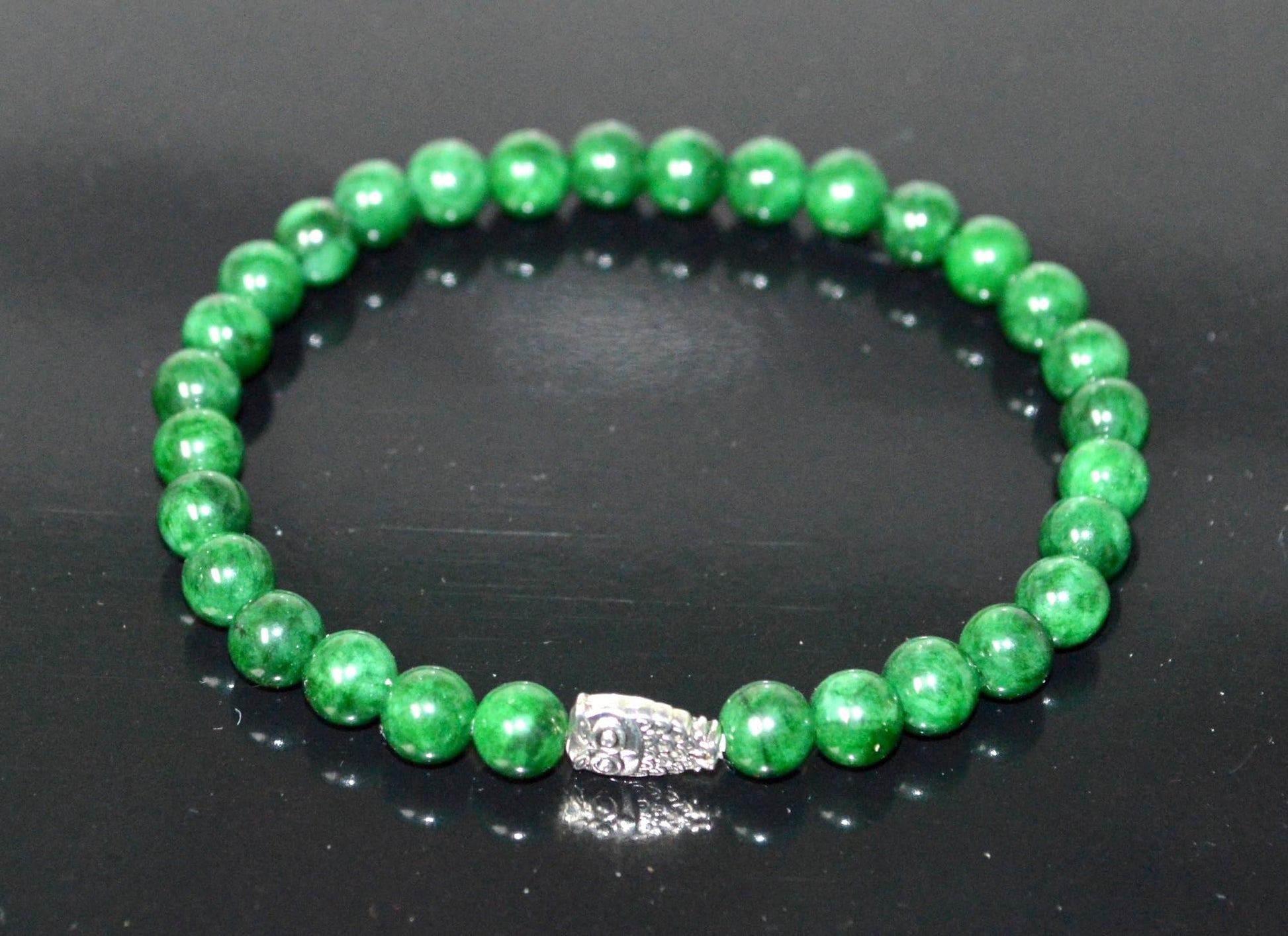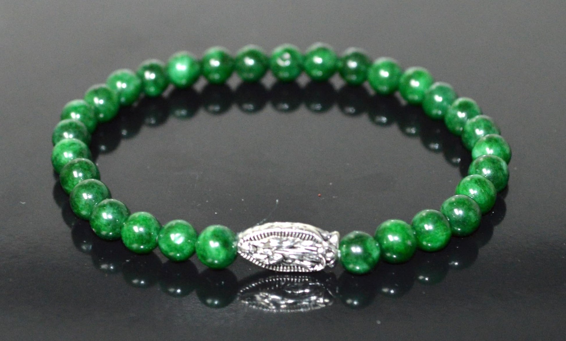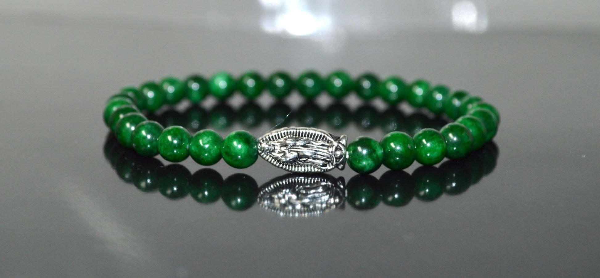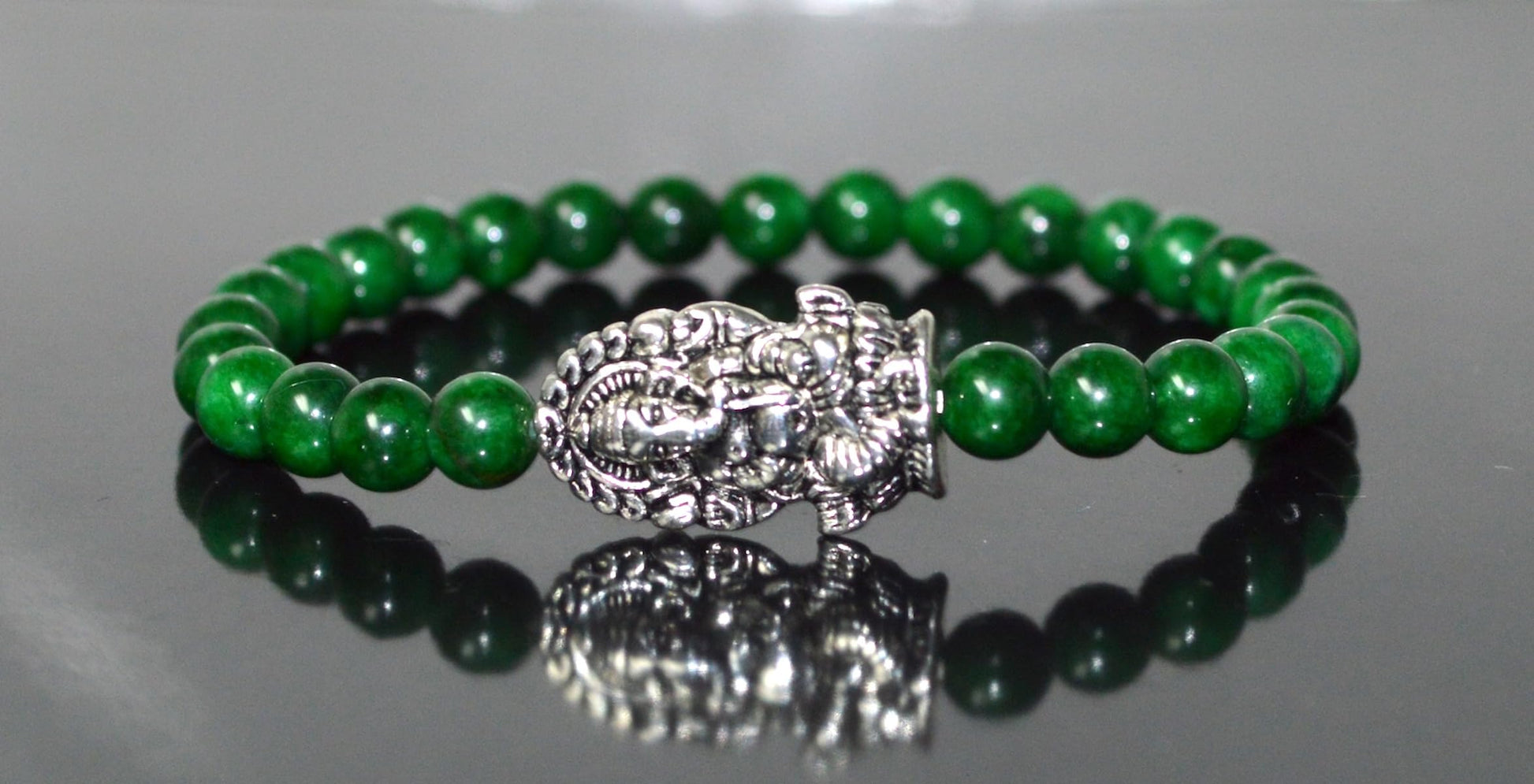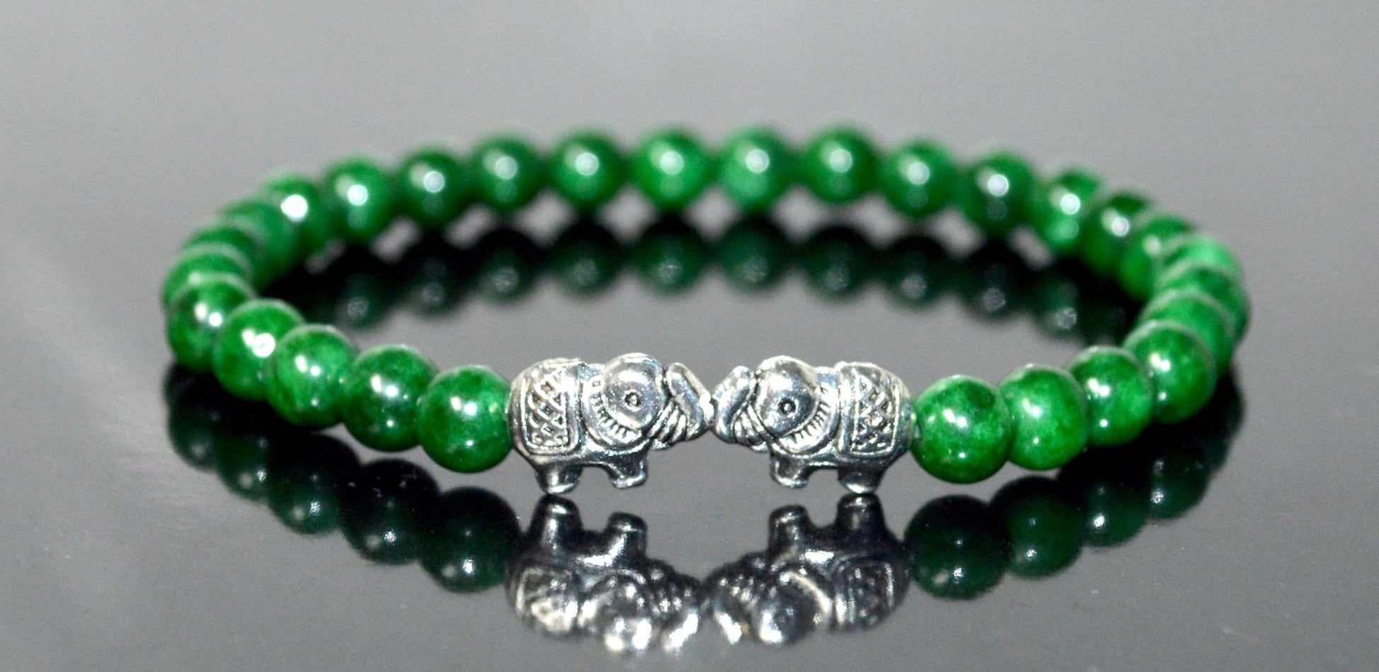 - #GreenJadeBracelet #MayBirthstone #HeartChakra #GaneshaJewelry #MotherMaryBracelet #ElephantCharm #OwlJewelry #SpiritualJewelry #StretchBracelet