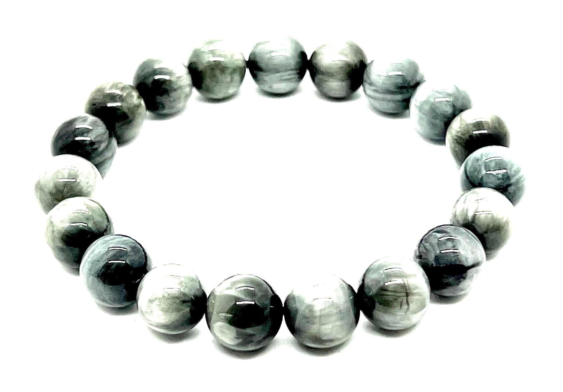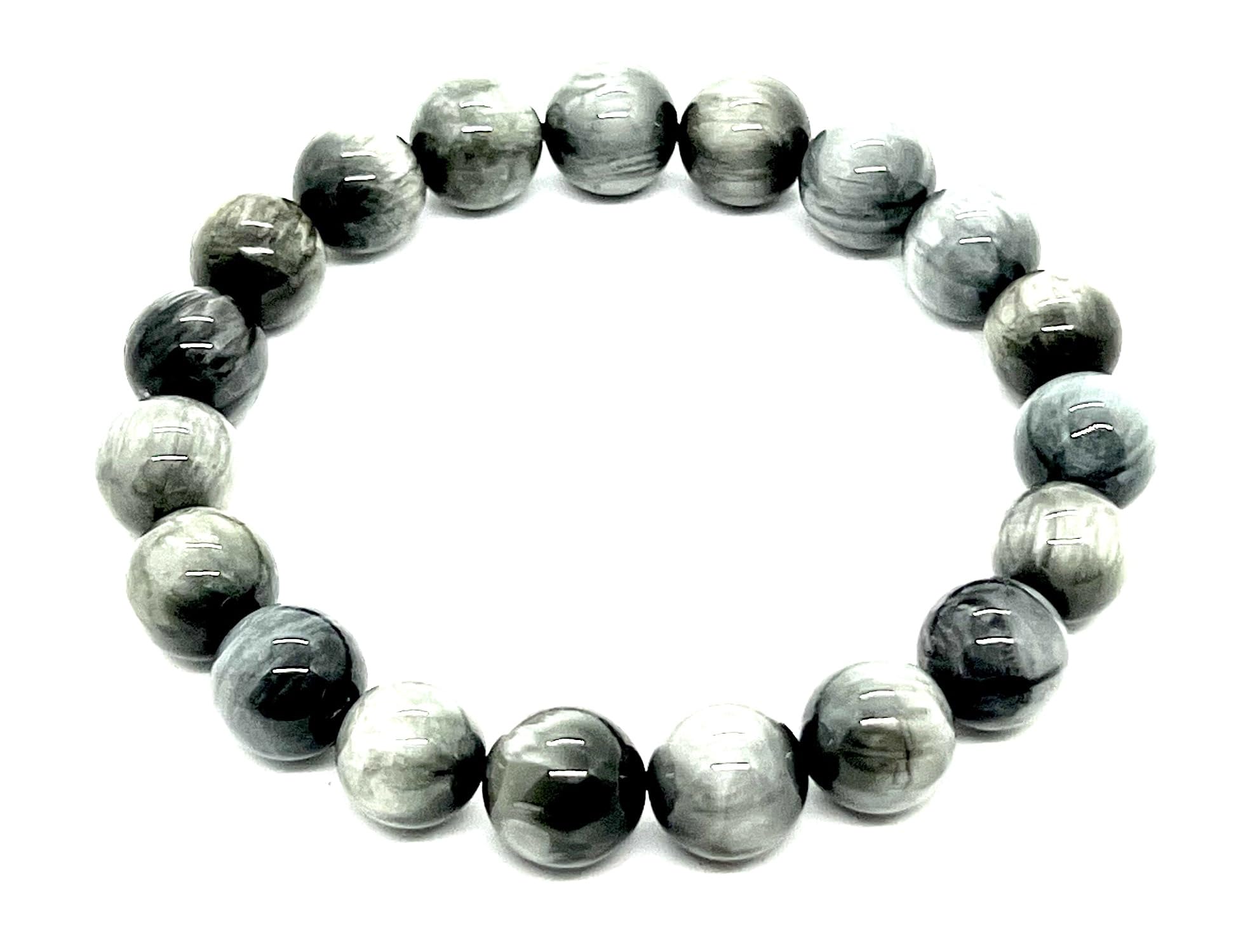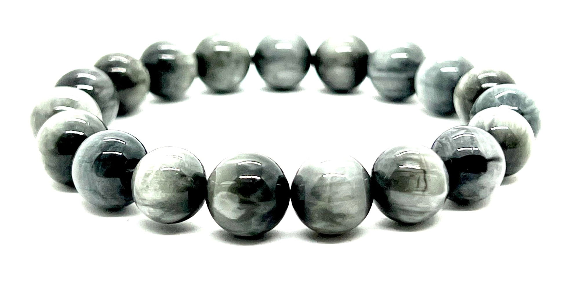 - Product Specifications: Gemstone: Grey Tiger's Eye (Hawk's Eye) Bead Size: 8mm Material: Stretch Cord Style: Stretch Bracelet