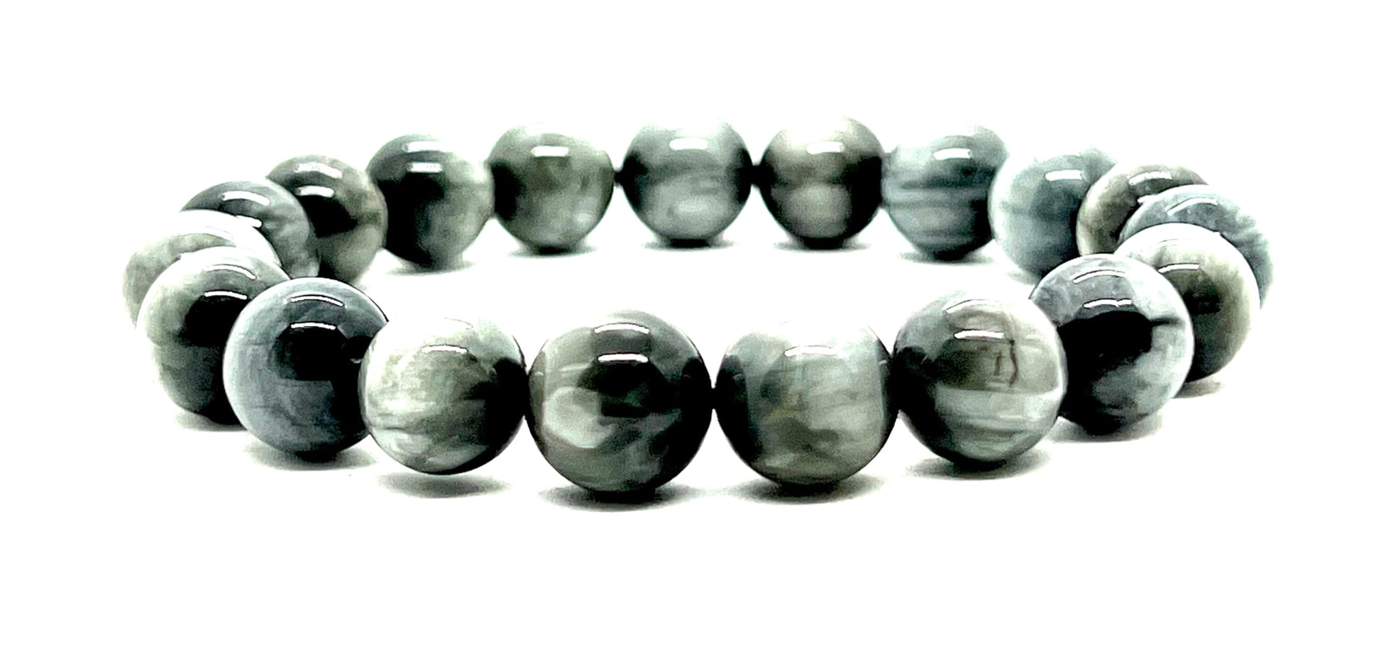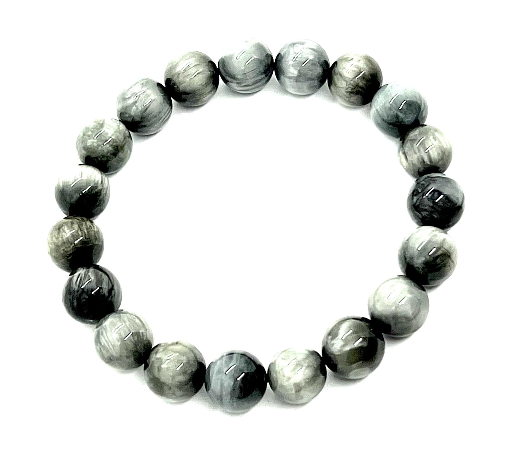- Handmade in USA. Imagine a sense of tranquility and clarity accompanying you throughout the day. The soft grey tones of this bracelet offer a soothing presence, while the inherent strength of Tiger's Eye provides support and protection.