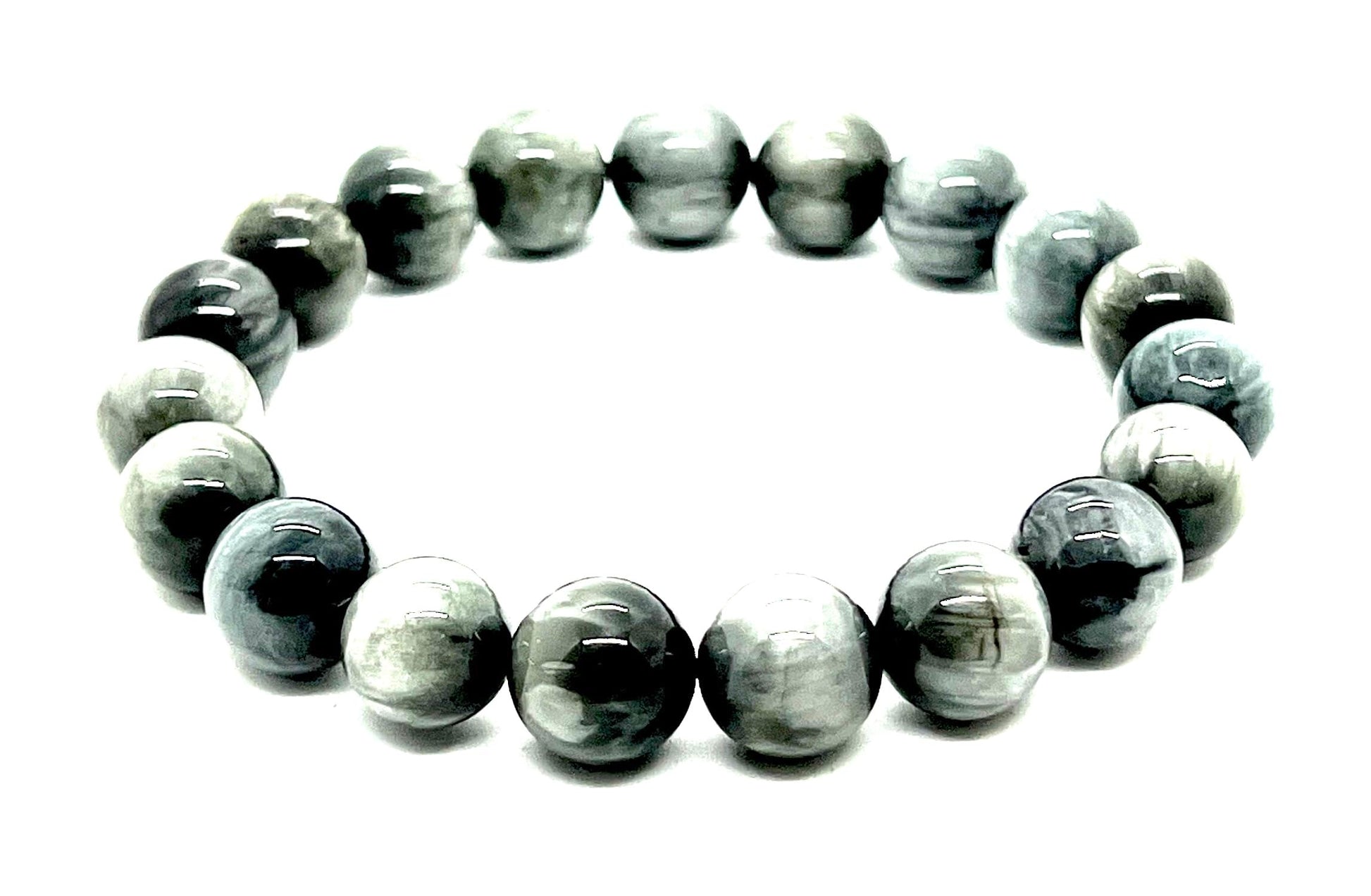 Grounding Elegance: Grey Tiger's Eye Bracelet (Root Chakra Gemstone) - Hawks Eye Stretch Wrist Band