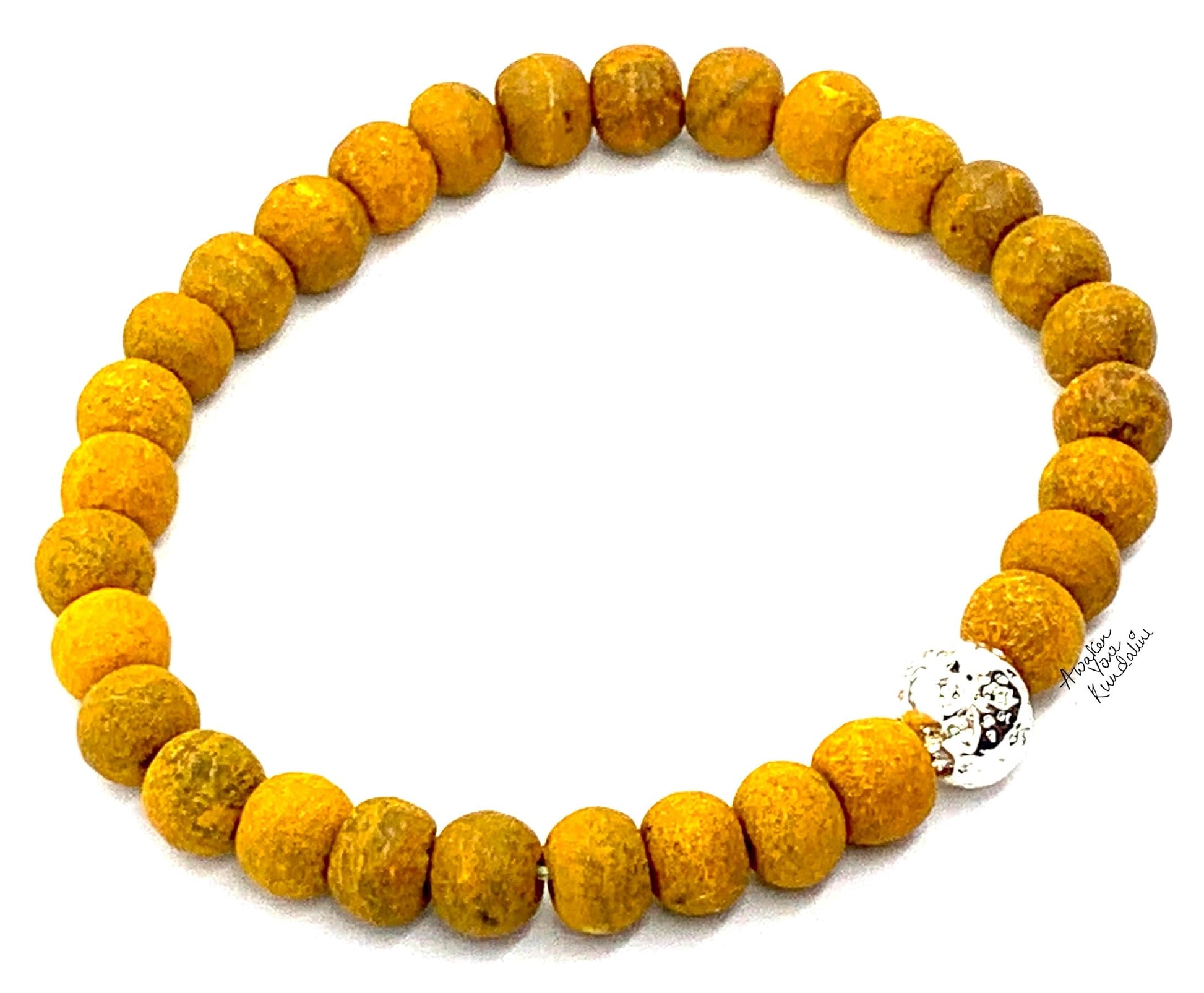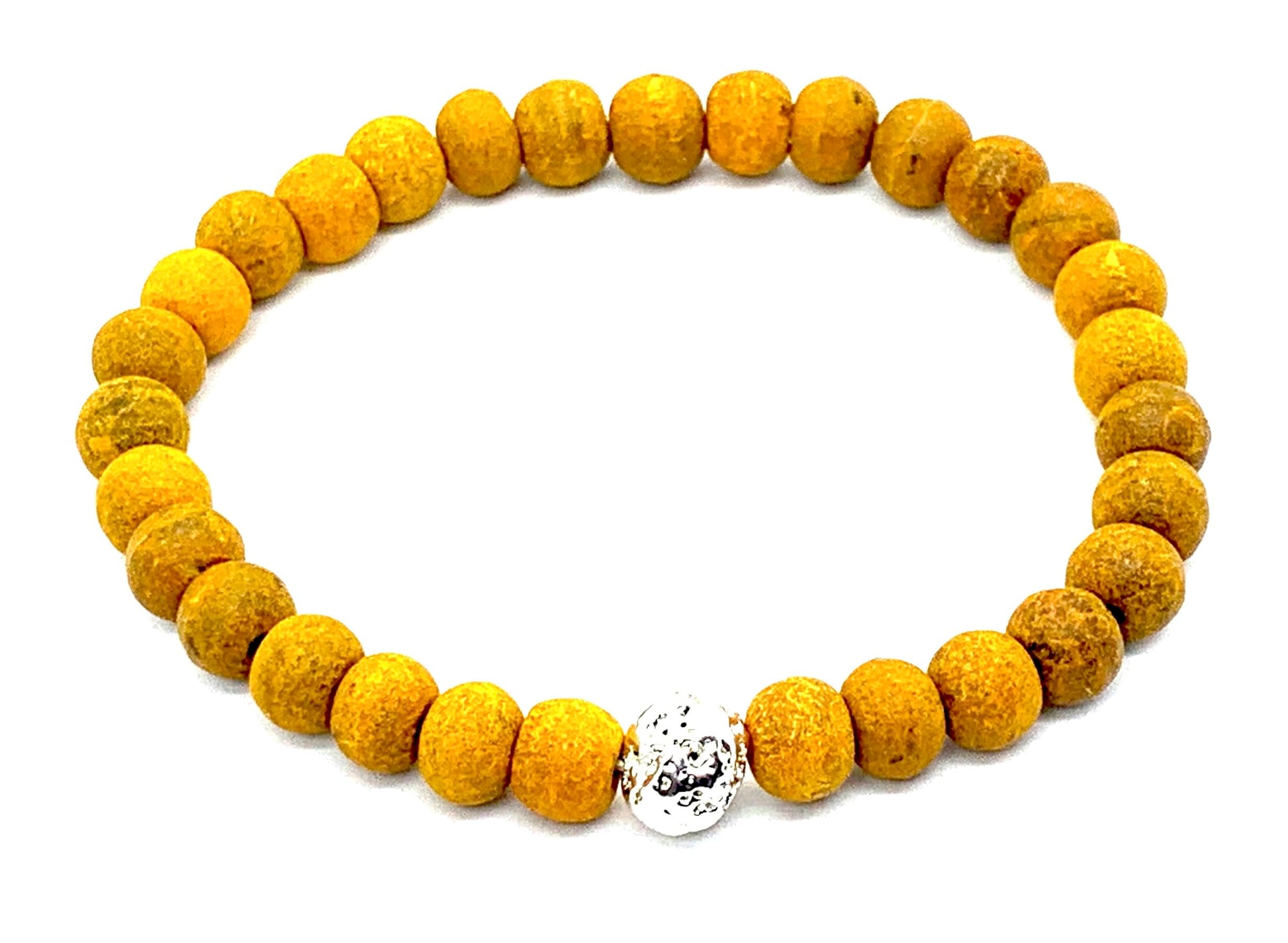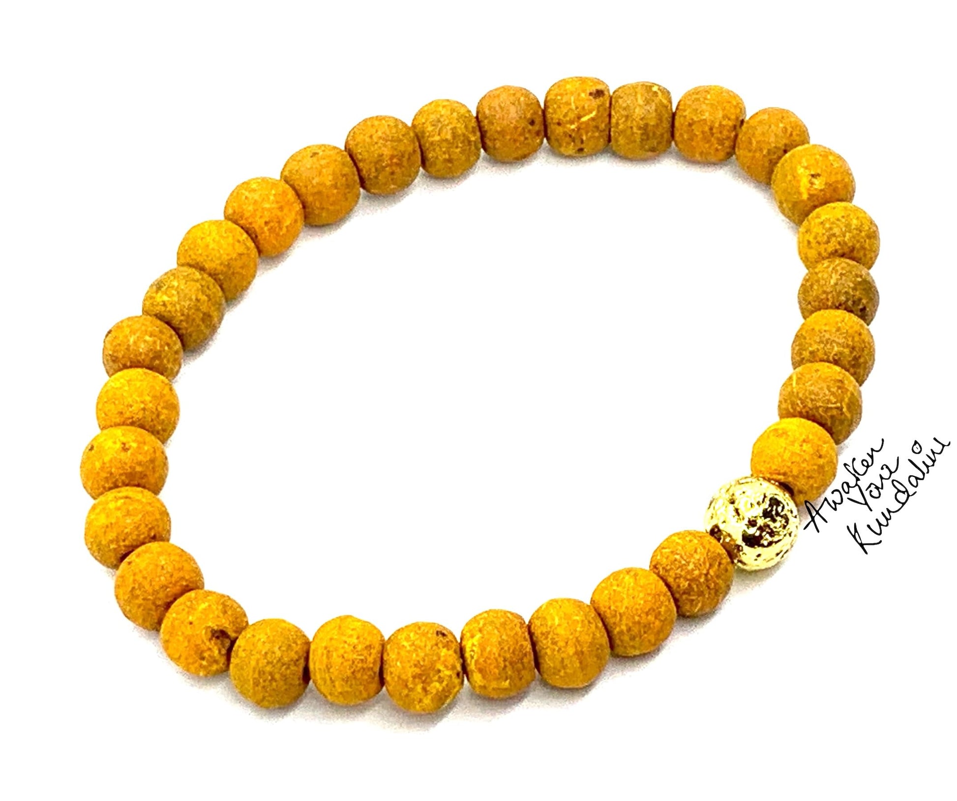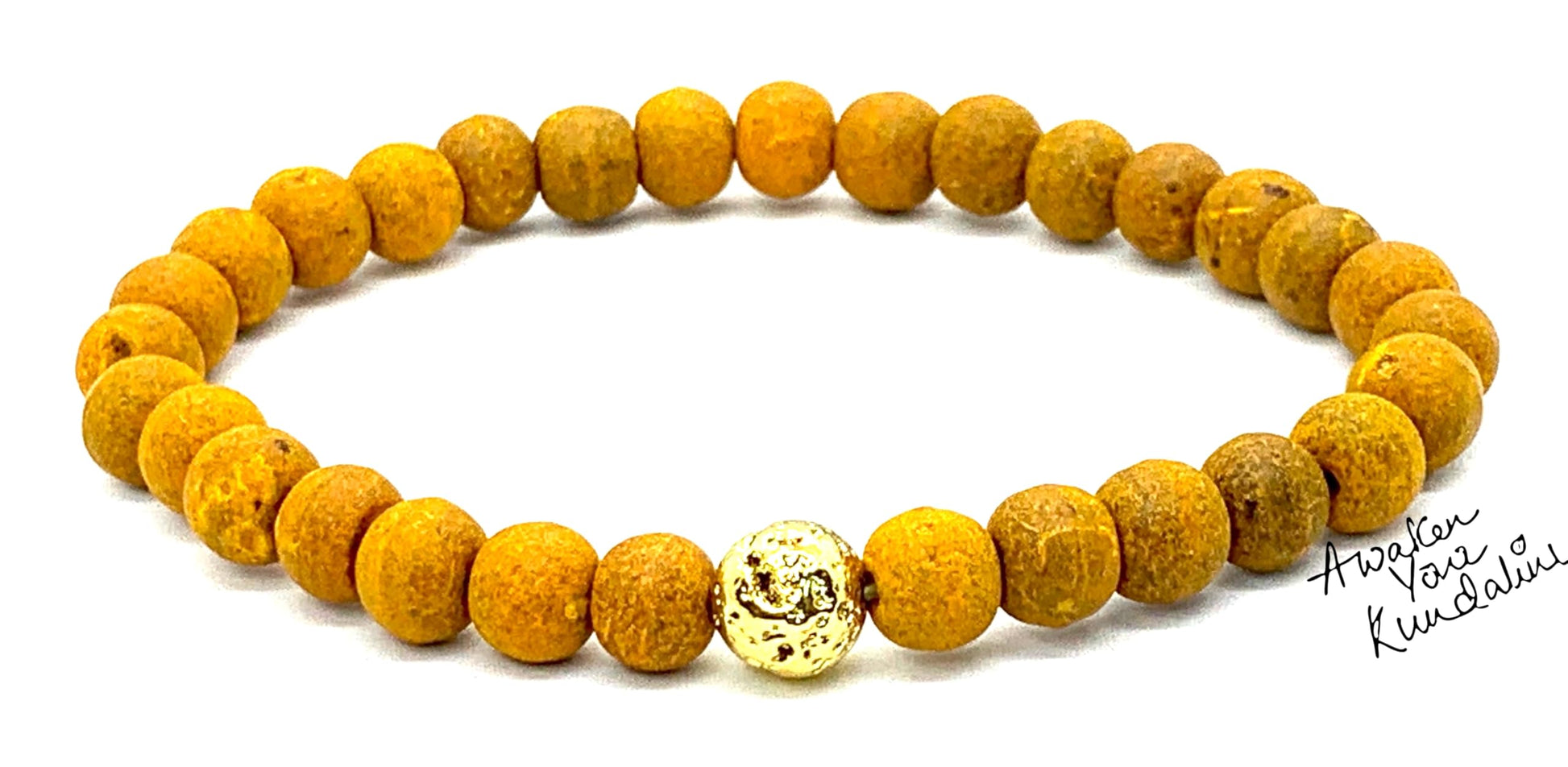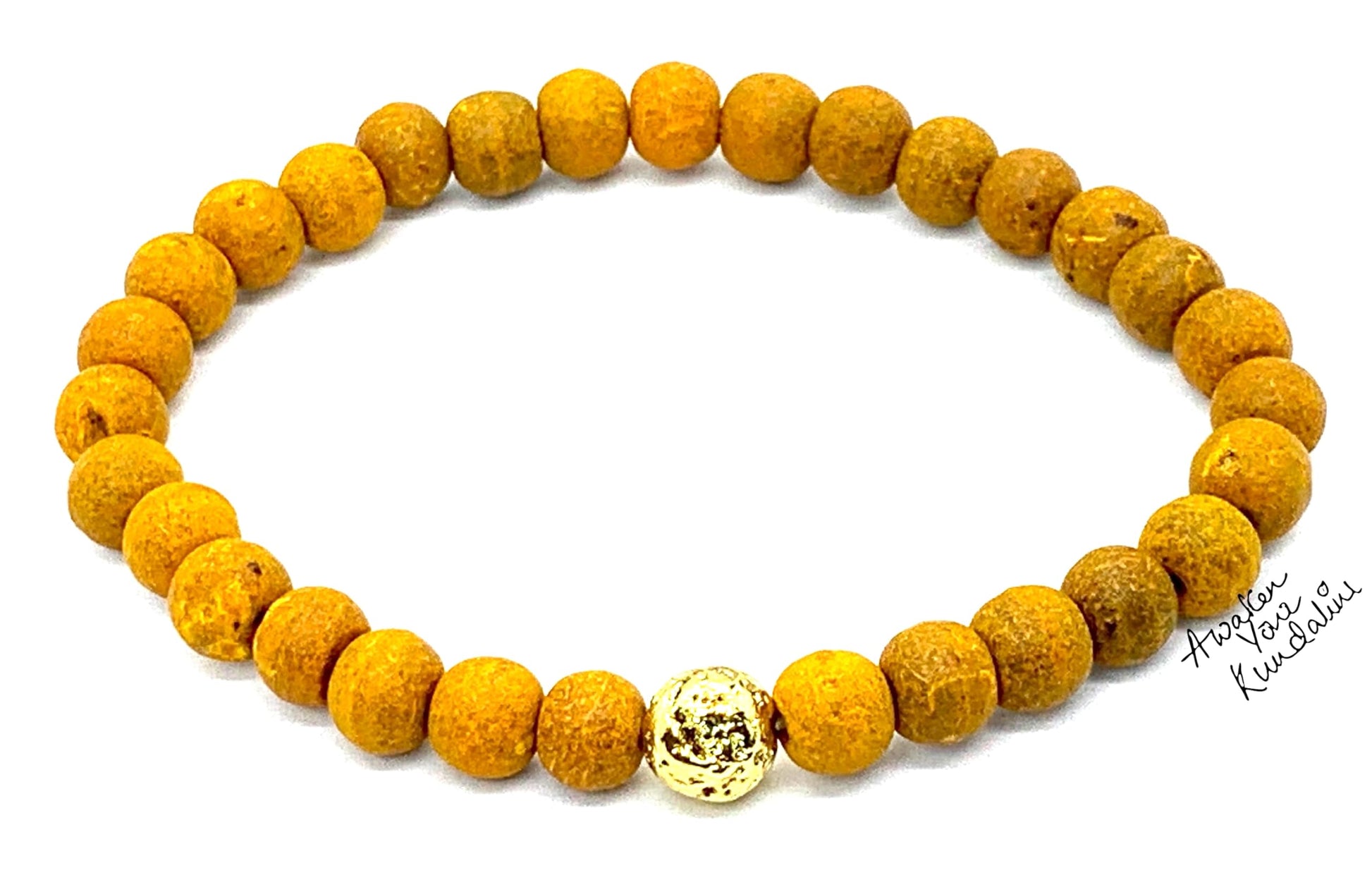 - Elevate your spiritual practice and style with our Handmade Haldi (Turmeric) Stretch Bracelet, a unique and vibrant piece designed for mindfulness, personal adornment, and spiritual connection. Made with 8mm Haldi beads, this bracelet is available in three stunning styles: Plain, Silver Finish Lava Bead, and Golden Finish Lava Bead. Available in wrist sizes 6 to 9 inches, this bracelet is a perfect blend of natural beauty and spiritual significance. Whether you're meditating, setting intentions, or simply accessorizing, this bracelet will inspire you to stay grounded and connected to your inner self.