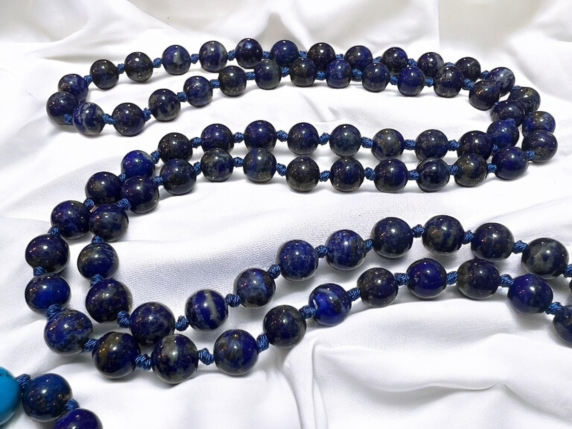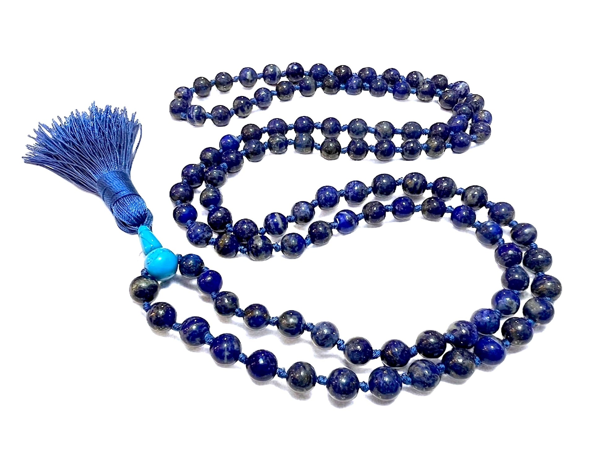 - Why Choose Our Lapis Lazuli Mala Beads Necklace? Authentic Gemstones: Made from genuine Lapis Lazuli, each bead showcases the stone's natural beauty and unique characteristics. Handcrafted Quality: Each mala is hand-knotted with care and attention to detail, ensuring a unique and high-quality piece. Healing Benefits: Lapis Lazuli is renowned for its spiritual and healing properties, making this necklace a powerful tool for personal growth.