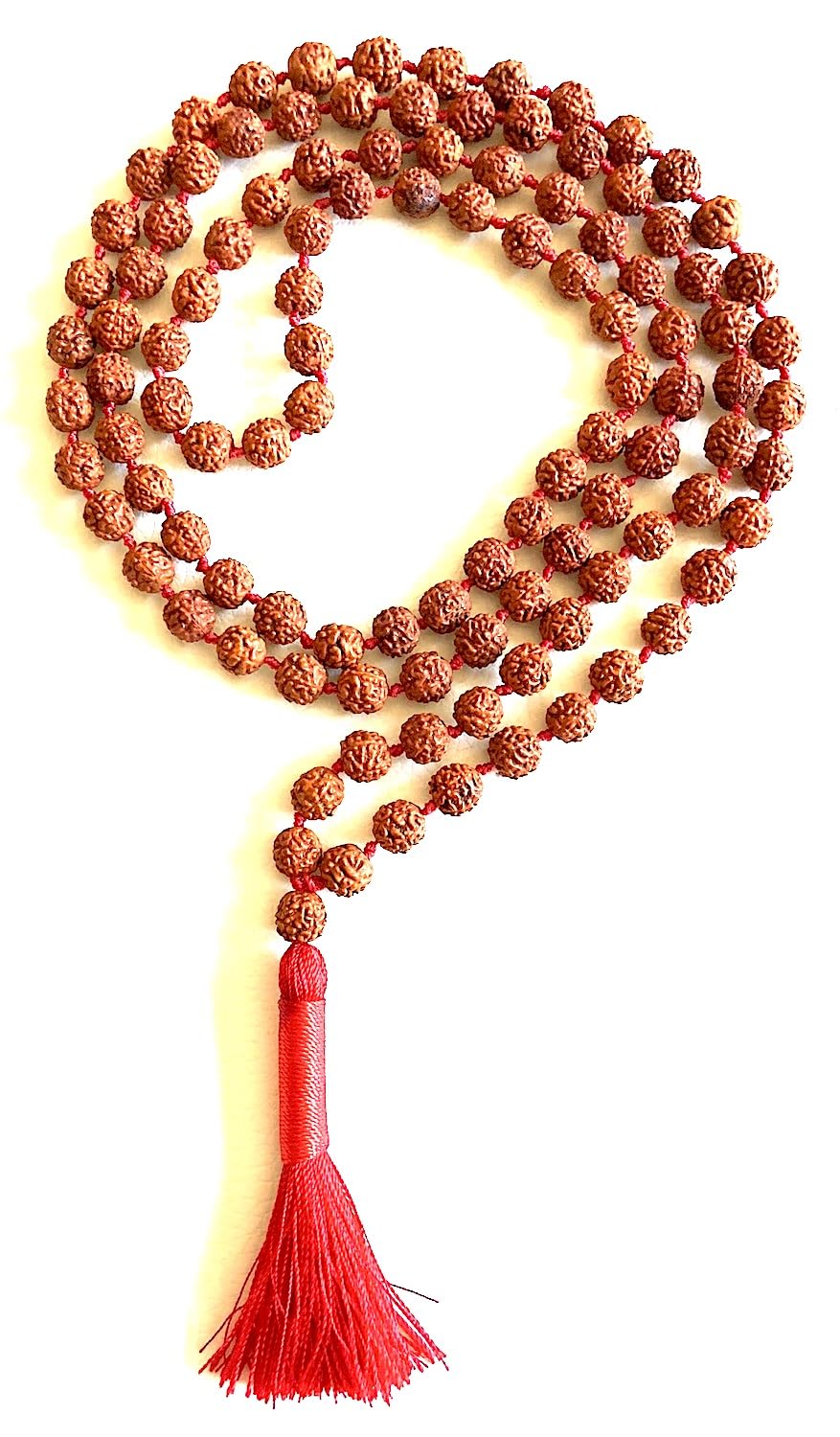 - Product Specifications: Material: Genuine 5 Mukhi Rudraksha Beads (8mm). Necklace Length: Varies depending on number of beads. Style: Mala Necklace (108 beads traditionally).
