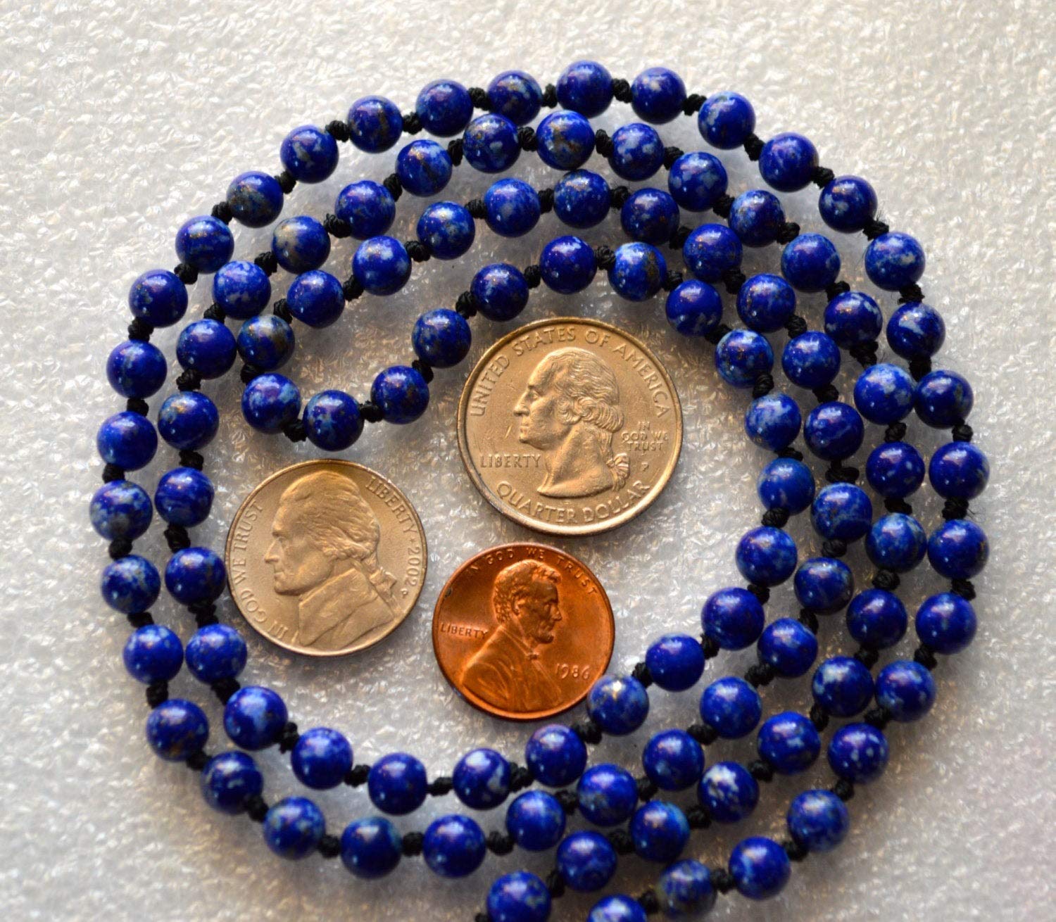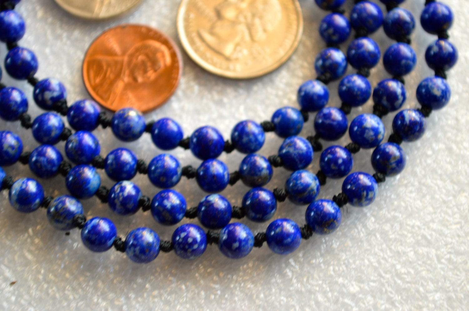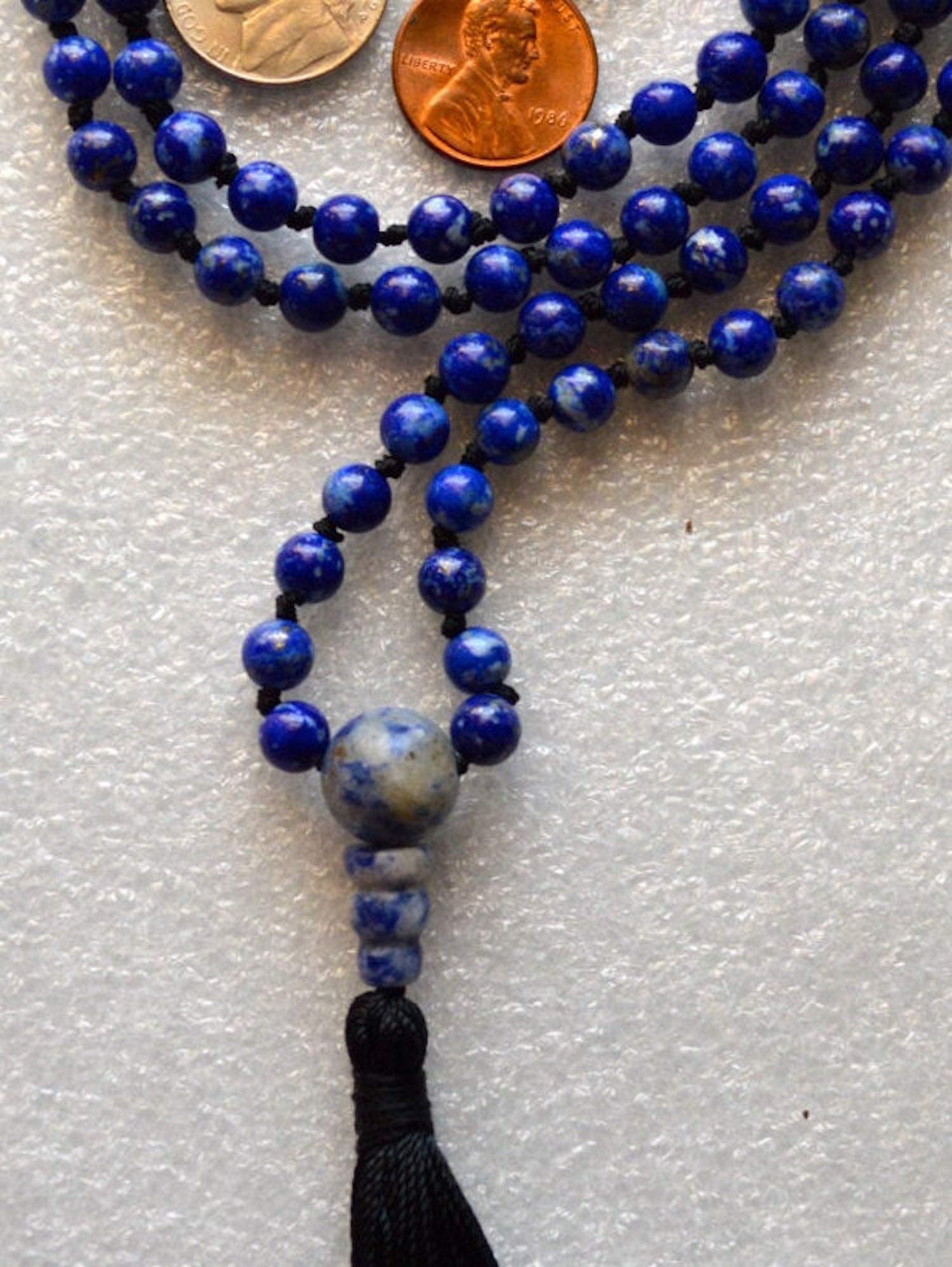 - Why Choose Our Lapis Lazuli Mala Beads Necklace? Authentic Gemstones: Made from genuine Lapis Lazuli, each bead showcases the stone's natural beauty and unique characteristics. Handcrafted Quality: Each mala is hand-knotted with care and attention to detail, ensuring a unique and high-quality piece. Healing Benefits: Lapis Lazuli is renowned for its spiritual and healing properties, making this necklace a powerful tool for personal growth.