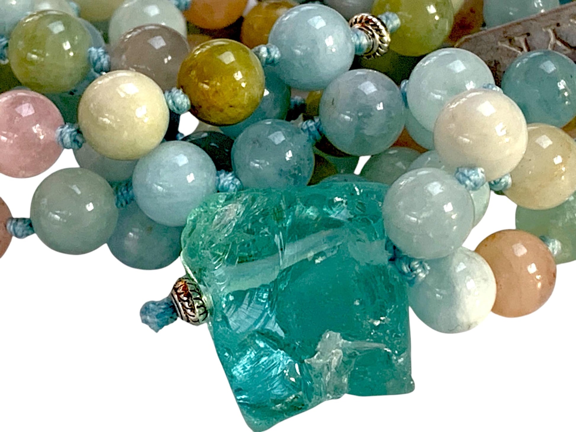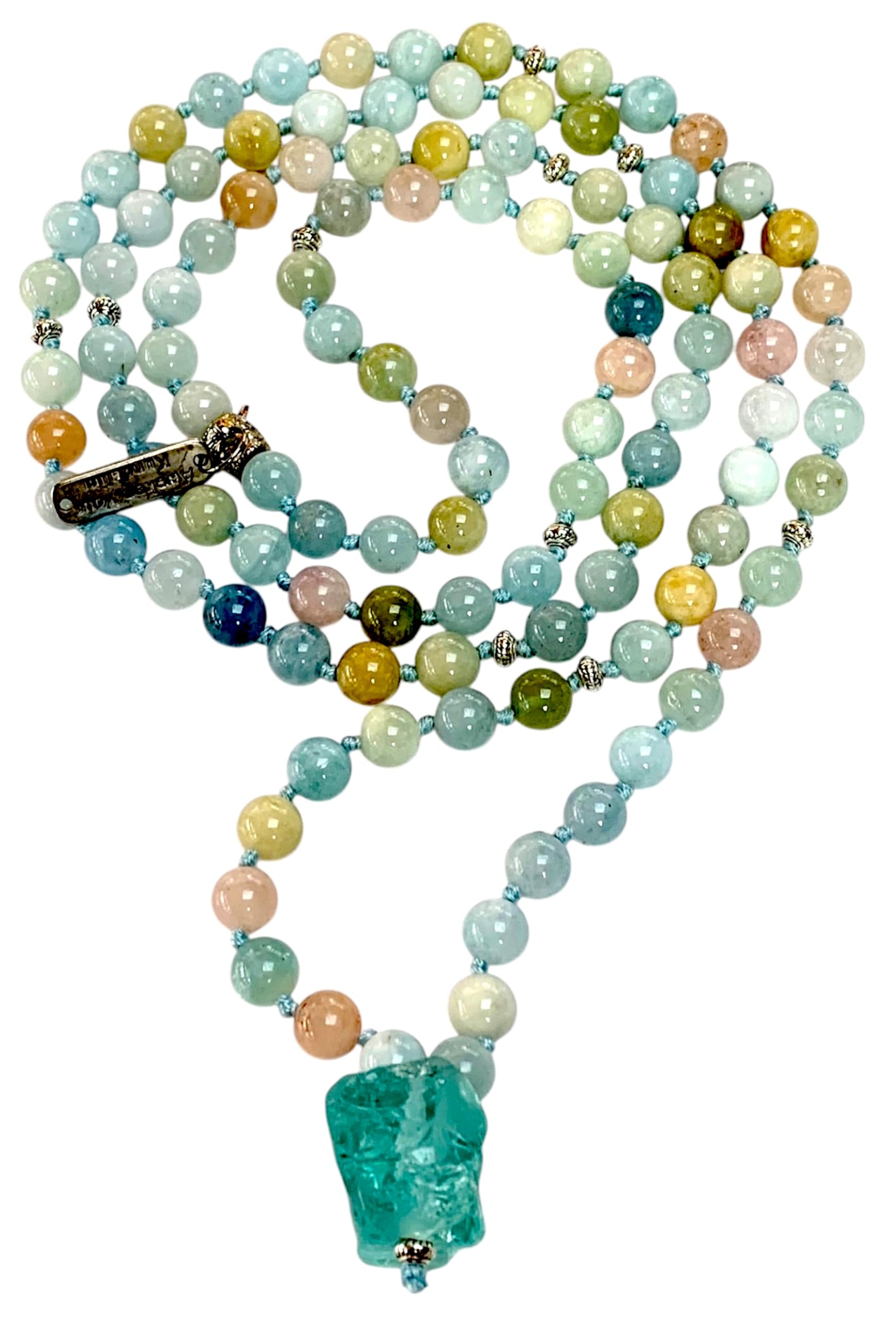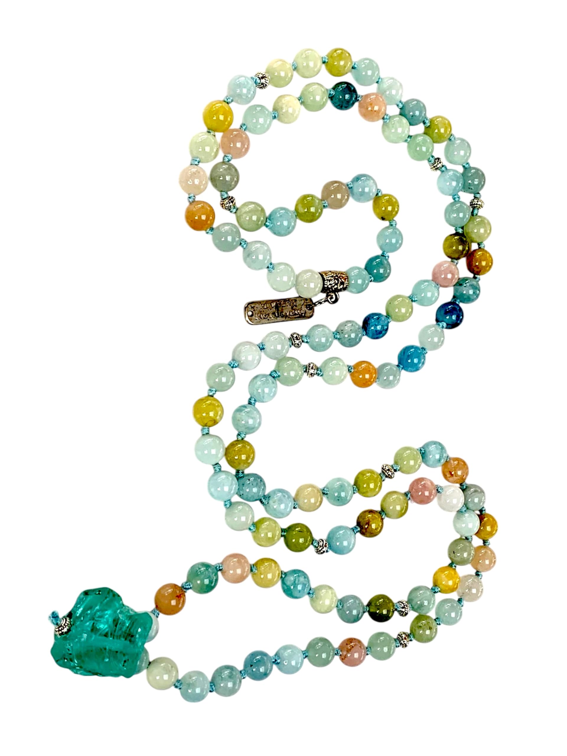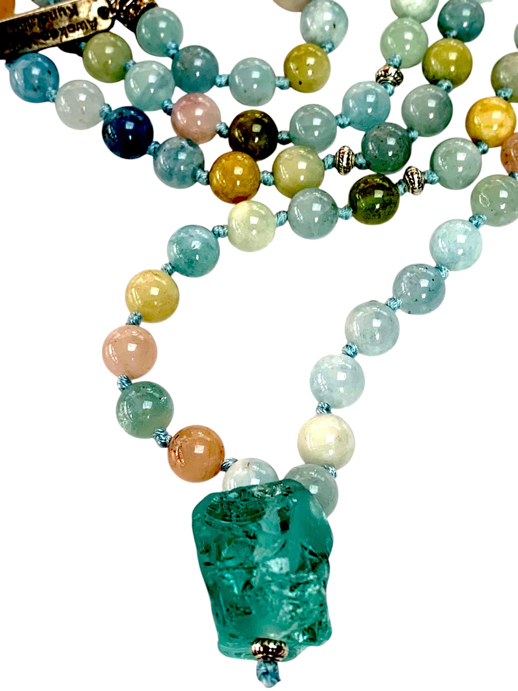 - Why This Mala Resonates: ✔ Dual Chakra Harmony – Aligns Throat (communication) and Heart (compassion) chakras. ✔ March & October Birthstone – A unique alternative to aquamarine or opal. ✔ Natural Variegation – Each bead showcases dreamy swirls of seafoam, teal, and white. ✔ Substantial 8mm Beads – Smooth texture perfect for finger meditation. ✔ Hand-Knotted Intention – Silk-strung with secure knots between each bead.