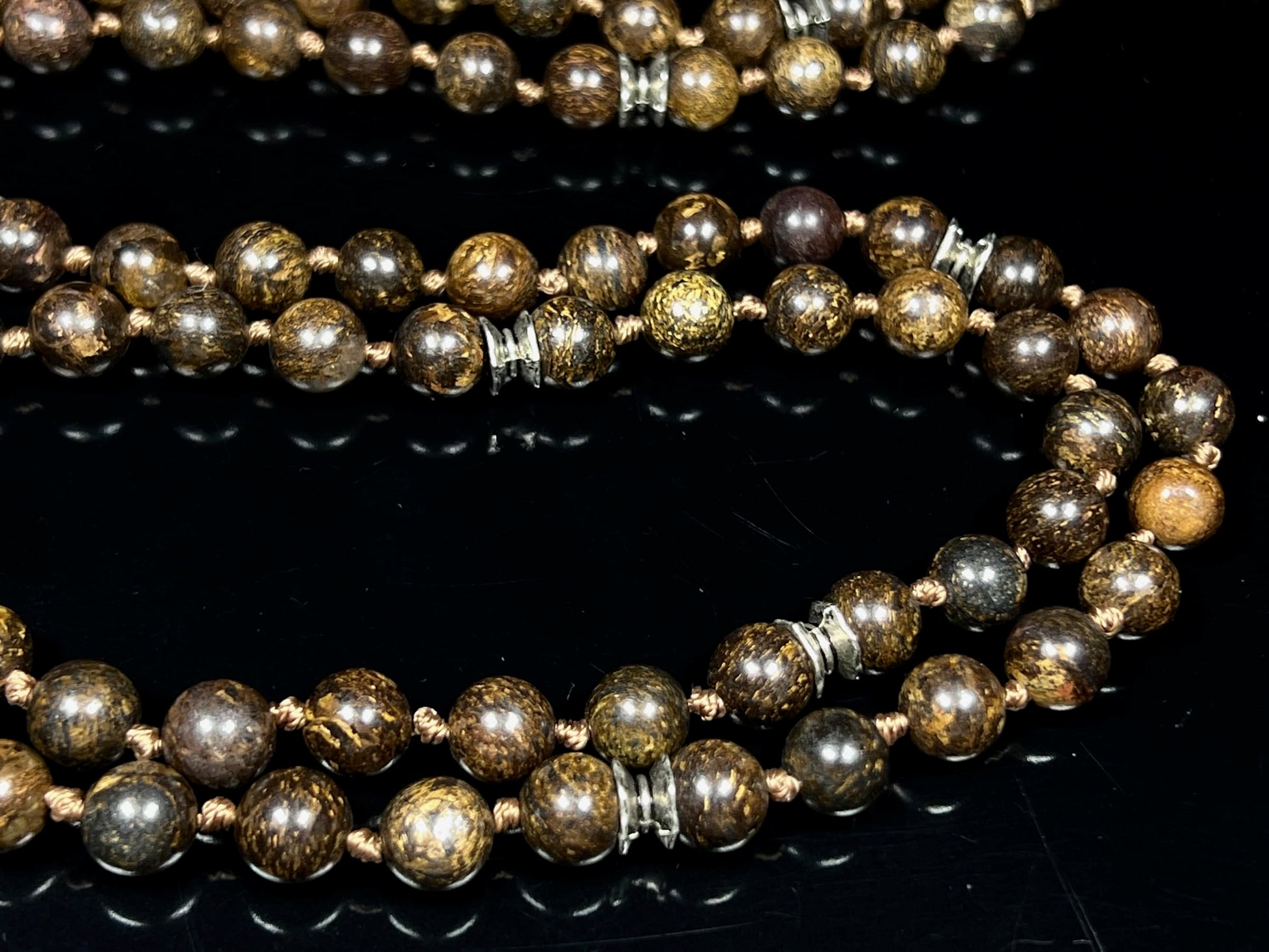 - Handcrafted with Care Each mala necklace is meticulously hand-knotted, a practice steeped in tradition. This thoughtful creation features genuine Bronzite gemstones and sleek zinc alloy spacers strung on a durable cord for comfortable wear during meditation or everyday use.