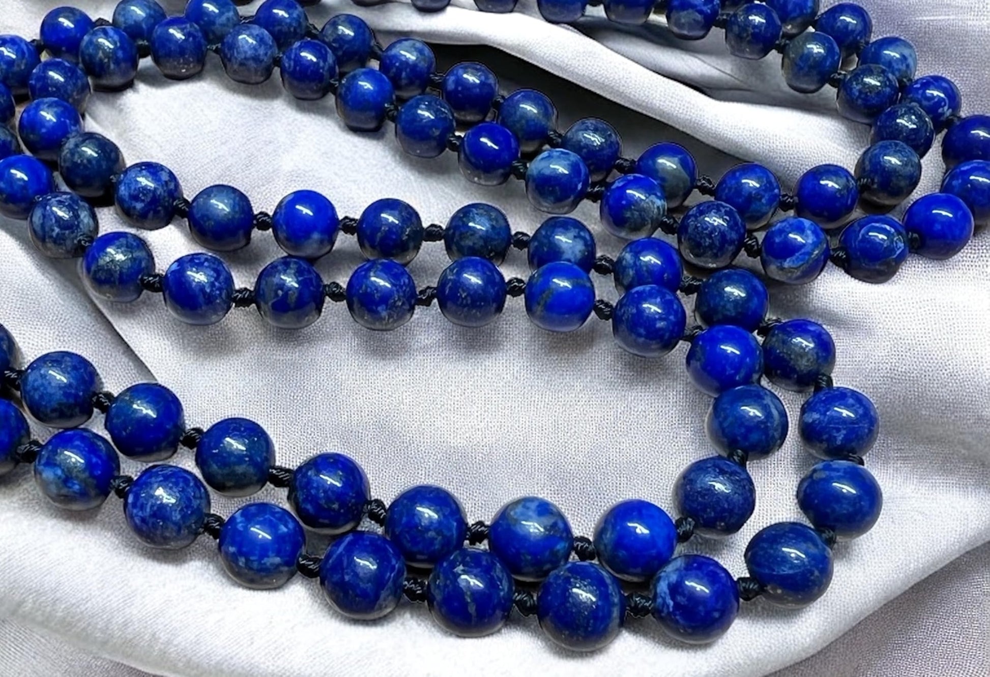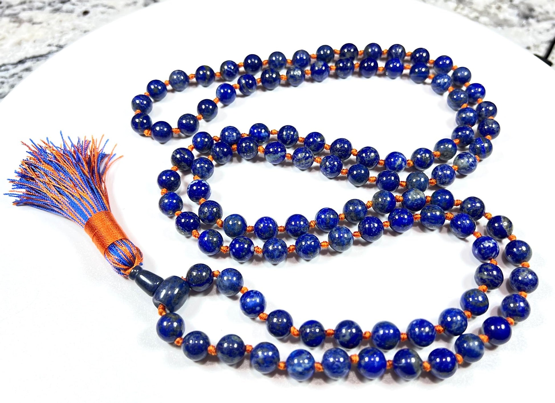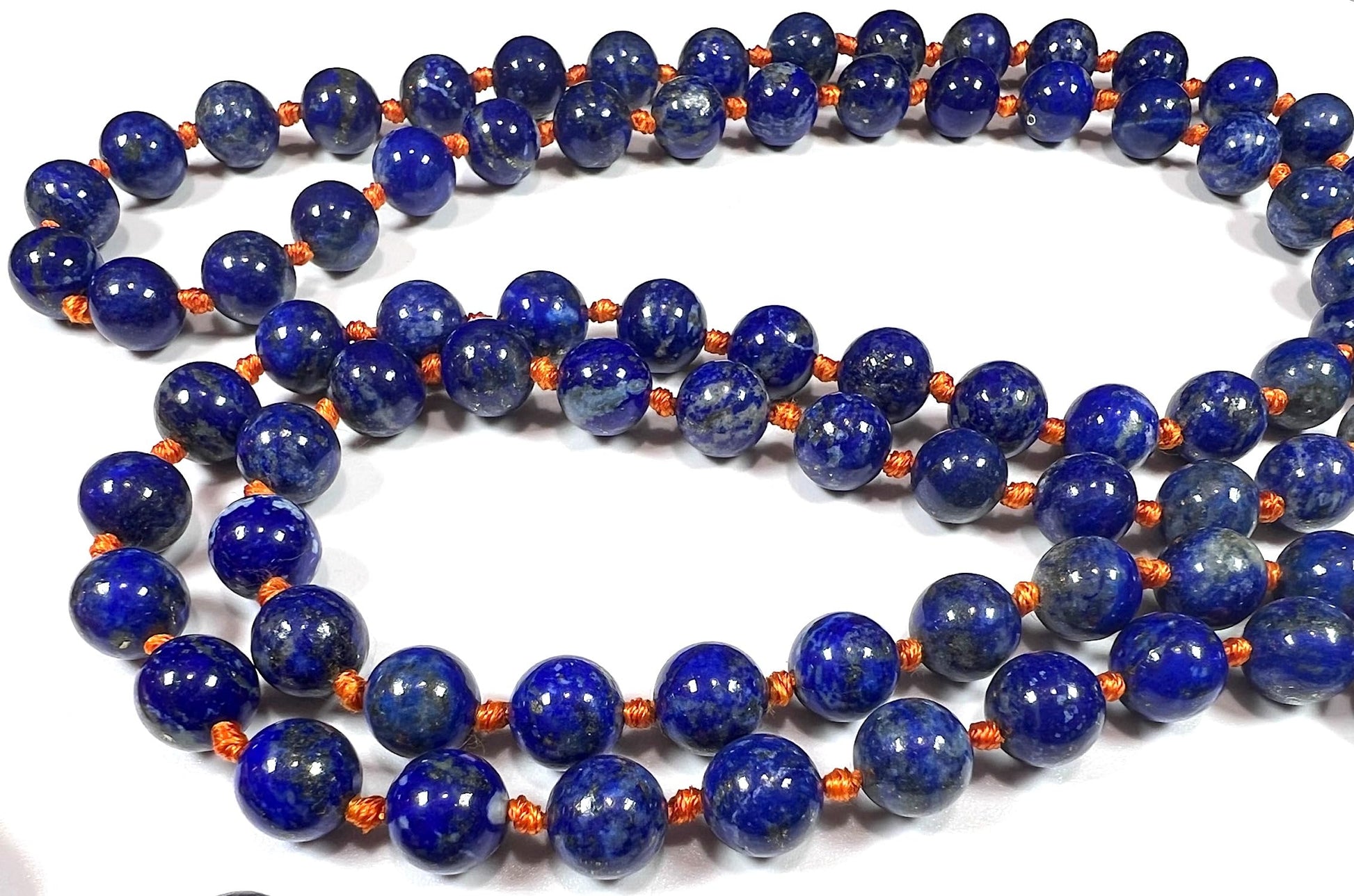Hand-Knotted Lapis Lazuli Mala Beads Necklace – Sagittarius Birthstone for November & December - Third Eye Chakra