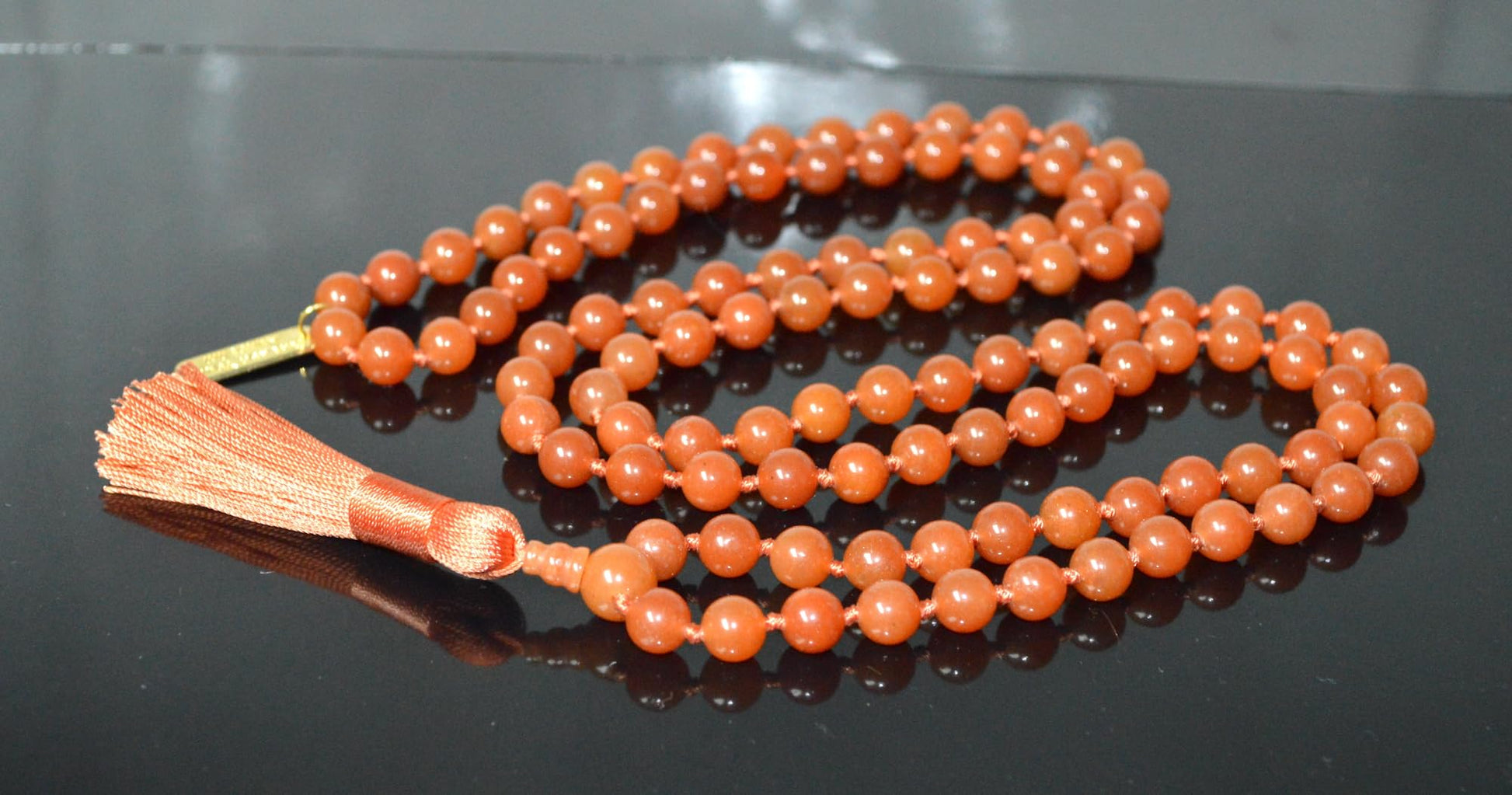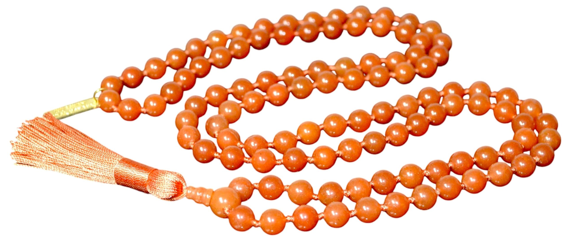 - Orange Jade is revered for its vibrant hue and its symbolic significance as a birthstone for Virgo and Libra. It is closely connected to the Sacral Chakra, often associated with creativity, emotional clarity, and inner peace. This mala necklace can be used in meditation practices or prayer to bring a sense of tranquility and calm into your daily life. The 108 bead count reflects traditional mala designs, often used for mantras and spiritual recitation, providing a centering focal point during mi