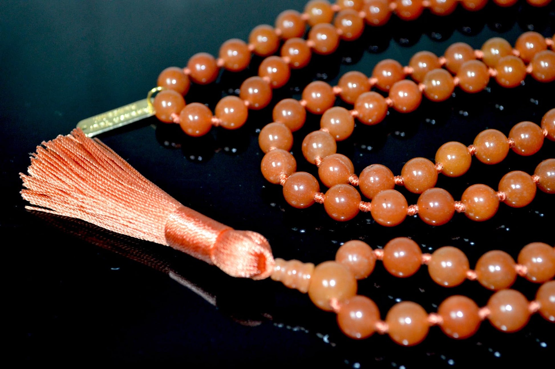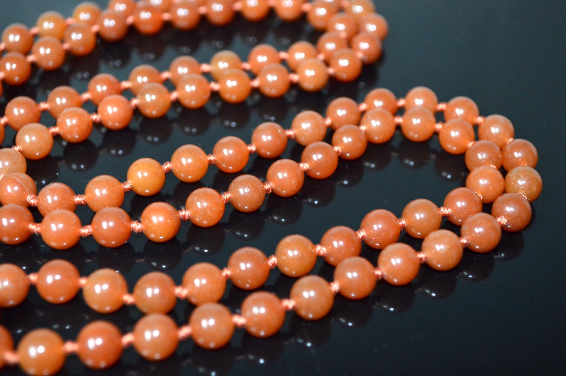 - #OrangeJadeMala #VirgoBirthstone #LibraBirthstone #SacralChakraJewelry #108BeadsNecklace #HandKnottedMala