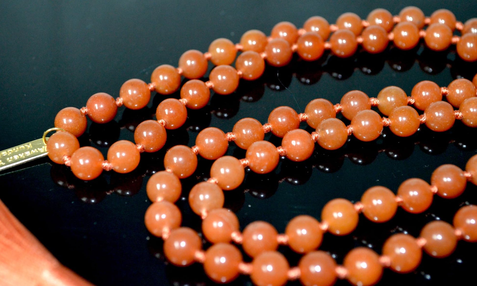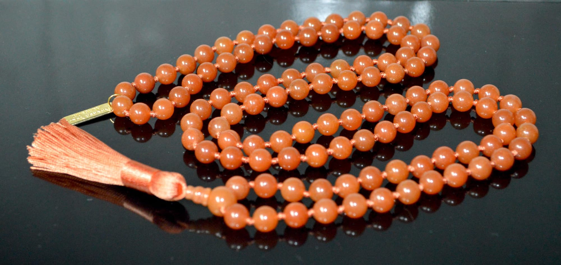 Hand-Knotted Orange Jade Beads Mala Necklace, 8mm 108 Beads – Virgo & Libra Birthstone, Sacral Chakra Necklace