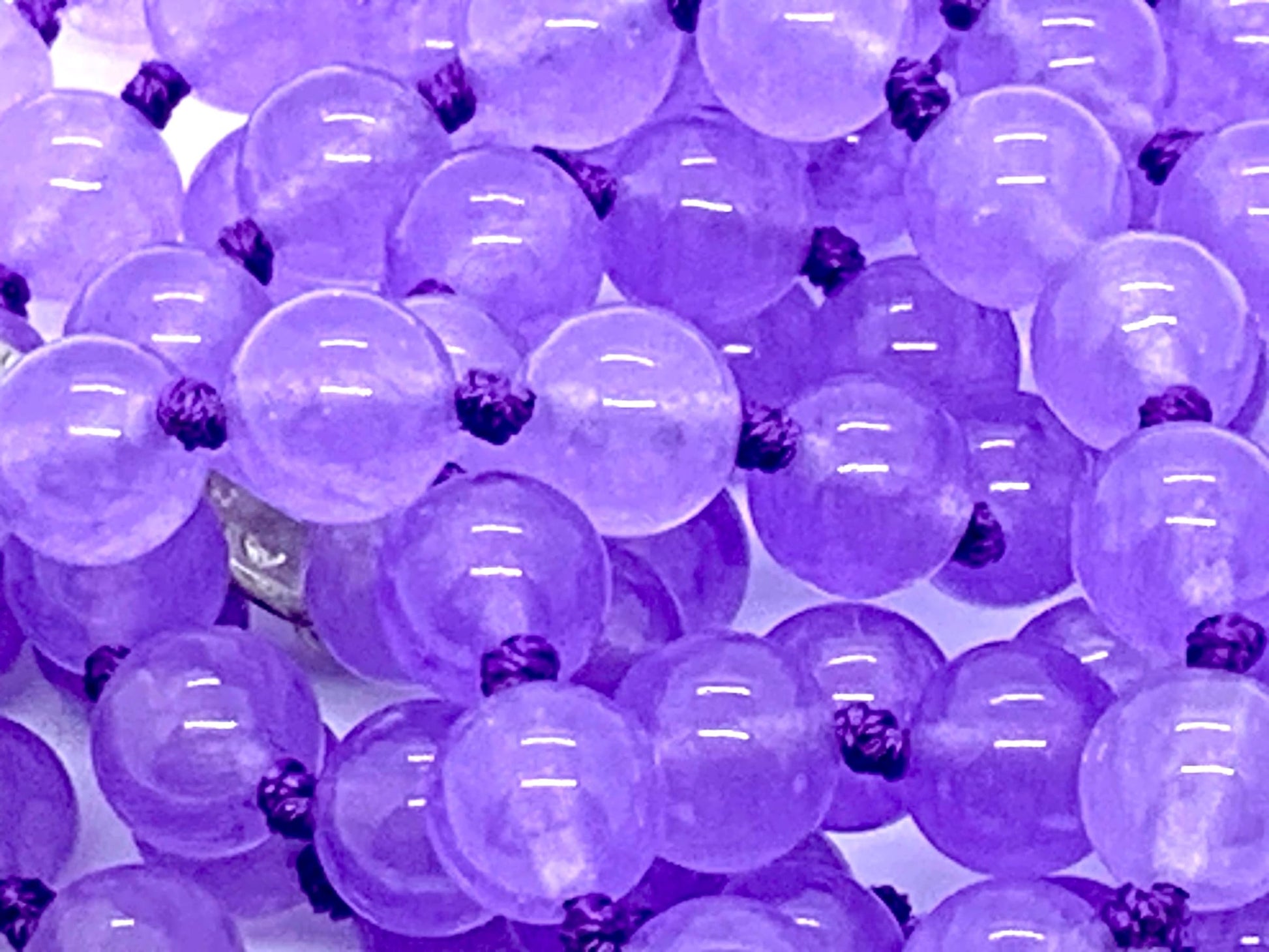 - Key Features: ✅ 108 Natural Purple Jade Beads (8mm) – Rich violet with natural variations. ✅ Nylon Thread Knotted – Ultra-strong and tangle-resistant. ✅ 38-42" Adjustable Length – Wear as necklace, meditation strand, or wristwrap. ✅ Velvet Ritual Pouch Included.