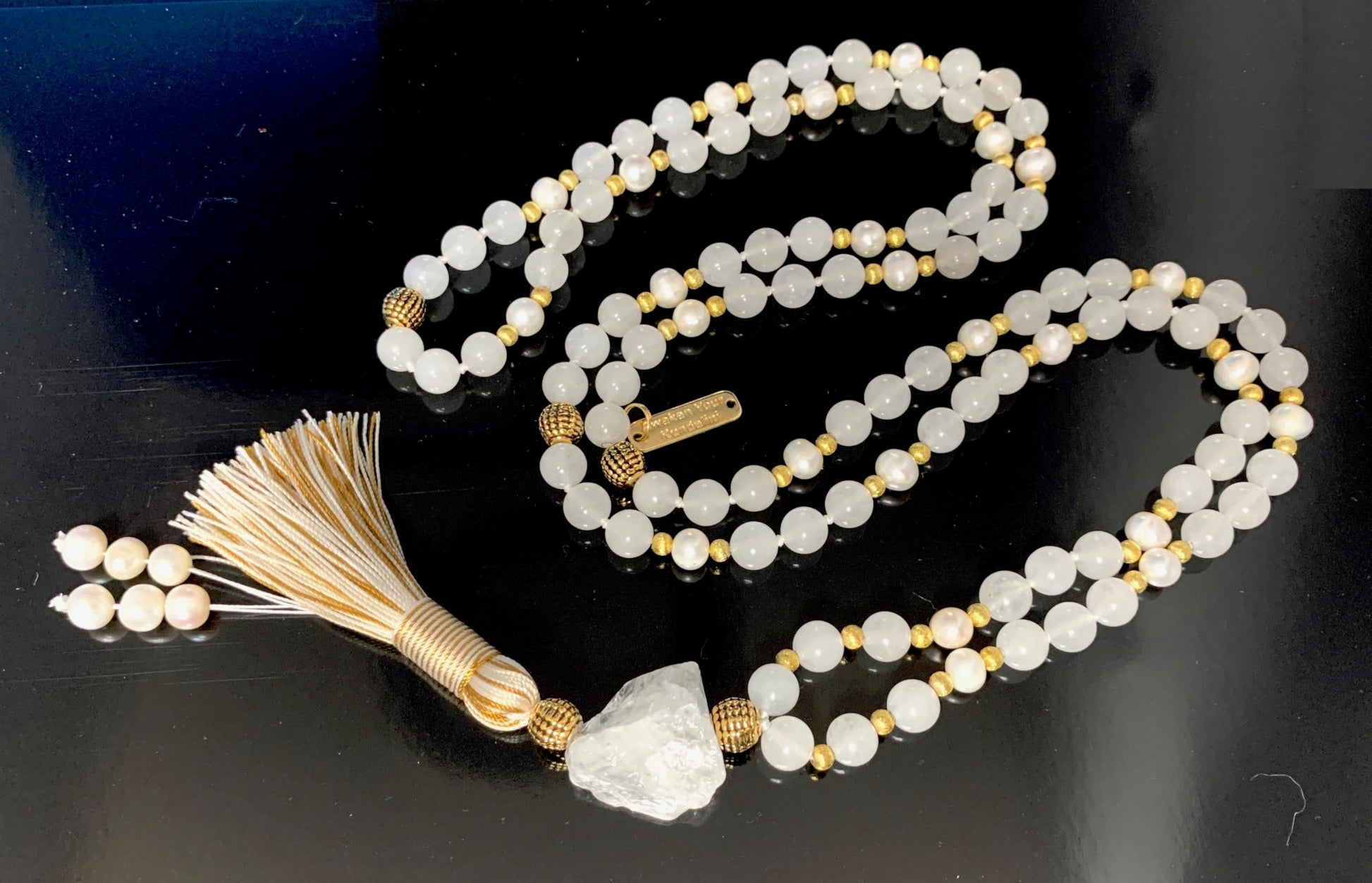 - This mala is particularly meaningful for those born under the Cancer sun sign, as both Selenite and Pearl are linked to the energies of June. The soft, nurturing energy of this necklace makes it an ideal gift for birthdays, spiritual milestones, or as a thoughtful gesture for someone seeking tranquility and insight in their life.
