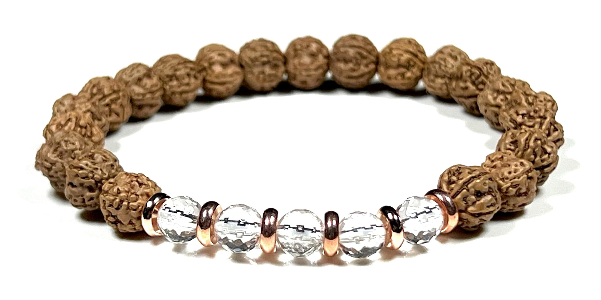 5 Mukhi Chikna Rudraksha Bracelet with Crystal Quartz | Stretch Beads for Balance & Clarity