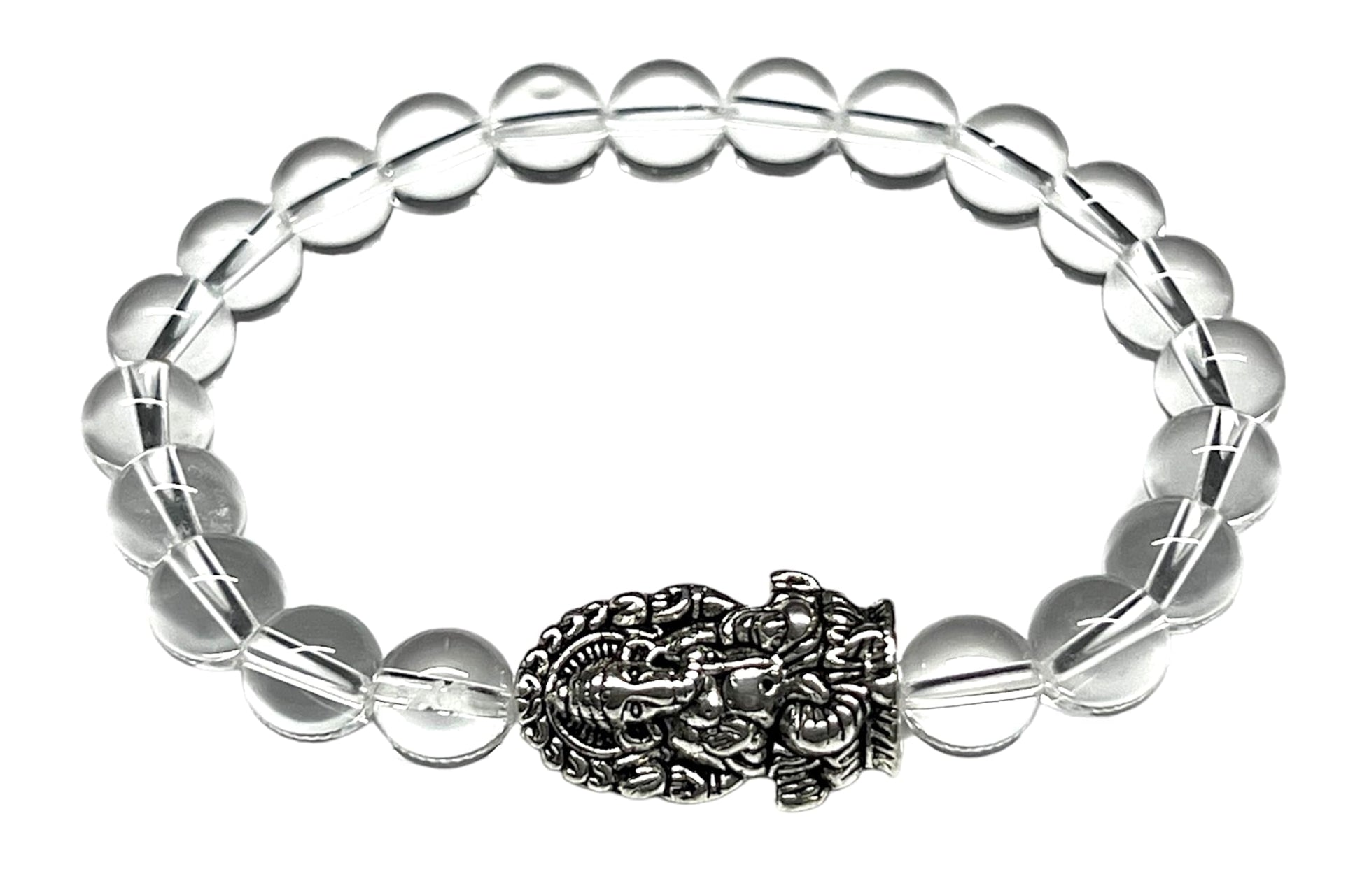- Properties & Benefits: Clear Crystal Quartz is often referred to as the "Master Stone" due to its luminous clarity and high vibrational energy. Known for its pure and unblemished structure, this stone has been cherished across cultures for its ability to represent balance and harmony. The addition of a Ganesha charm enhances the bracelet’s significance, making it not just a beautiful accessory but also a symbol of wisdom, prosperity, and guidance. Perfect for meditation, daily wear, or as a thoughtful gift for loved ones.