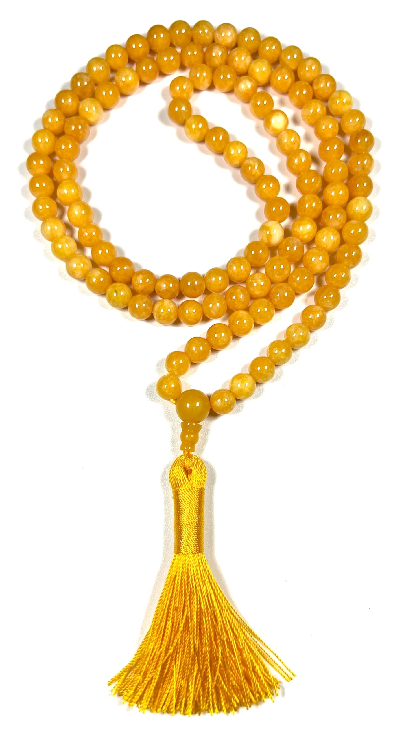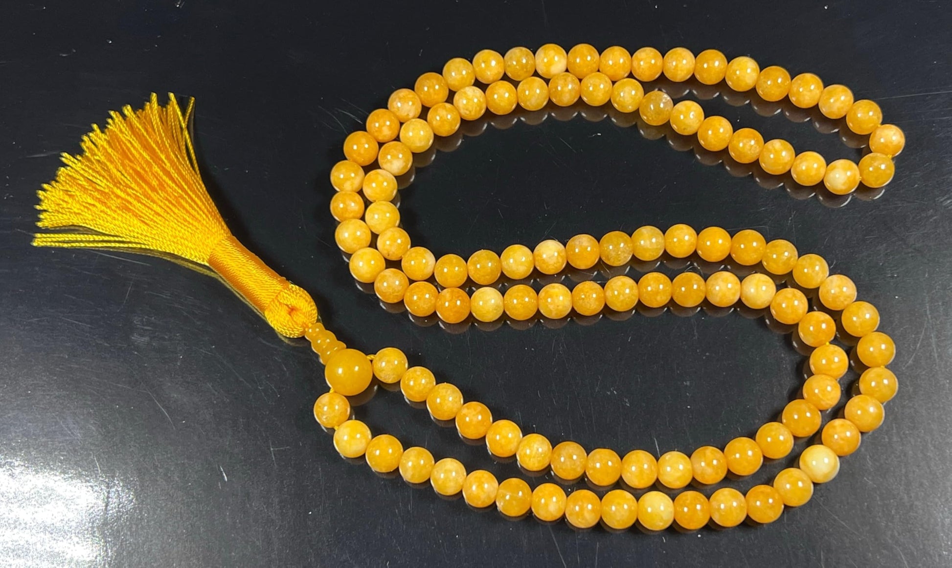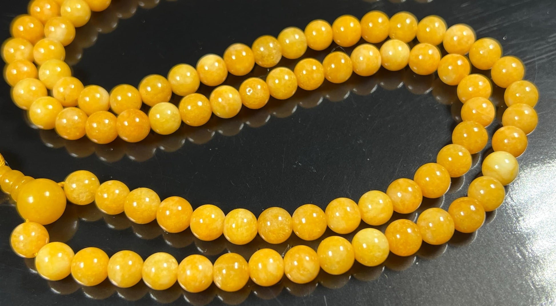 - Key Features: ✅ Handmade with 108 Yellow Calcite Beads – Each 8mm bead is carefully strung to create a durable and elegant mala necklace. ✅ Solar Plexus Chakra Alignment – Symbolizes personal strength, clarity, and confidence. ✅ Traditional & Spiritual Use – Ideal for meditation, Japa chanting, or energy work. ✅ Versatile Wear – Can be worn as a long necklace or wrapped as a bracelet. ✅ A Unique Gift – A thoughtful present for yoga lovers, spiritual seekers, and gemstone collectors.