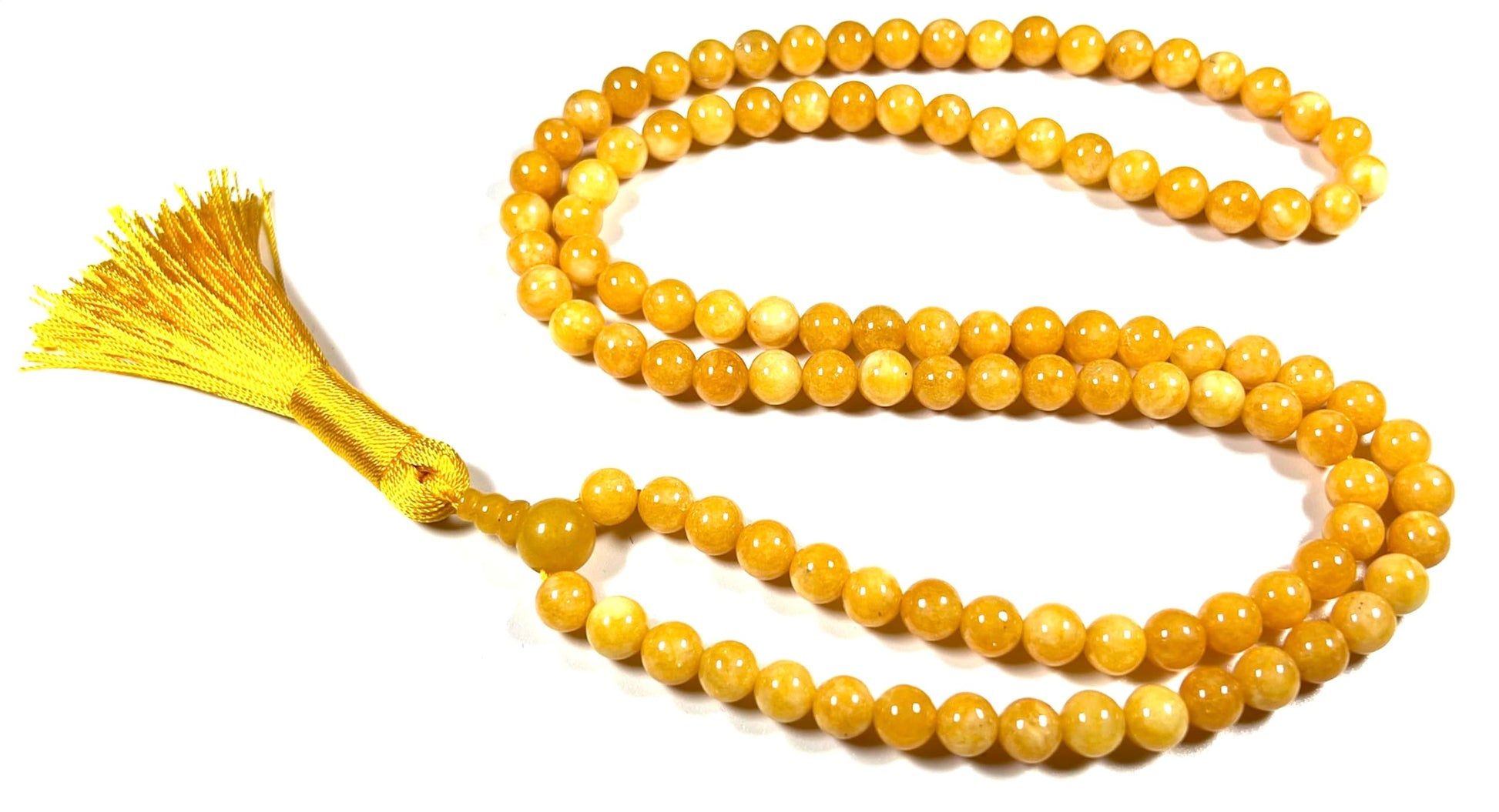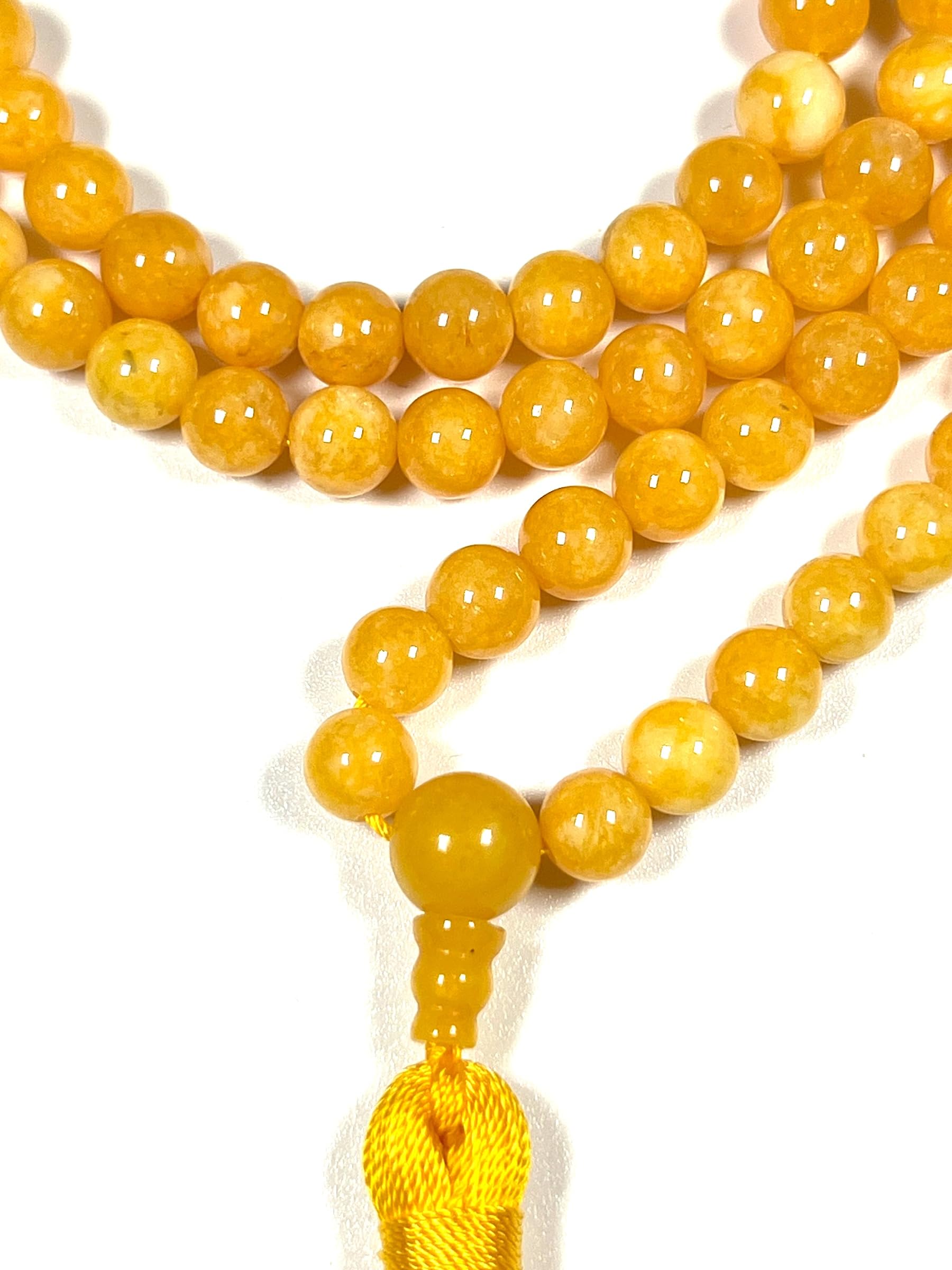 Handmade 8mm Yellow Calcite Mala Beads Necklace – 108 Beads – Leo Birthstone – Solar Plexus Chakra