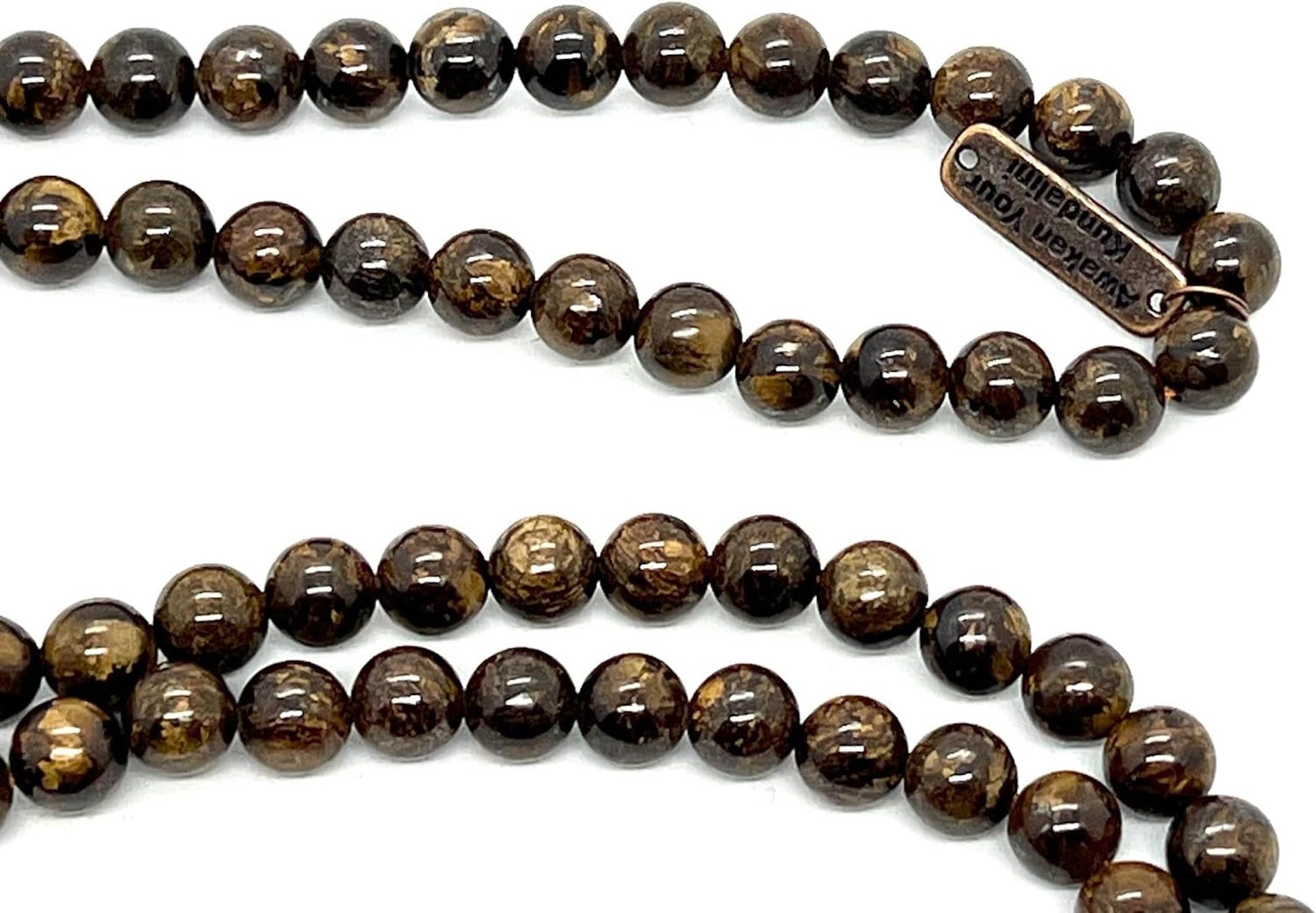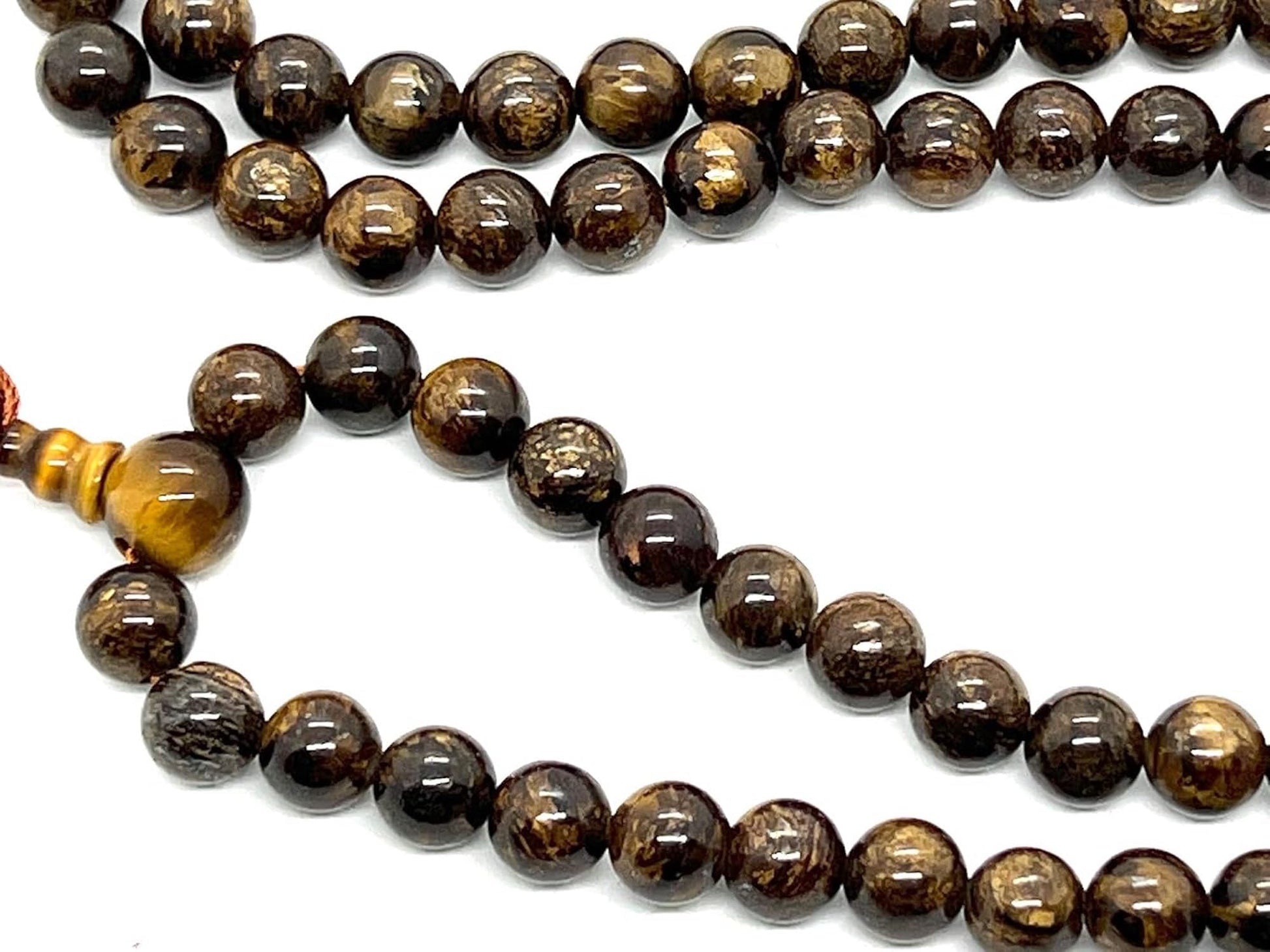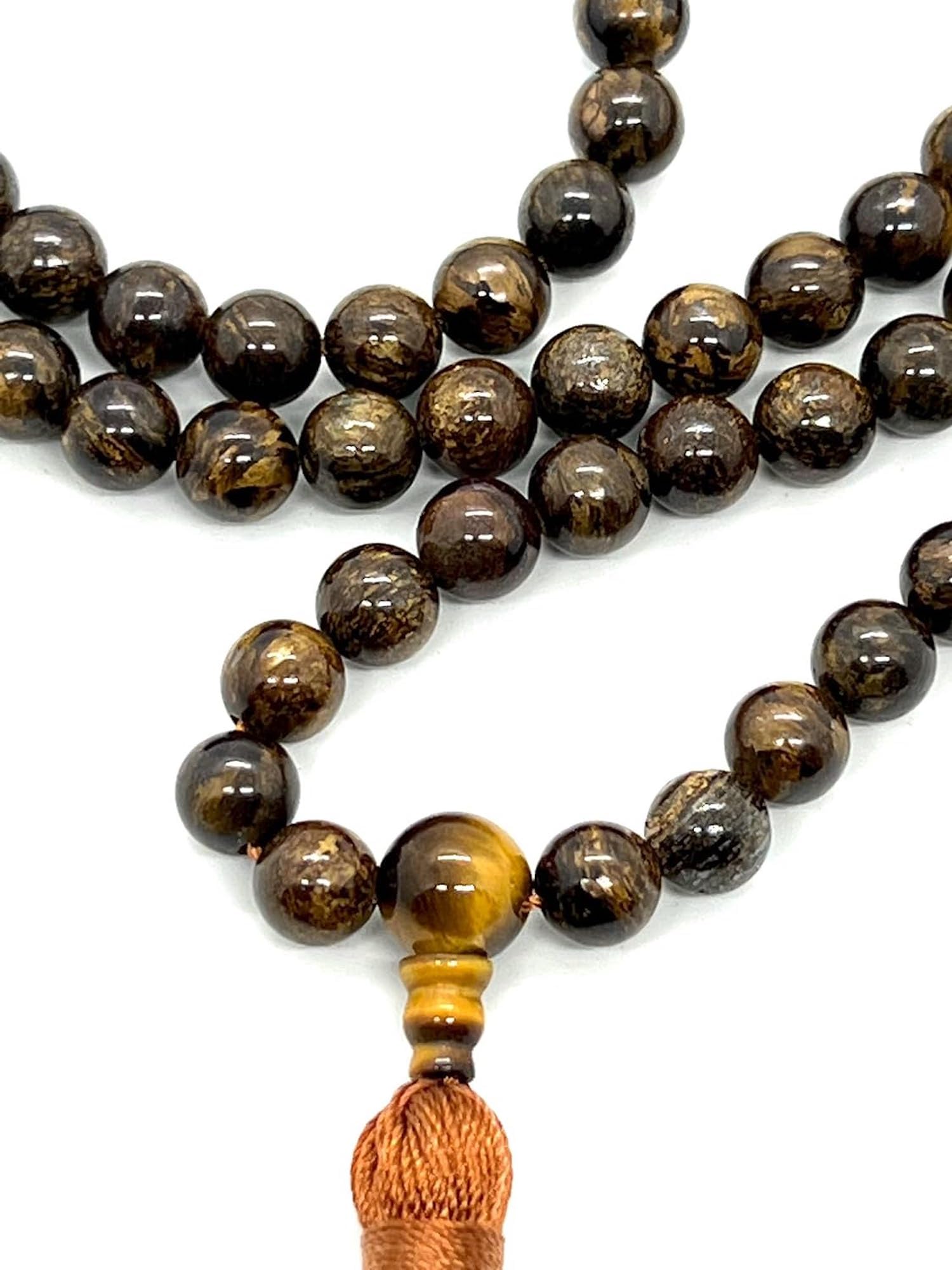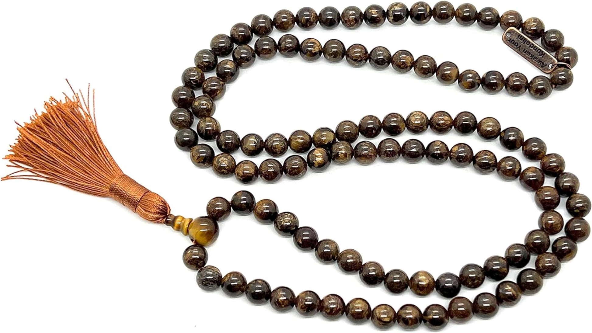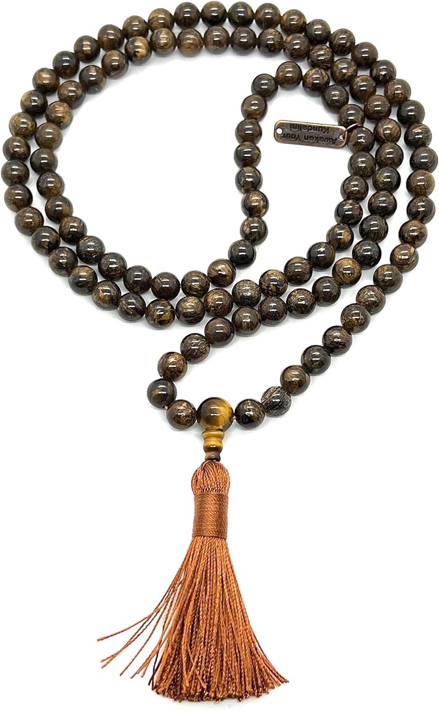 - Harness the Grounding Power of Bronzite with our handcrafted Bronzite Mala Necklace. Featuring 108 beautifully handmade 8mm Bronzite beads, this mala is designed for meditation, spiritual practices, and everyday wear. Bronzite is known for its grounding and protective properties, making this mala a perfect companion for those seeking balance and stability.