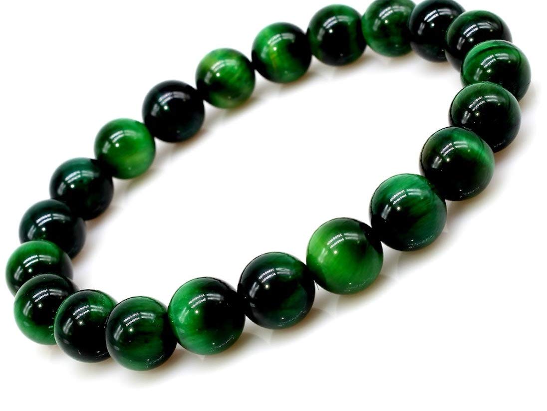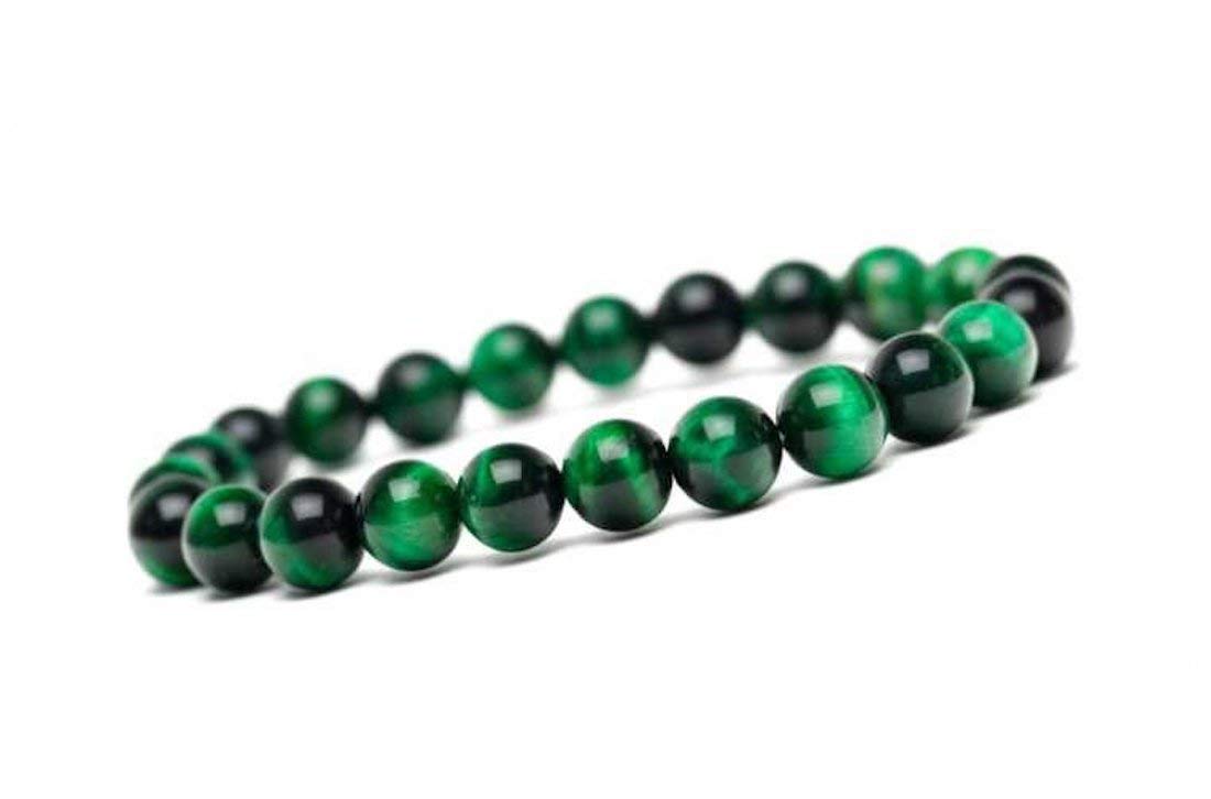 Handmade Gem Awake Your Kundalini || Semi Precious Gemstone || Round Beads Stretch Bracelet || 7" Unisex Bracelet (Green Tiger Eye)