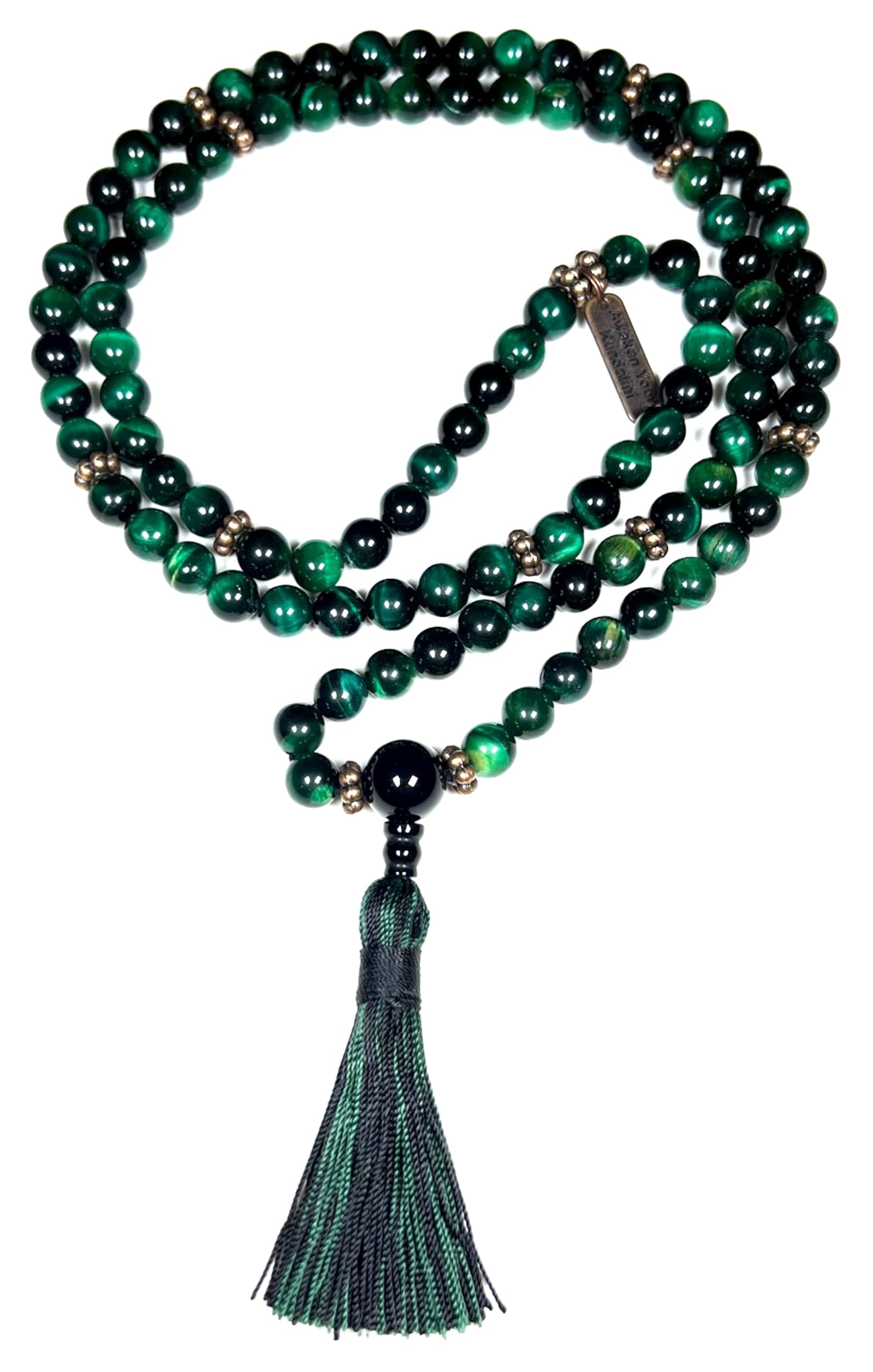 - #GreenTigersEyeMala #HeartChakraHealing #TaurusBirthstone #MeditationBeads #SpiritualJewelry #HandmadeMala #YogaAccessories #MindfulnessTools #NaturalStoneNecklace