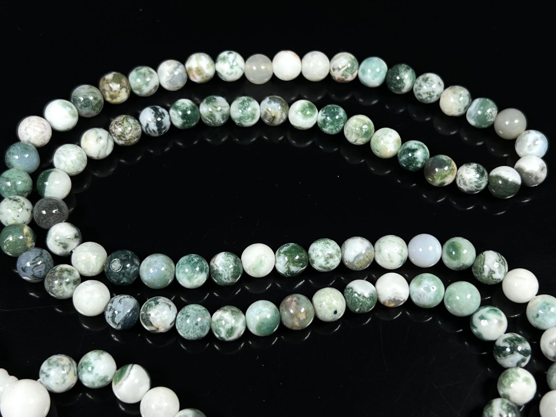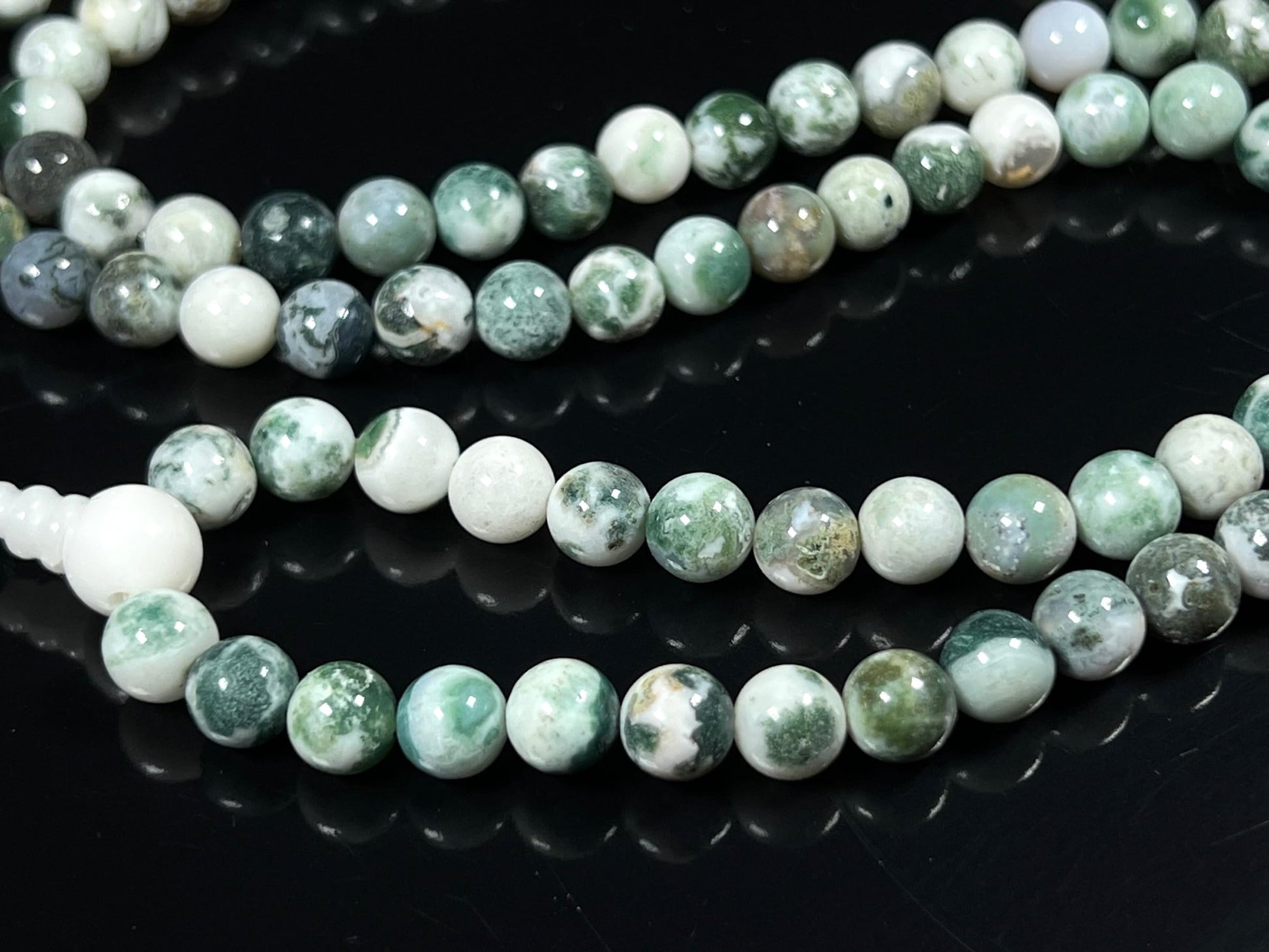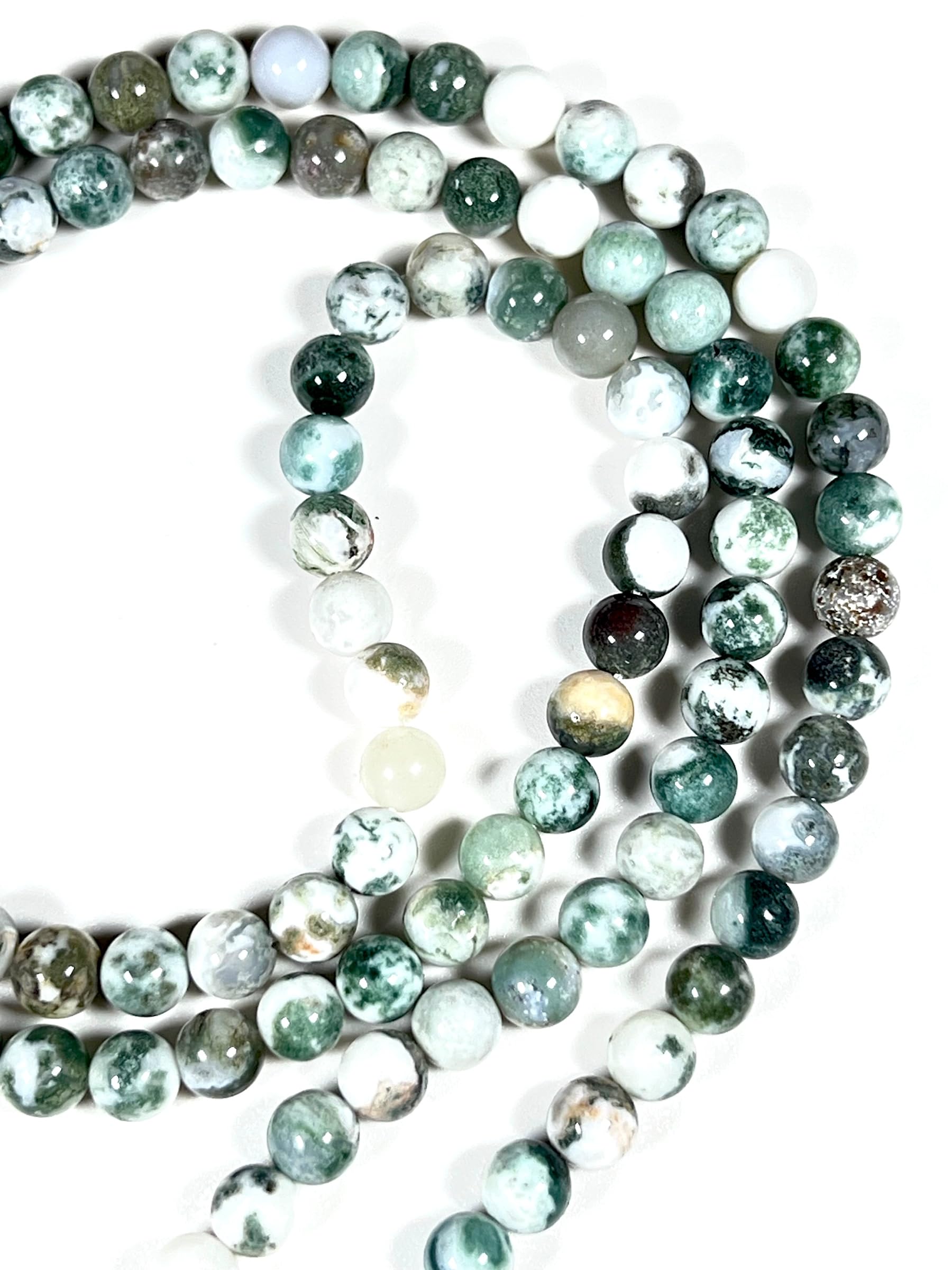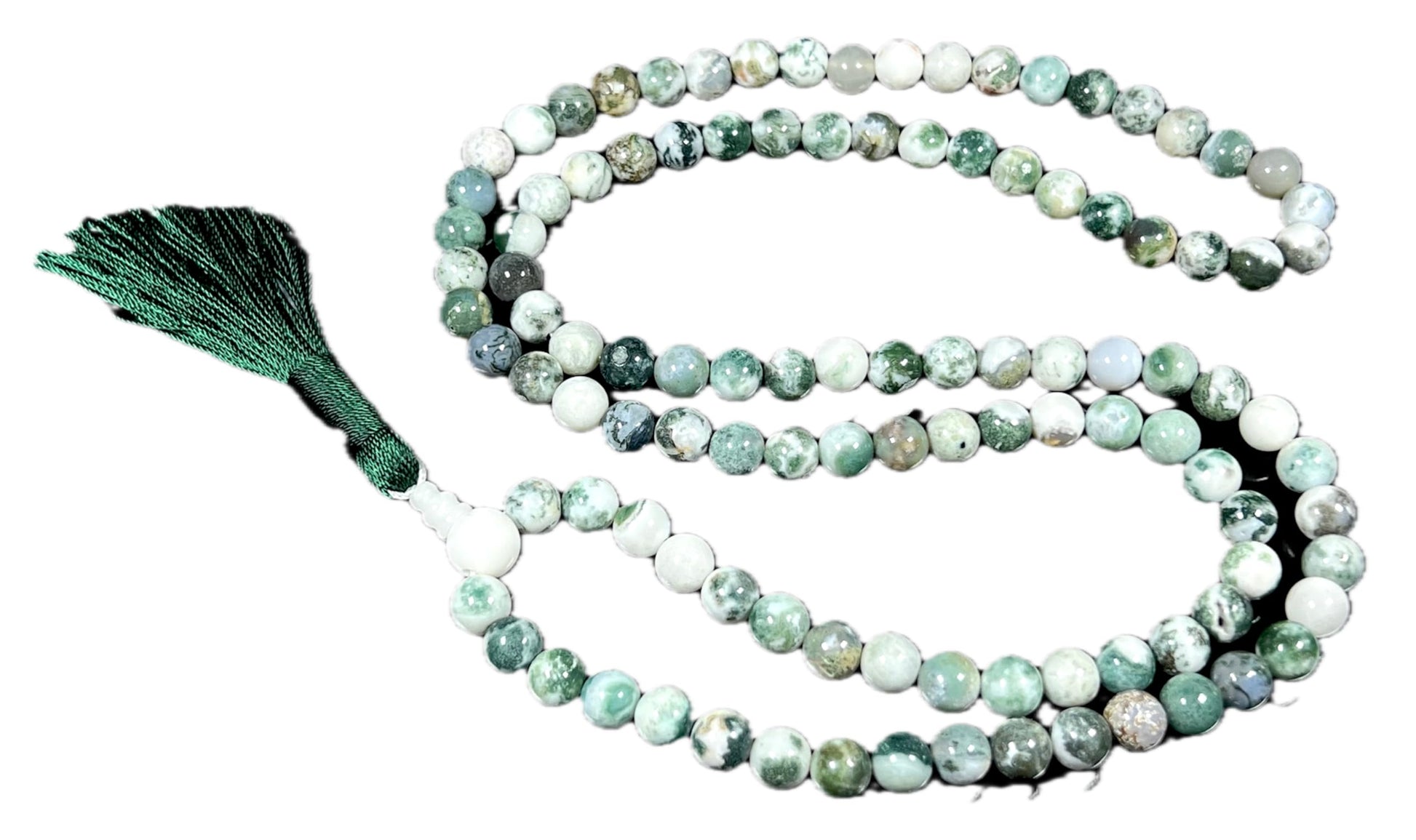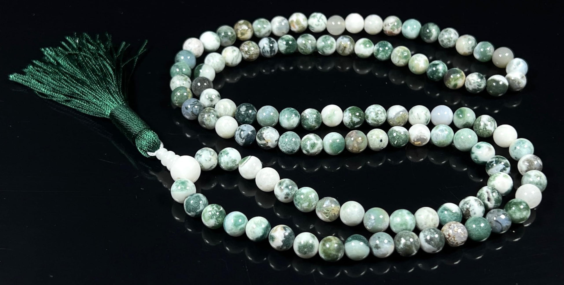 - Properties & Benefits: Natural Green Tree Agate Beads – Celebrated for their earthy tones, each bead carries unique, natural patterns, reflecting the beauty of nature. Hand-Knotted for Durability – Traditional craftsmanship ensures smooth movement during meditation and longevity in wear. Versatile 108-Bead Design – Can be used for mantra chanting, meditation, or styled as a statement necklace. Perfect Gift for Spiritual Seekers – A thoughtful piece for those embracing mindfulness, yoga, or a deep connection to nature.