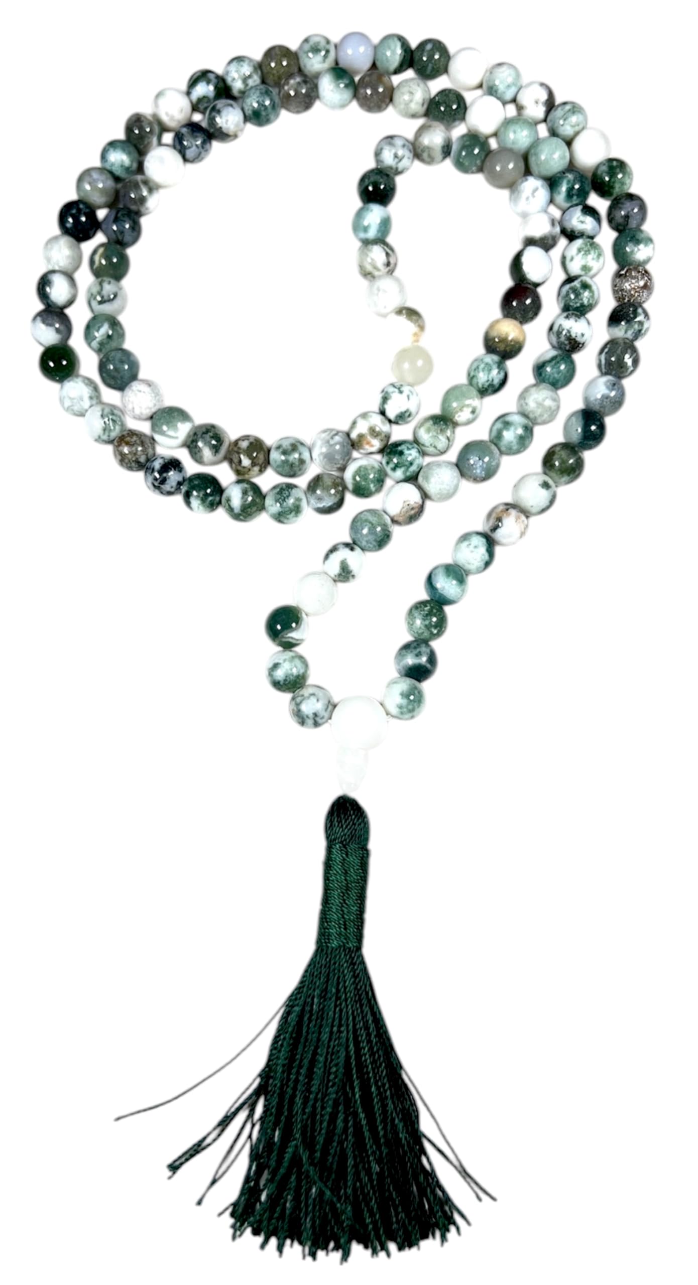 - #TreeAgateMala #HandmadeMala #108BeadsNecklace #MeditationJewelry #YogaMala #SpiritualJewelry #HealingBeads #CrystalJewelry #HandKnottedMala #NatureInspiredJewelry