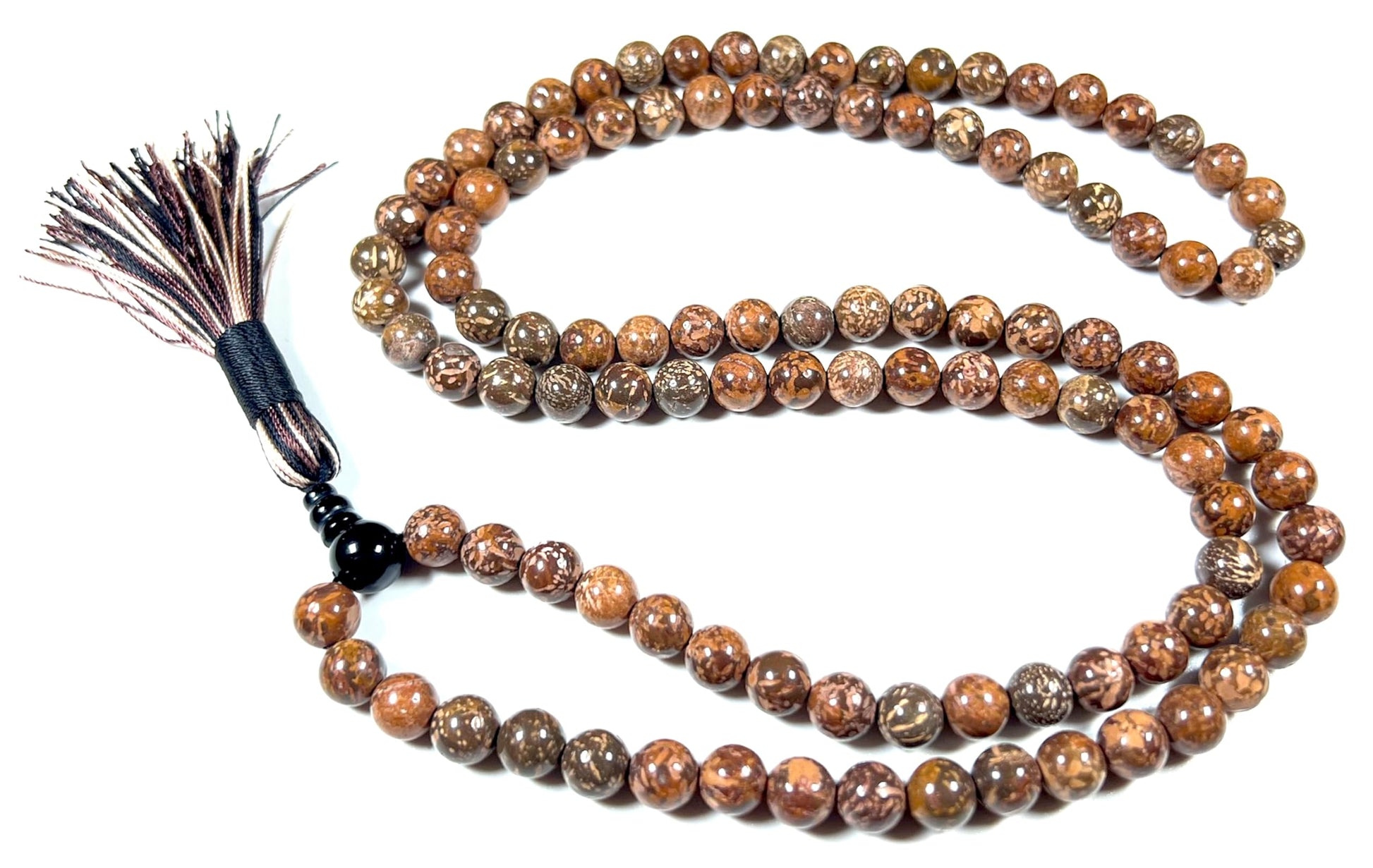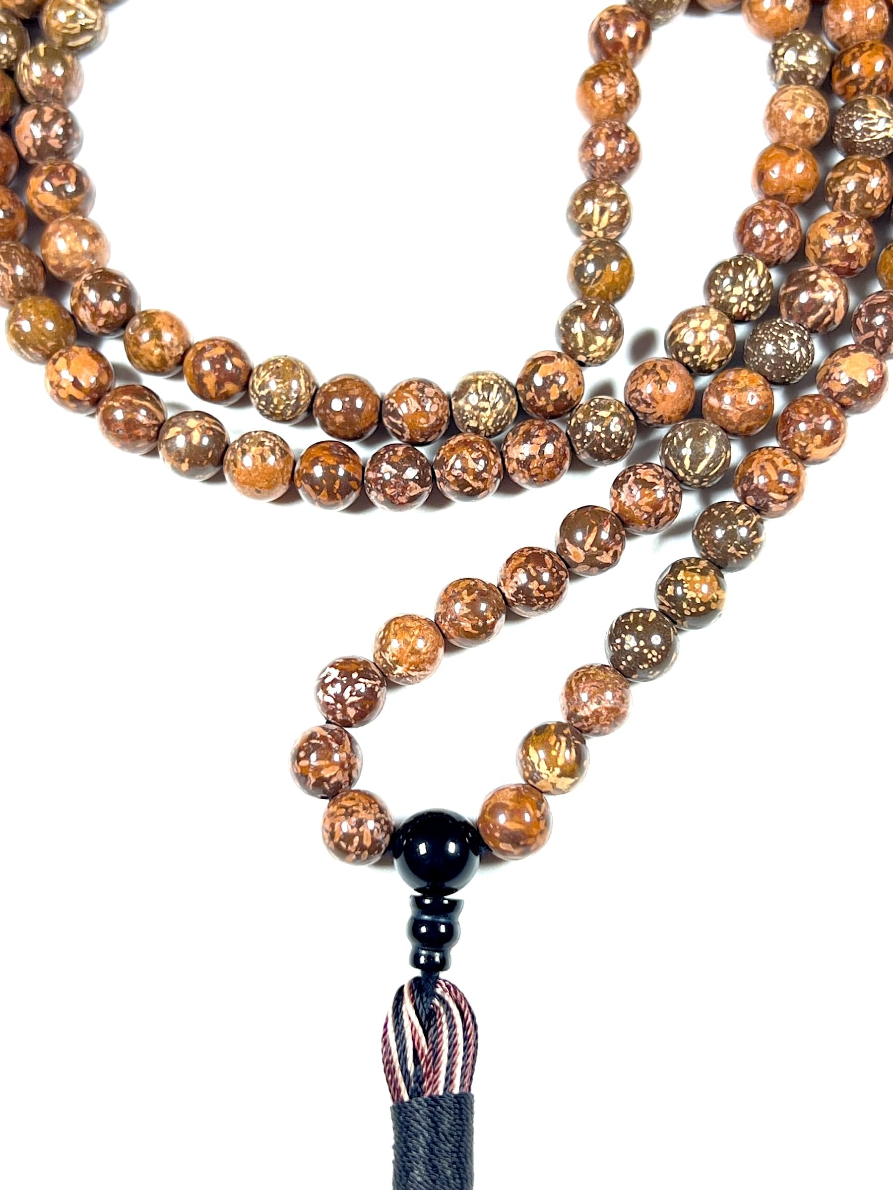 Handmade Natural Coquina Jasper Mala Beads Necklace – 8mm, 108 Beads – Root & Sacral Chakra, Aries & Scorpio Birthstone