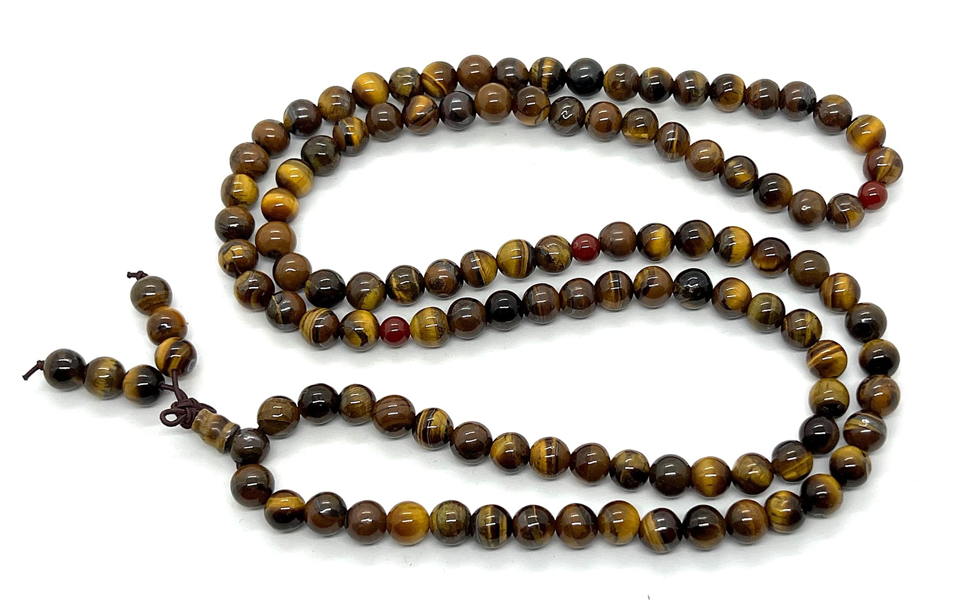 Handmade Tiger's Eye Mala Necklace (8mm, 108 Beads) - Leo & Aries Birthstone - Solar Plexus Chakra