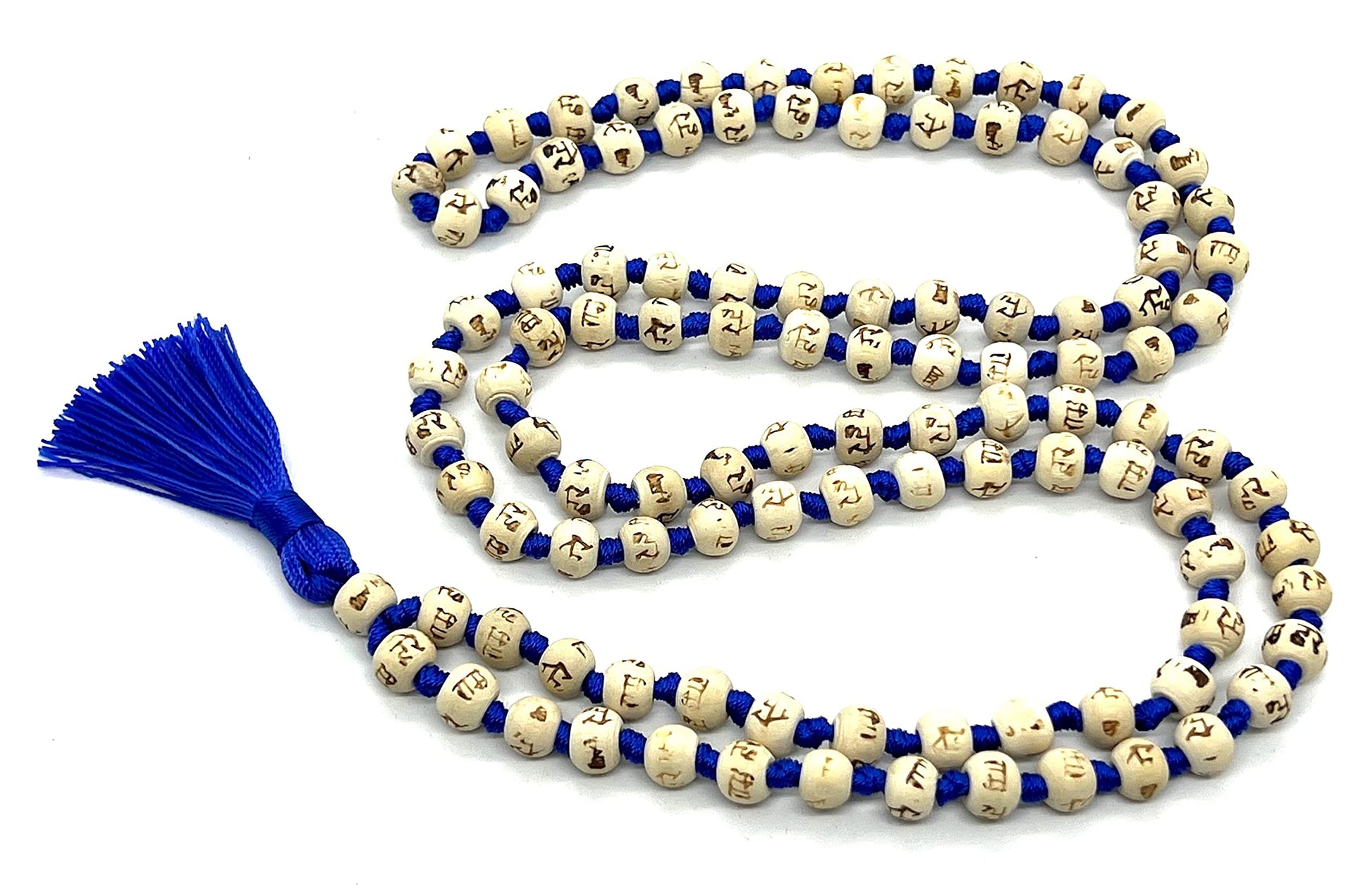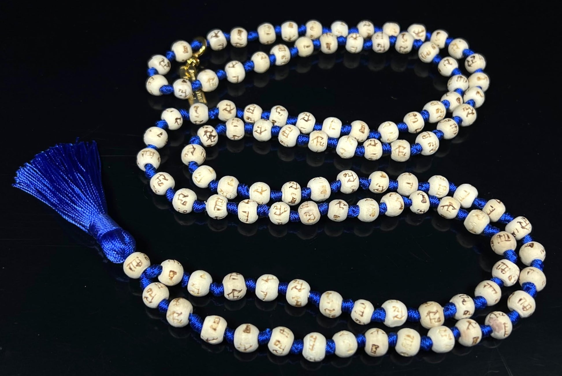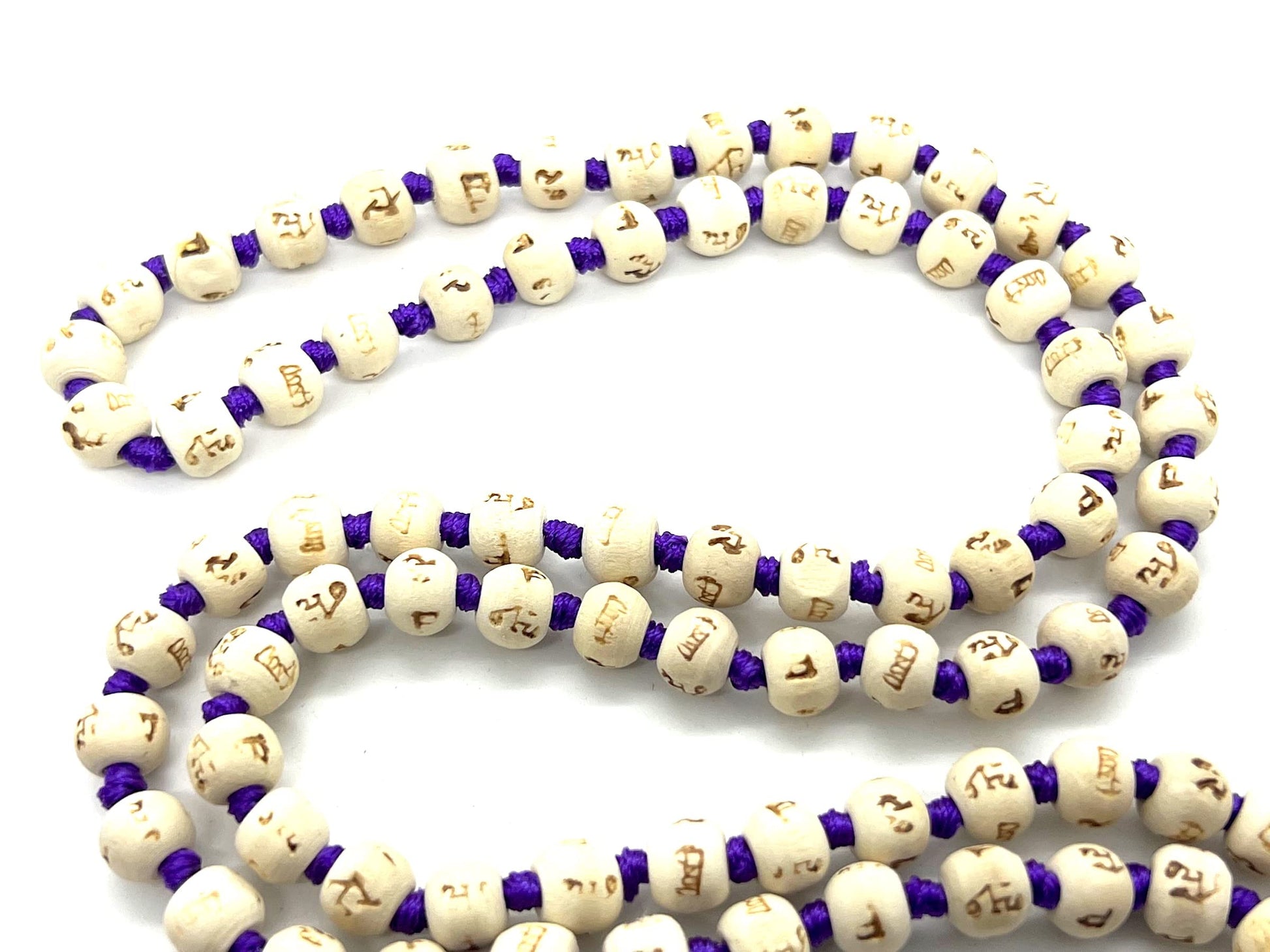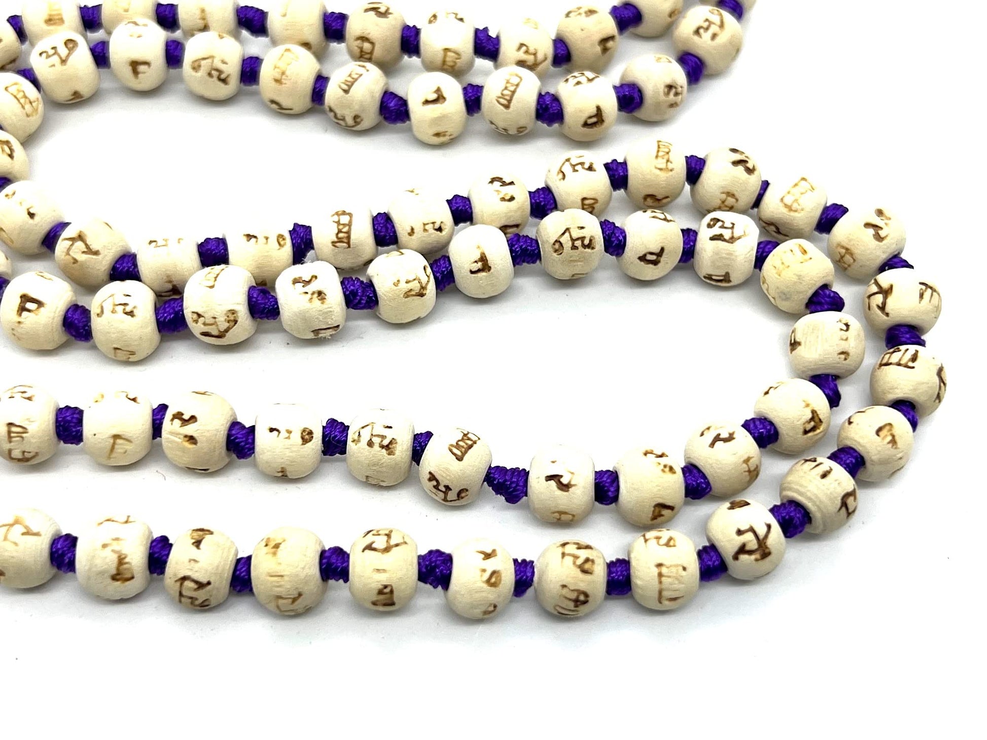 - Elevate your spiritual practice with our Handmade Tulsi Mala Beads Necklace, a sacred and elegant piece designed for meditation, mindfulness, and personal adornment. Each 8mm Tulsi bead is intricately inscribed with the divine name "Ram", symbolizing purity, devotion, and connection to the divine. Available in a variety of vibrant colors—white, blue, purple, black, orange, yellow, and red—this mala is a perfect blend of spiritual significance and natural beauty. Finished with a matching tassel, this necklace is ideal for meditation, prayer, or as a meaningful gift.