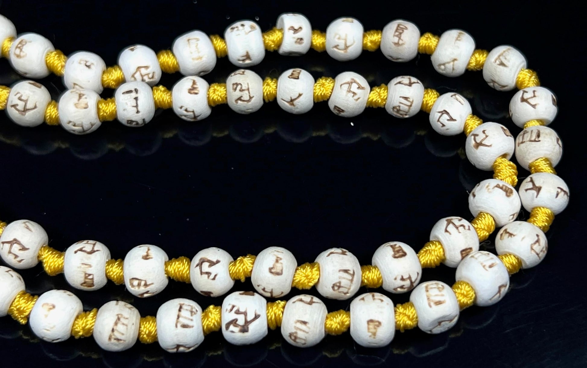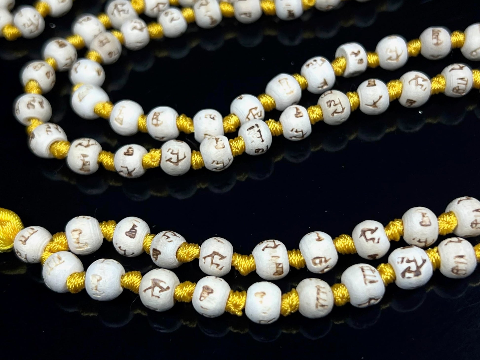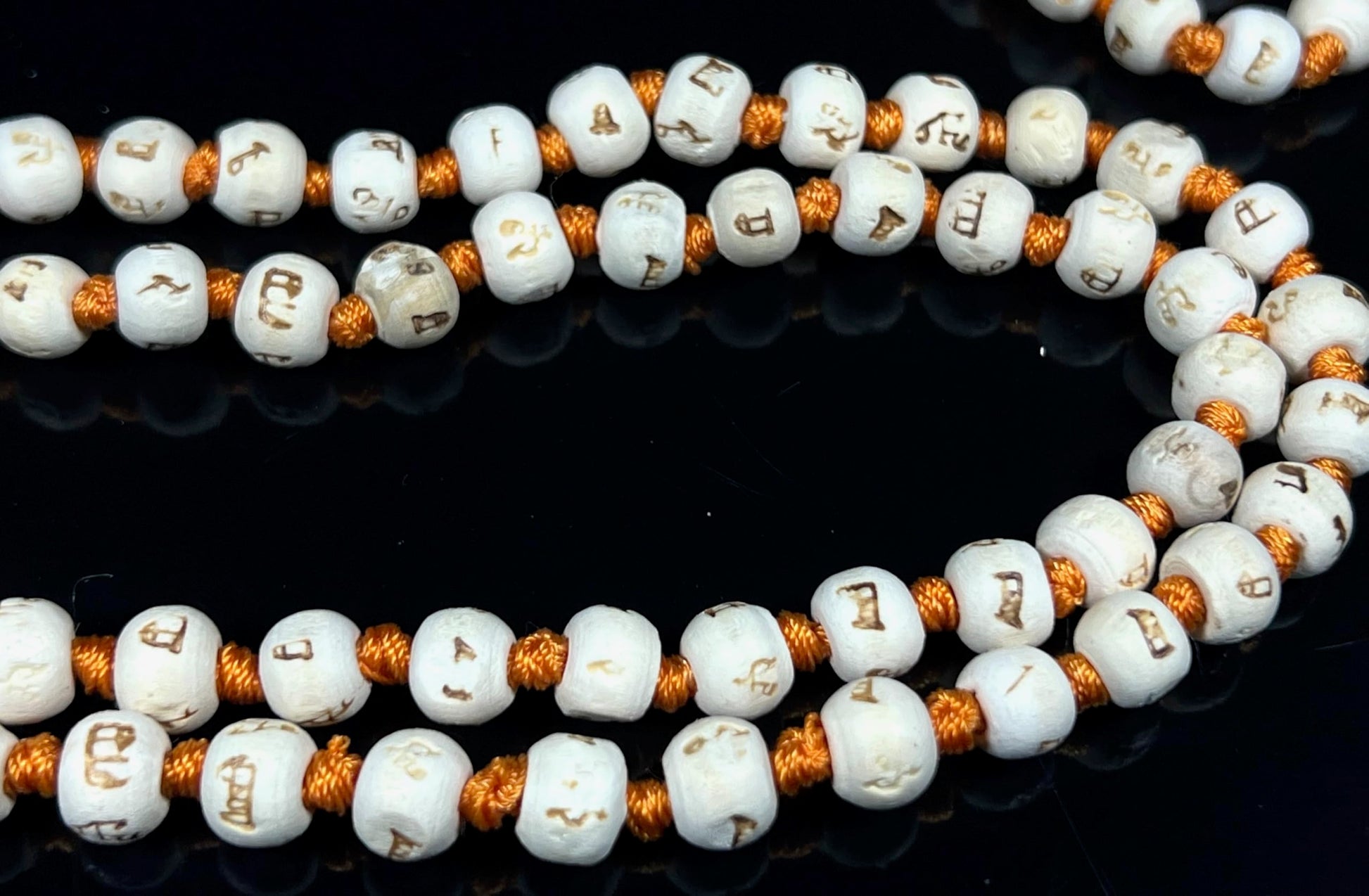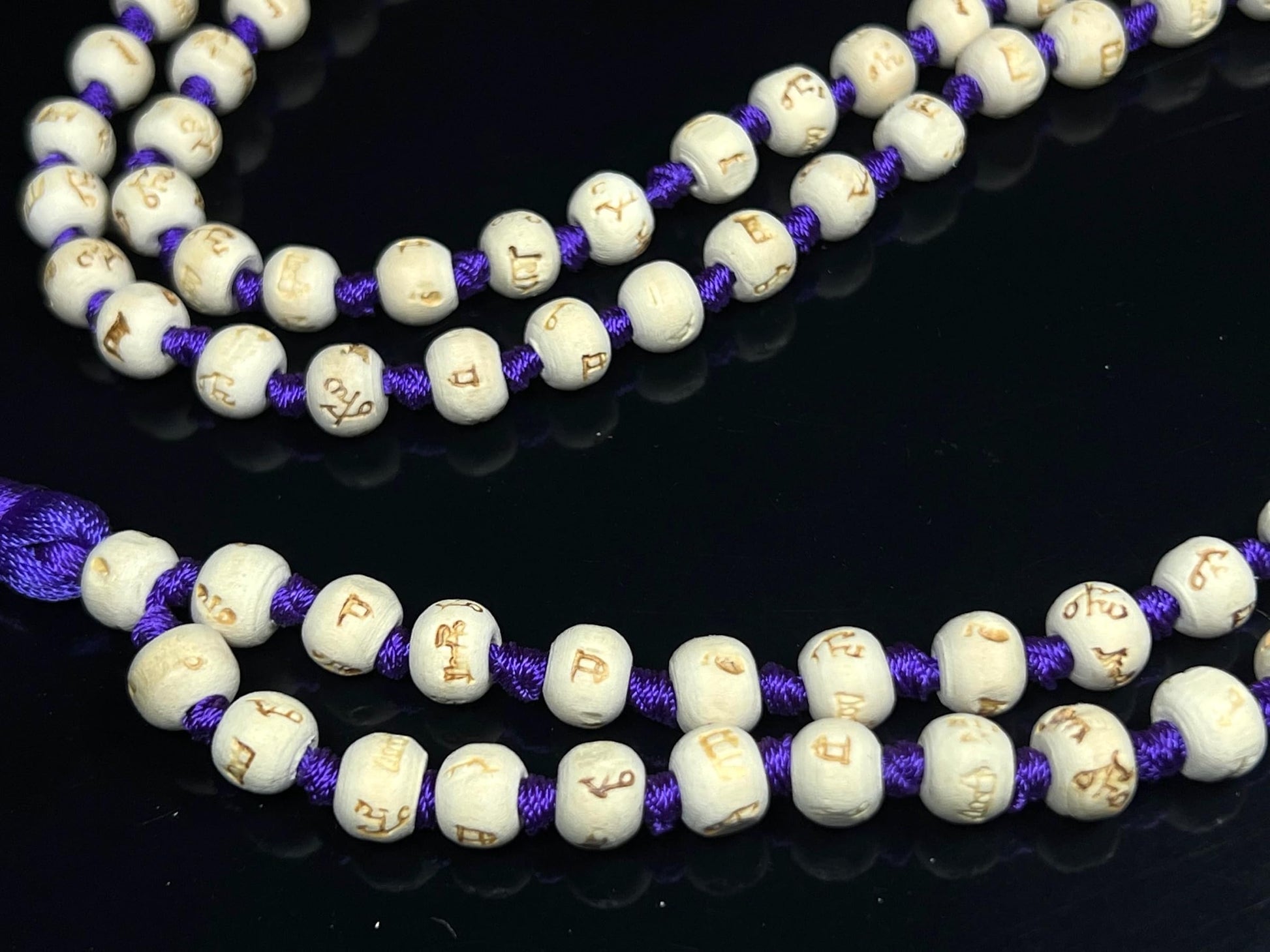 - Elevate your spiritual practice with our Handmade Tulsi Mala Beads Necklace, a sacred and elegant piece designed for meditation, mindfulness, and personal adornment. Each 8mm Tulsi bead is intricately inscribed with the divine name "Ram", symbolizing purity, devotion, and connection to the divine. Available in a variety of vibrant colors—white, blue, purple, black, orange, yellow, and red—this mala is a perfect blend of spiritual significance and natural beauty. Finished with a matching tassel, this necklace is ideal for meditation, prayer, or as a meaningful gift.
