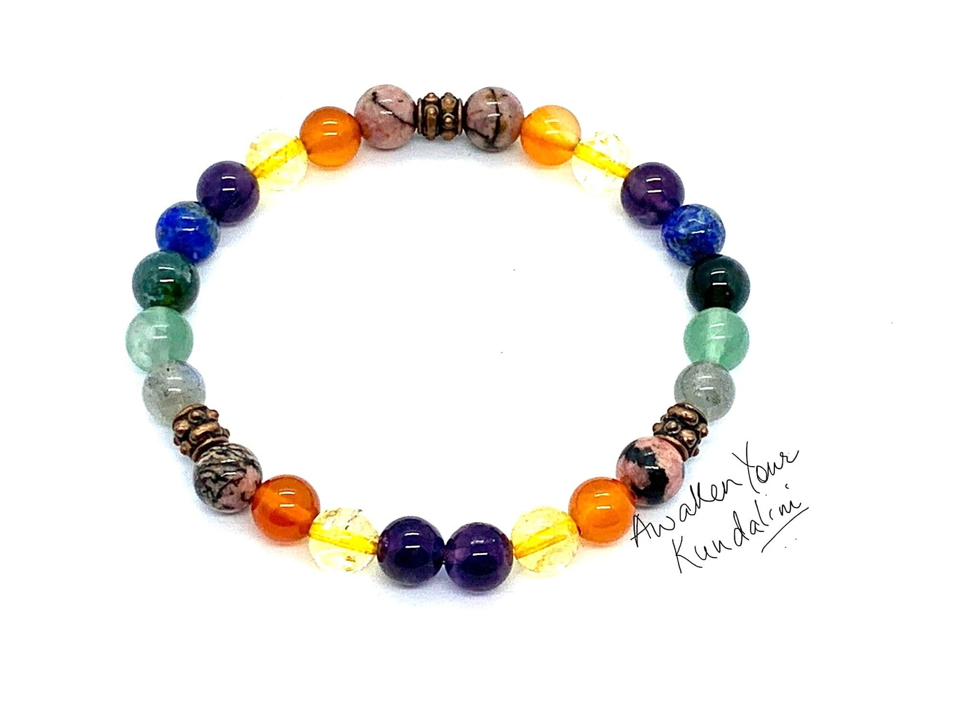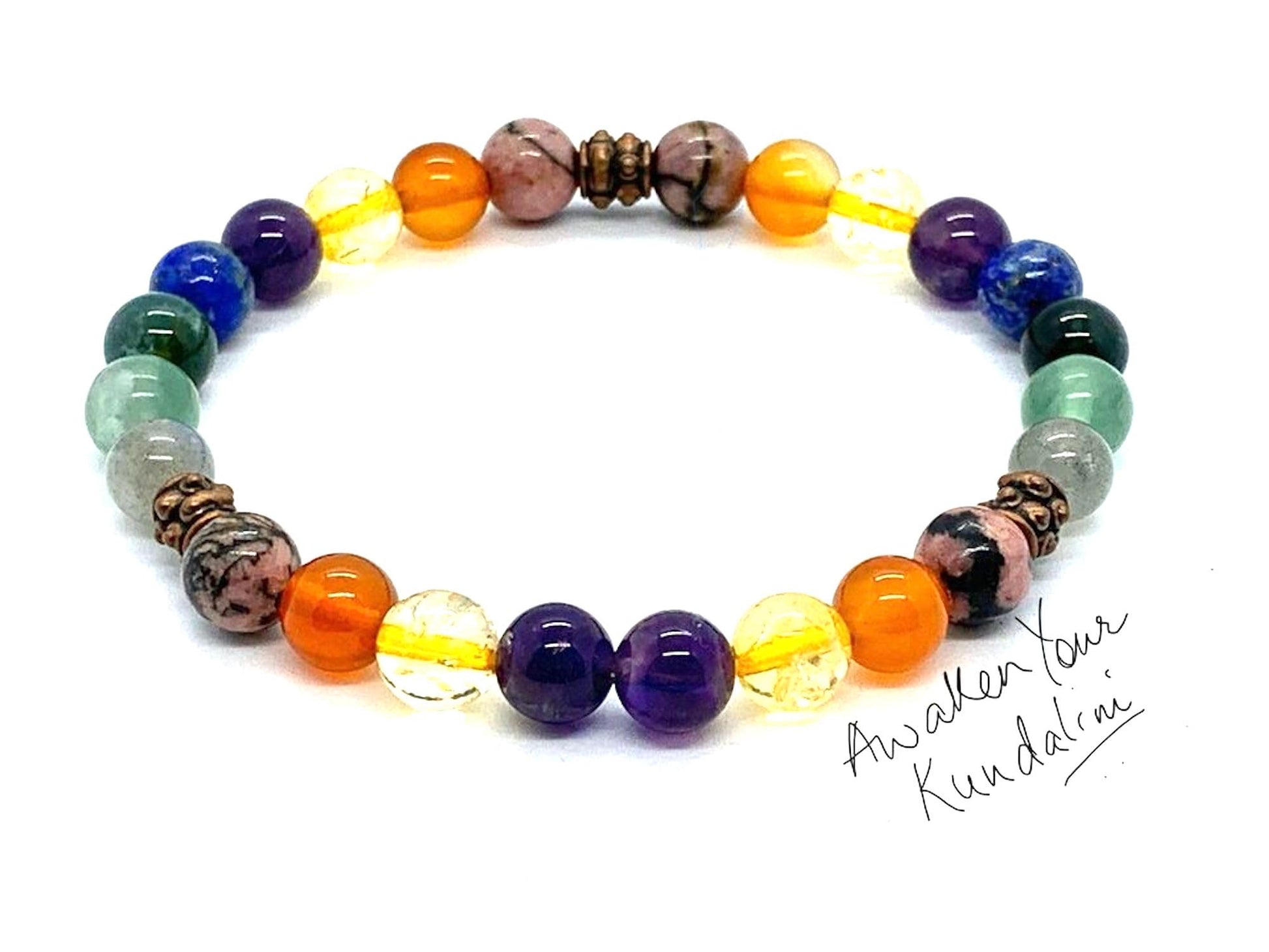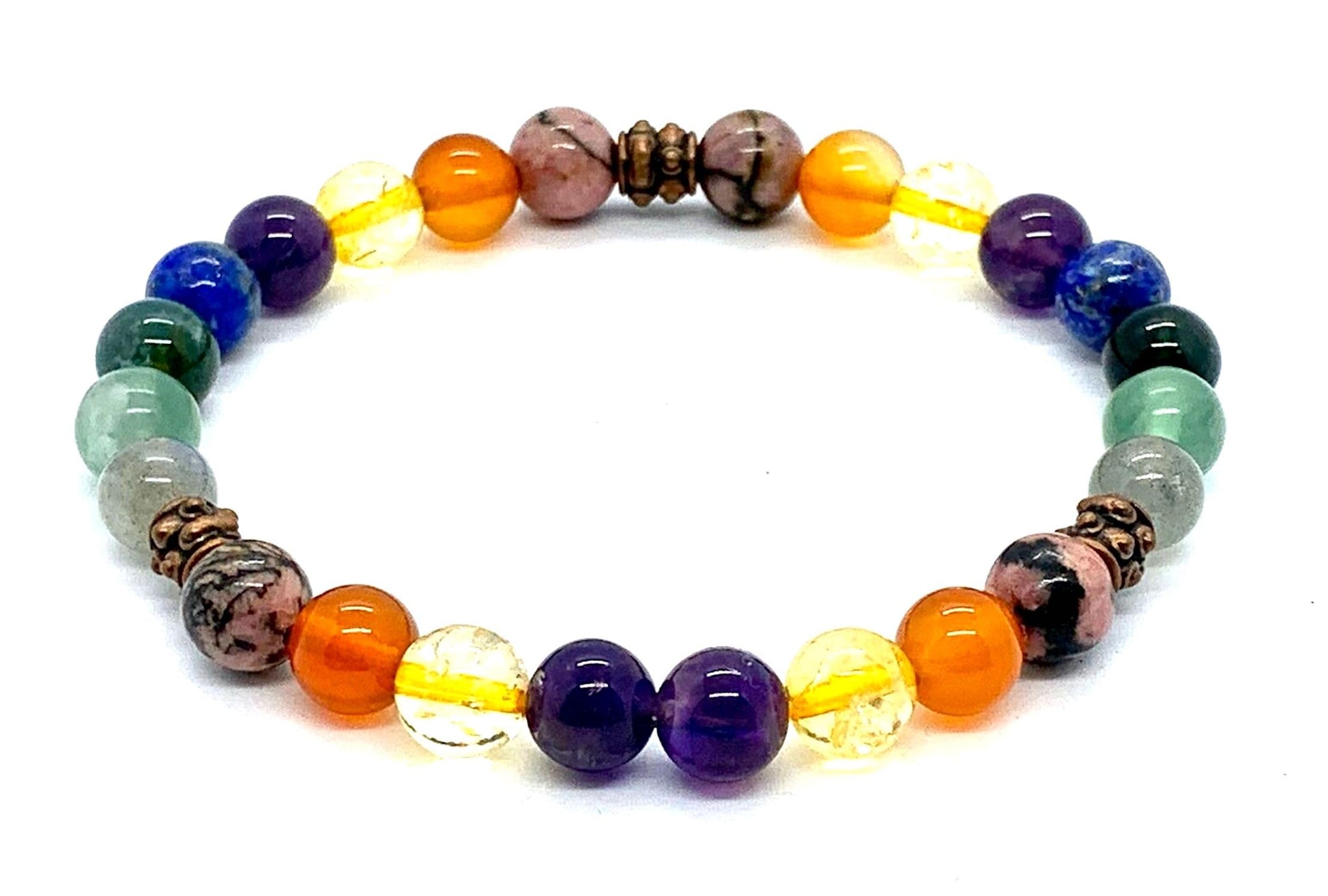 - This isn't just a bracelet, it's a reminder of your inner rainbow! Handmade Quality: Each gemstone is meticulously chosen and strung with love and intention. Vivid 8mm Beads: The perfect size for a statement piece that complements any outfit. 7 Chakra Alignment: Promotes balance and well-being across all energy centers. Comfortable Stretch Design: Effortless on-and-off wear for everyday enjoyment.