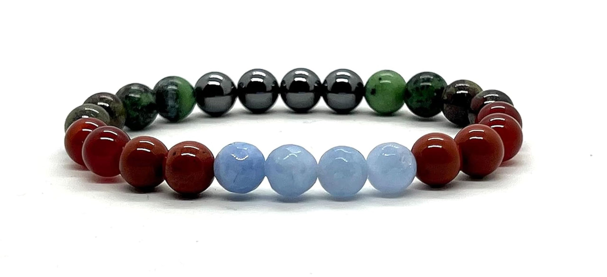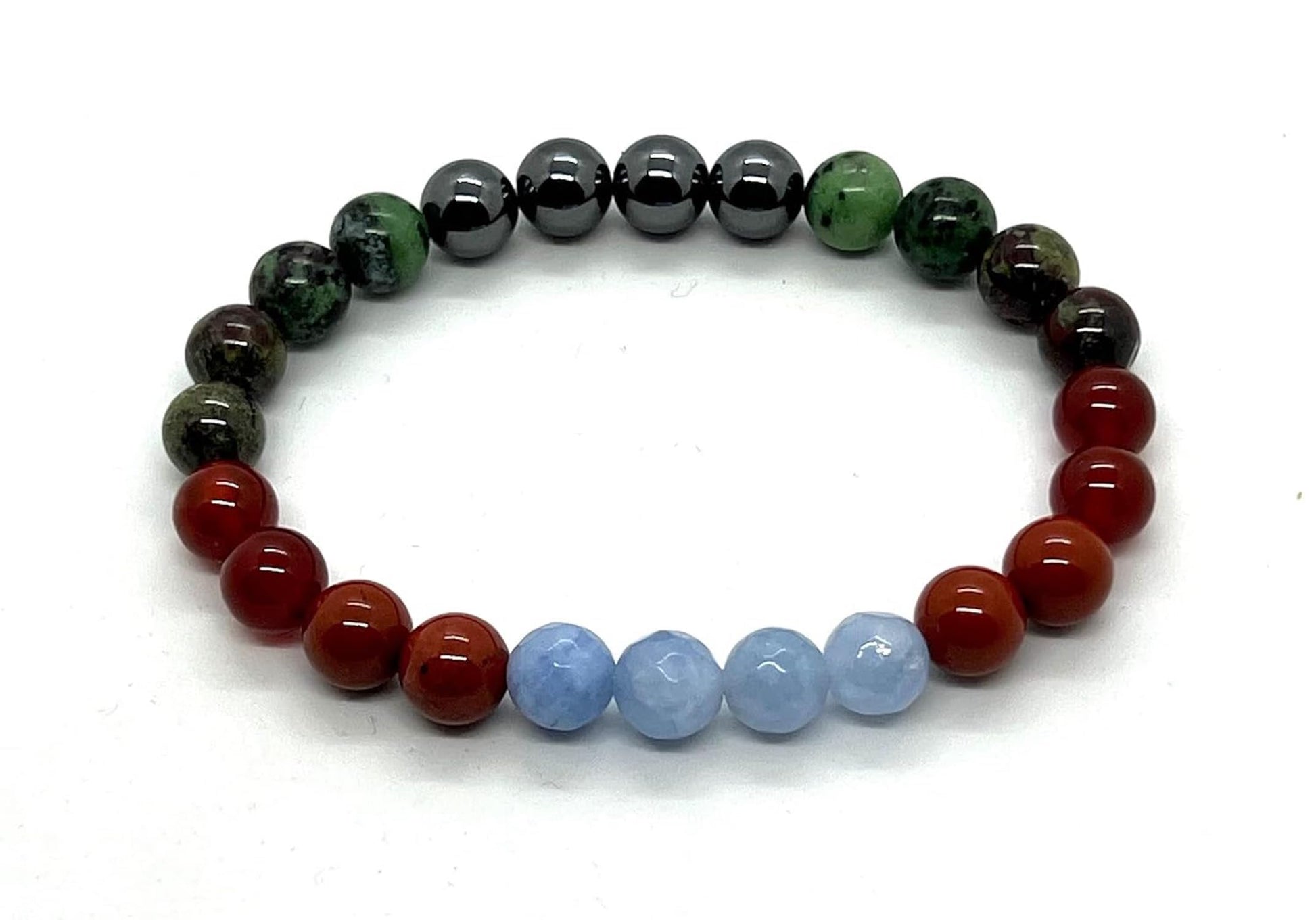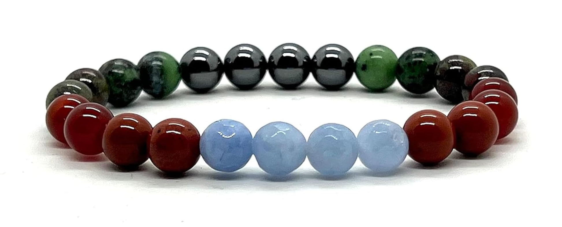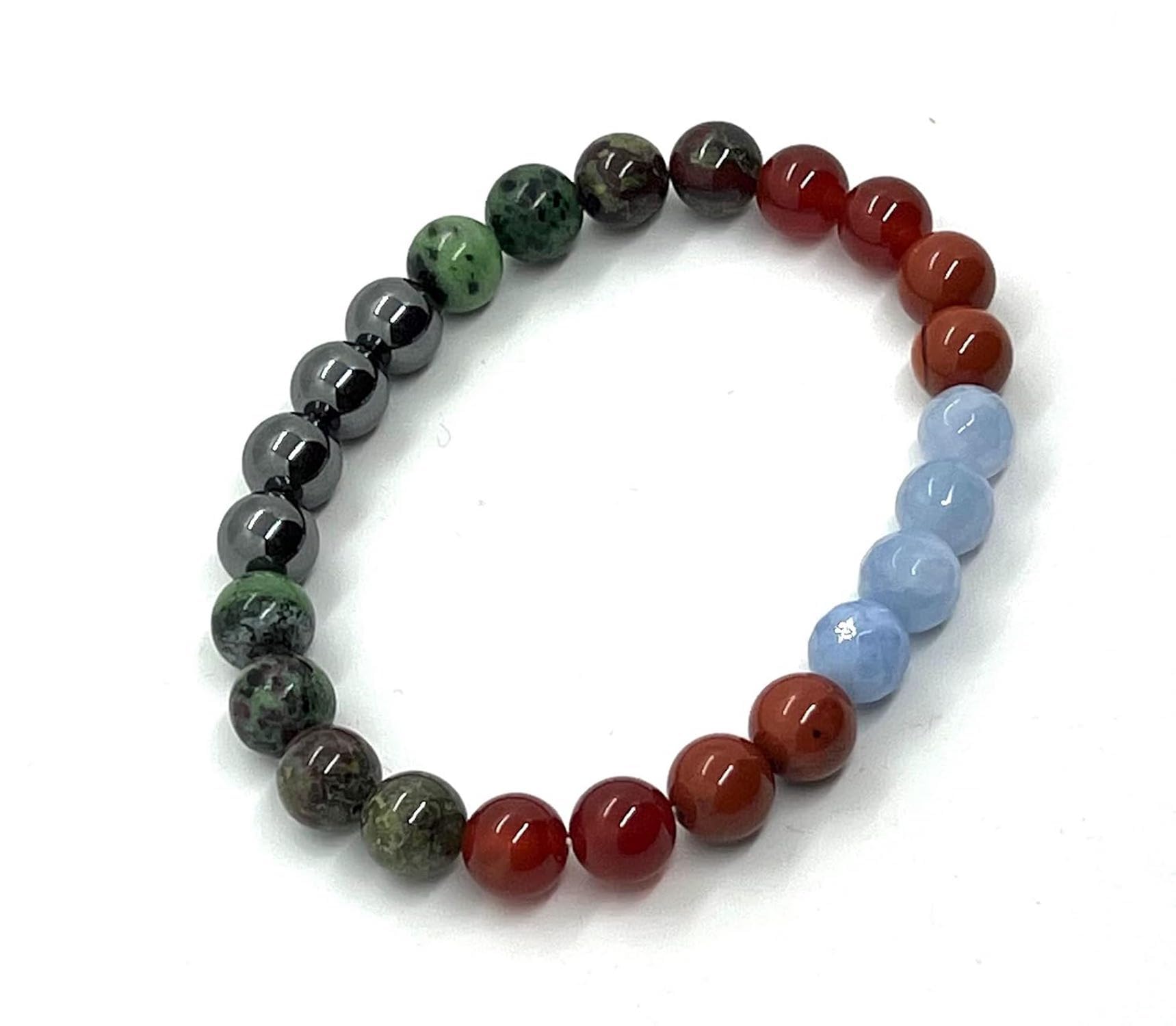 - Embrace Your Inner Trailblazer A Daily Reminder: This bracelet serves as a constant reminder of your unique strengths and your ability to take charge and chase your dreams. Multi-Chakra Alignment: The gemstones resonate with various chakras, promoting emotional well-being, clear communication, and a strong foundation for action. Wear with Confidence: The fiery gemstone combination creates a bold statement piece you can wear every day.