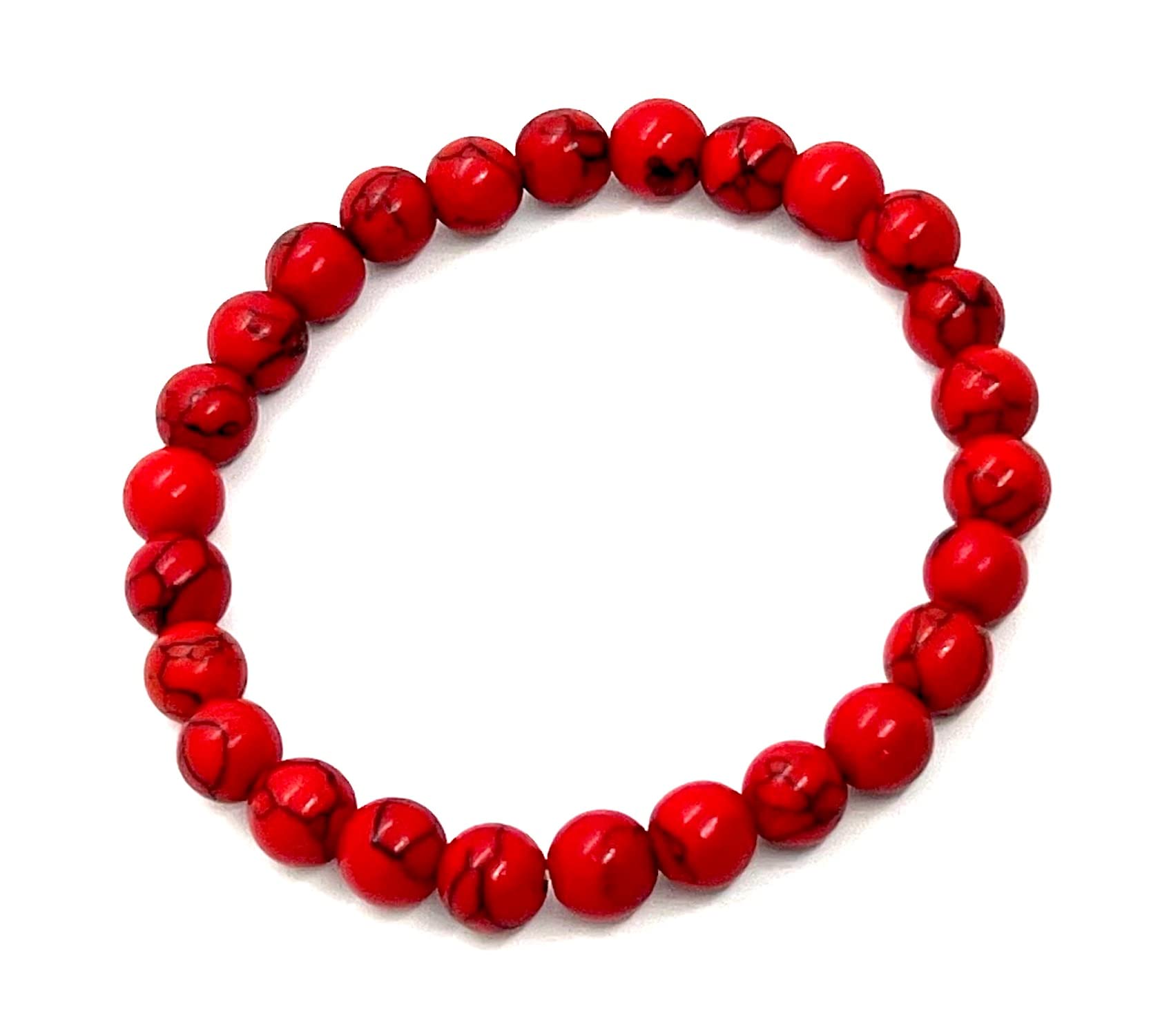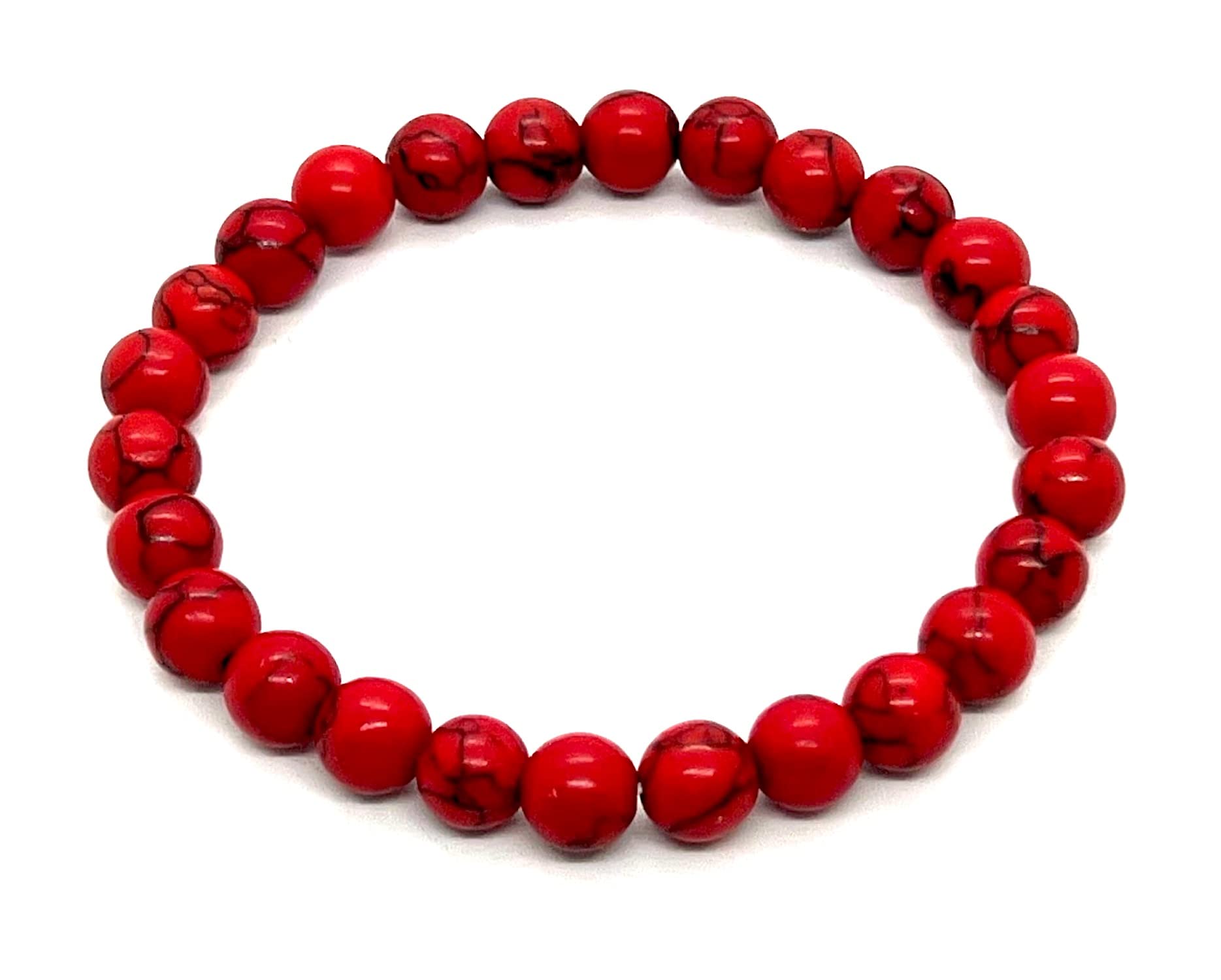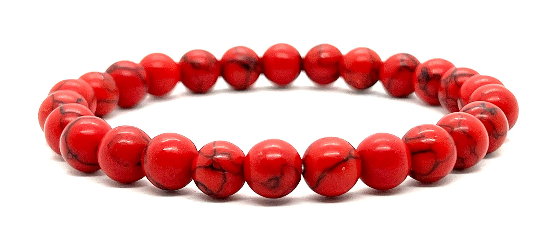 - Discover the power and beauty of the Red Howlite Stretch Bracelet with 8mm beads, meticulously crafted to inspire confidence and inner strength. This bracelet combines the fiery energy of red howlite with the grounding properties associated with the Root Chakra, making it an essential accessory for those seeking balance and stability.