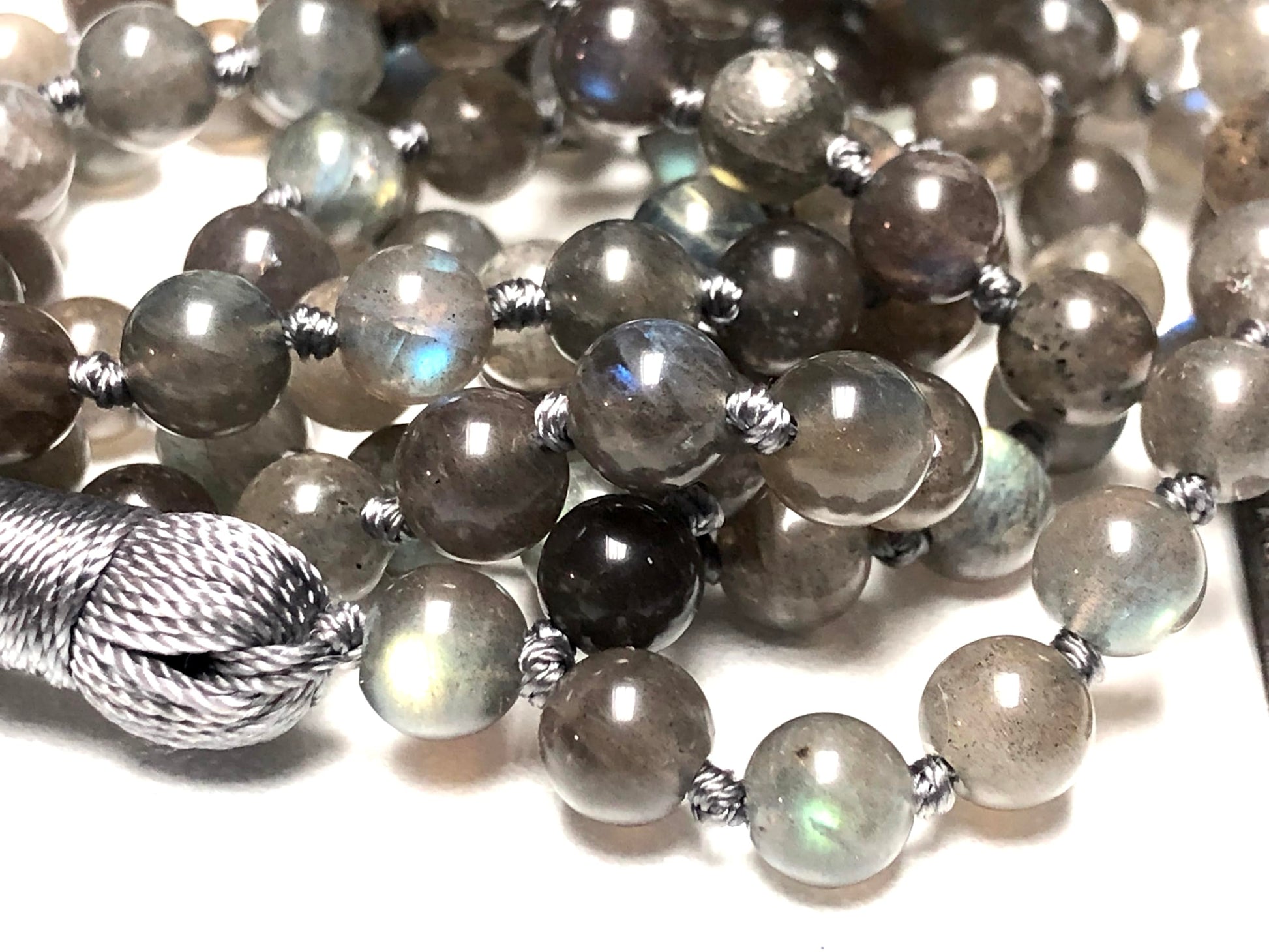 Labradorite Mala Necklace | 108 Beads Hand-Knotted | VAAK & ALOKA Collections